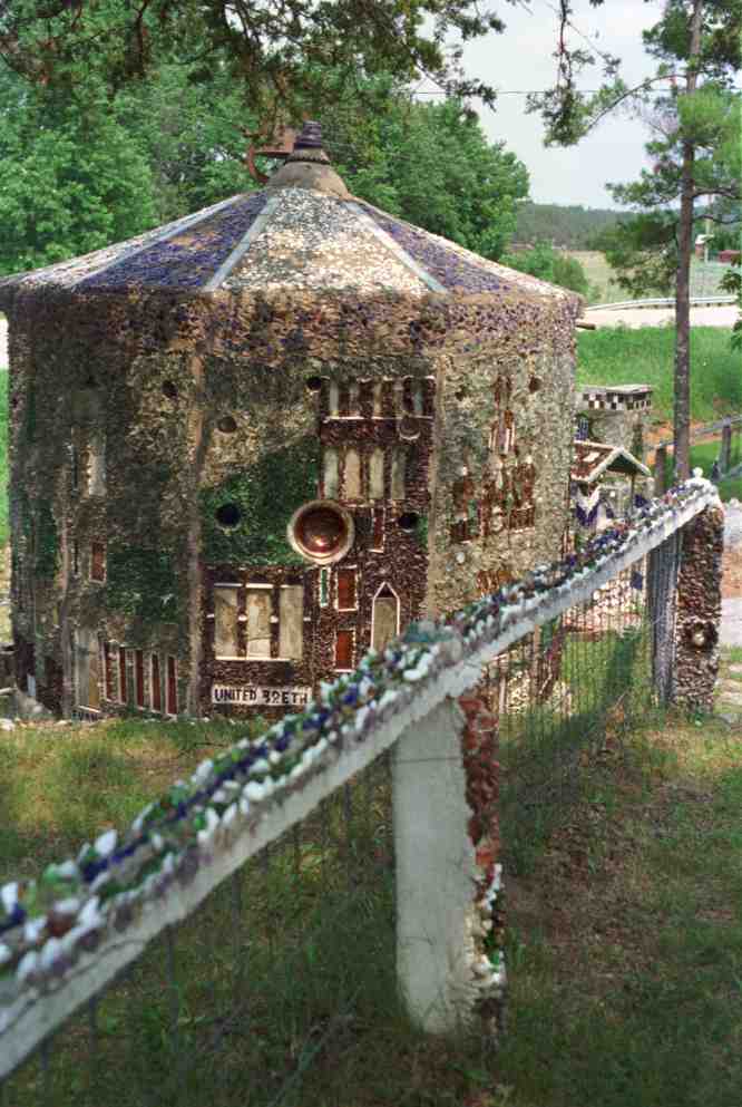 The Wegners followed with an ensemble of creations on their Cataract, Wis., property, including the chapel at right above and left below, on whose outer walls they memorialized other great places of worship, along with the religions that built them