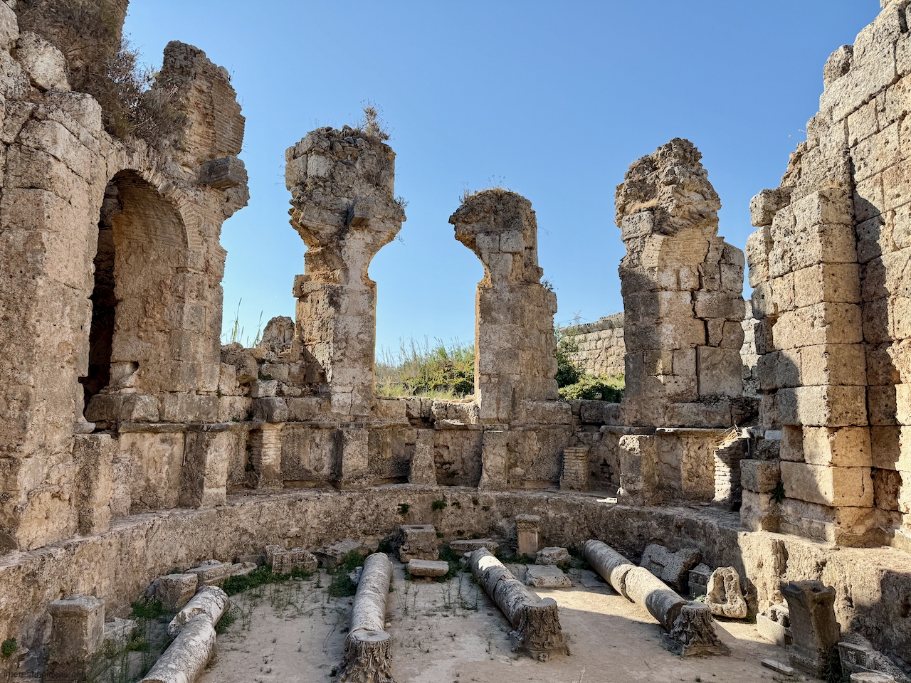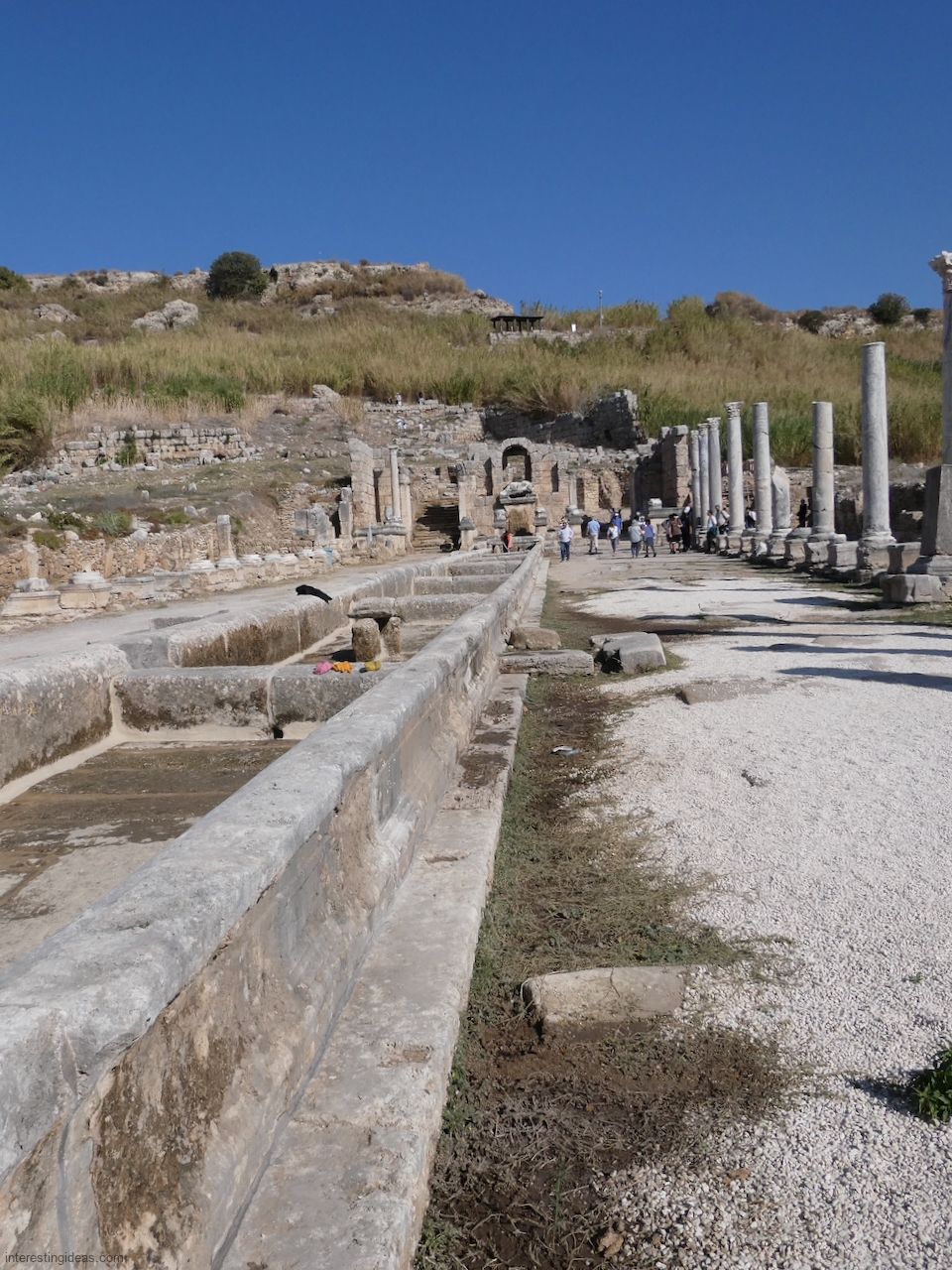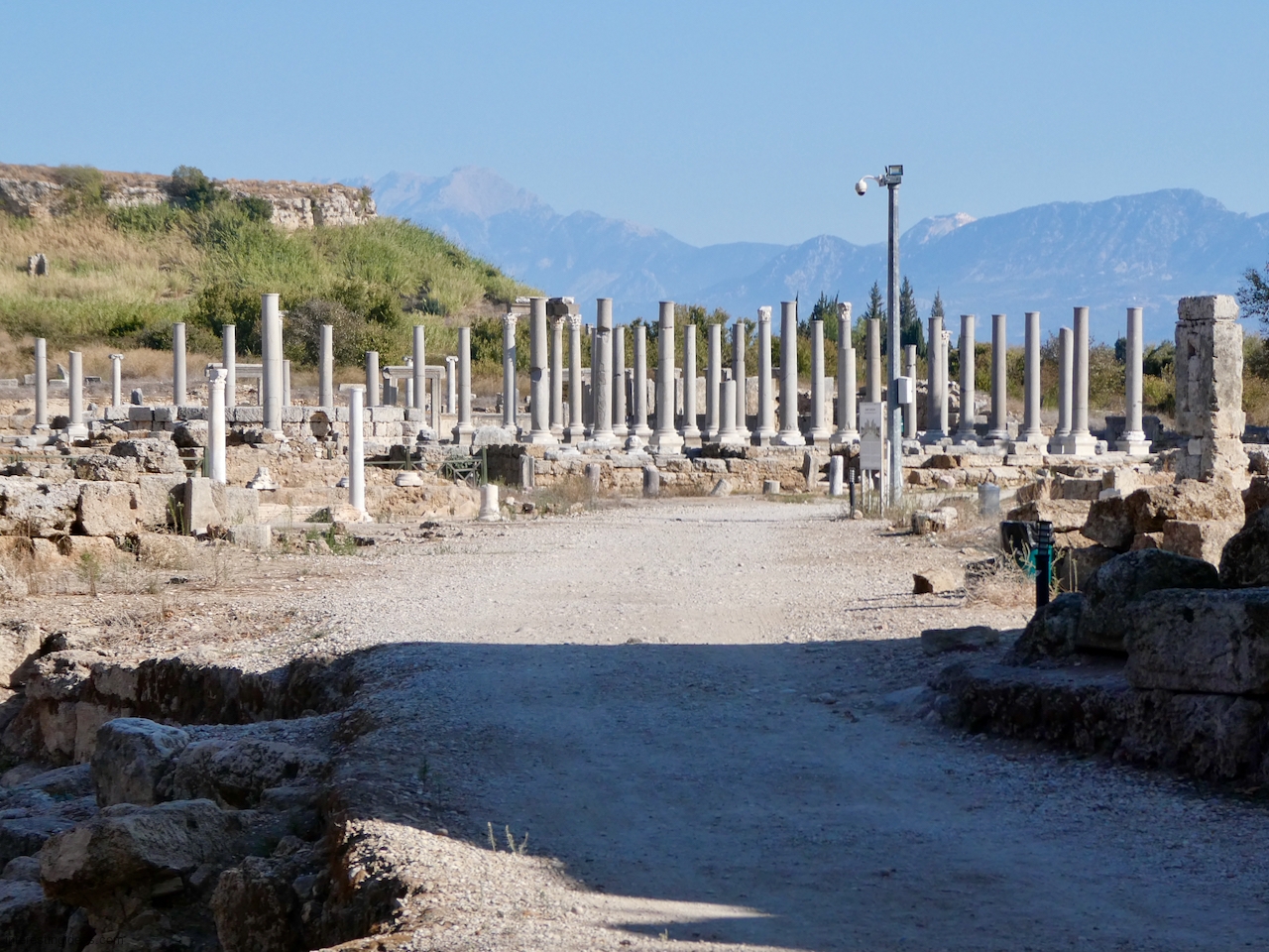 Perge Perge’s ruins include a theater, a stadium, lines of pillars, waterworks and some fabulous graffiti (the last of which can be seen here). Back