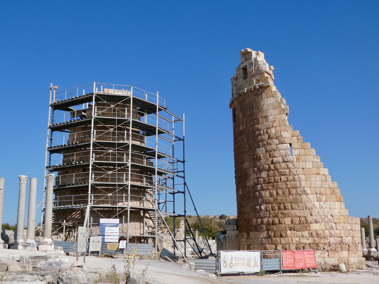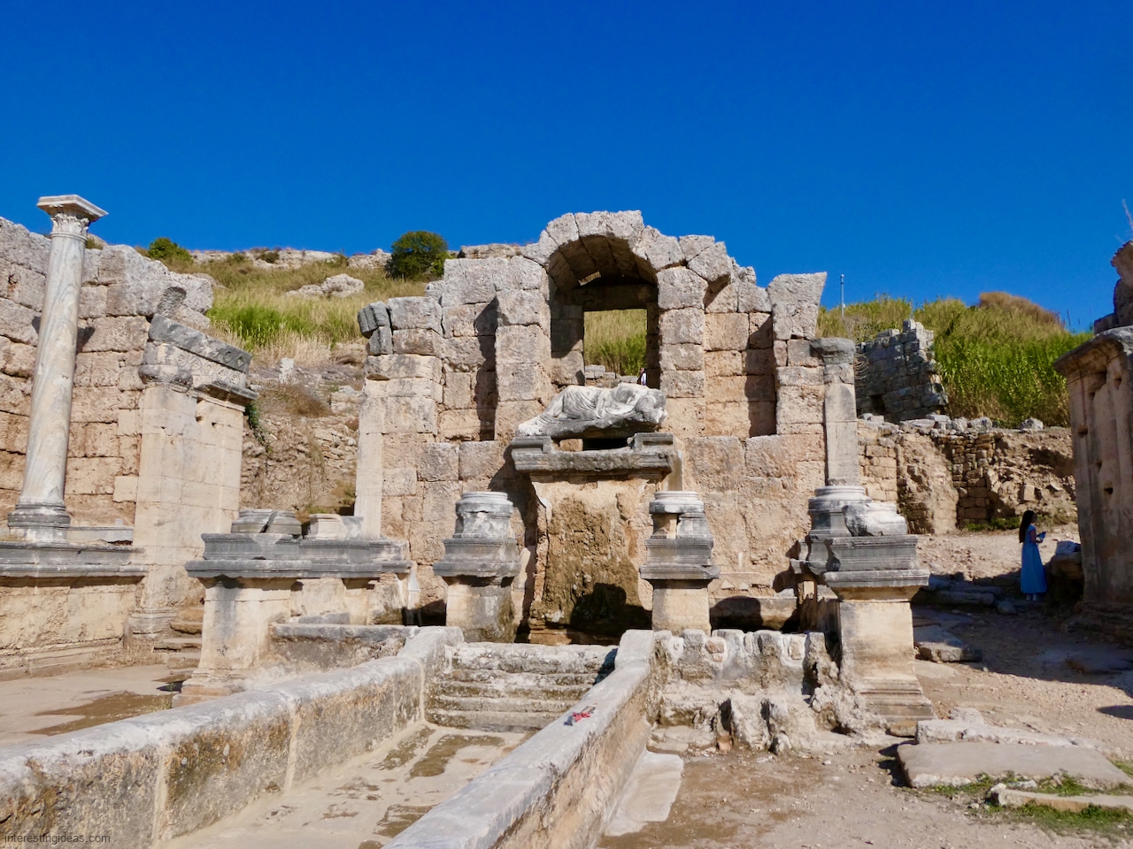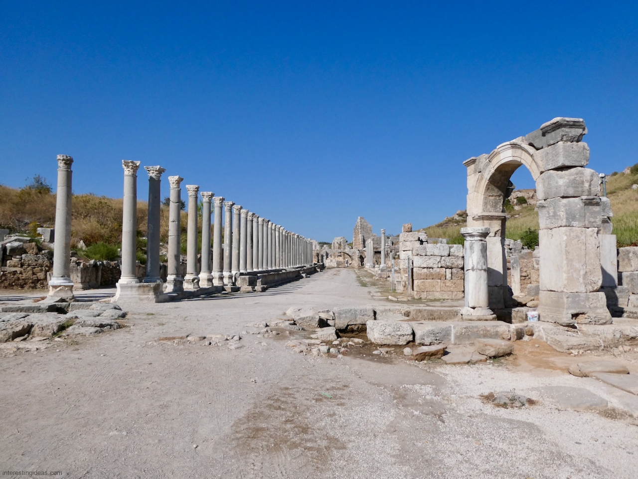 Perge Perge’s ruins include a theater, a stadium, lines of pillars, waterworks and some fabulous graffiti (the last of which can be seen here). Back