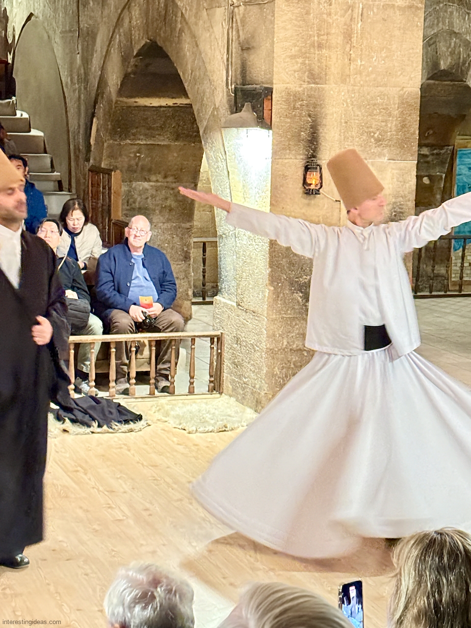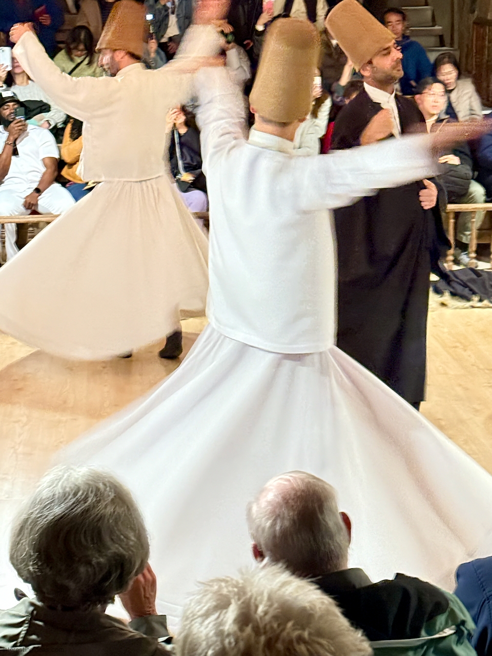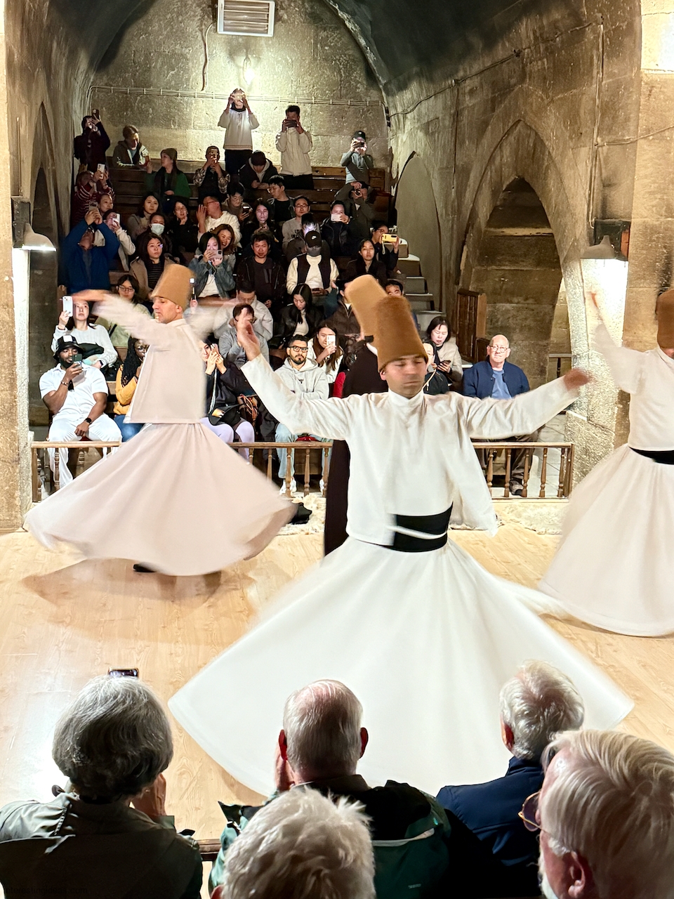 The formal Dervish order was suppressed by the Turkish government in the last century. But there are folks who are keeping the ritual alive. This performance was staged at the Saruhan Caravanserai.