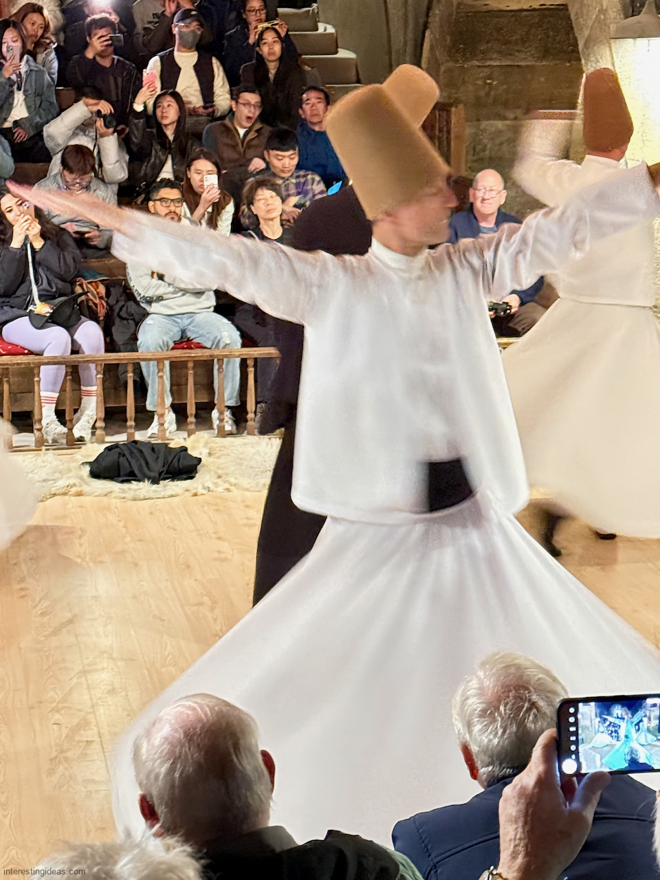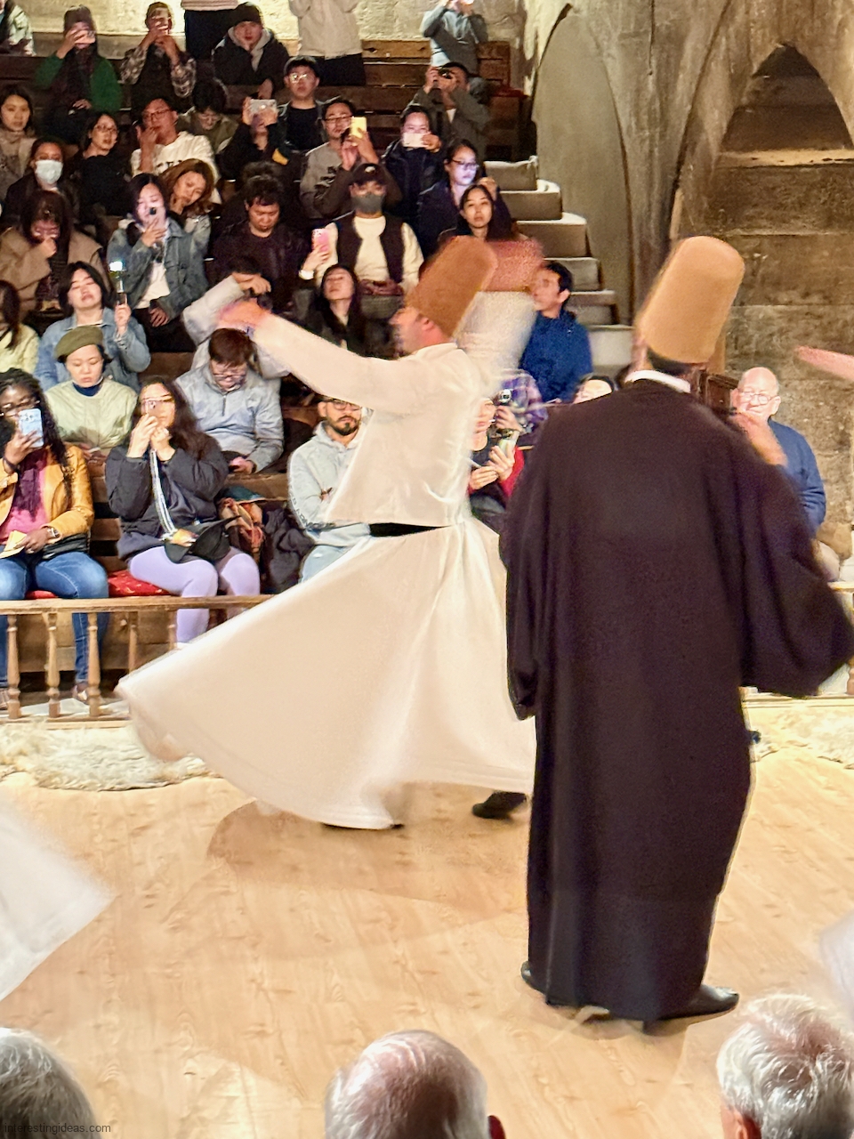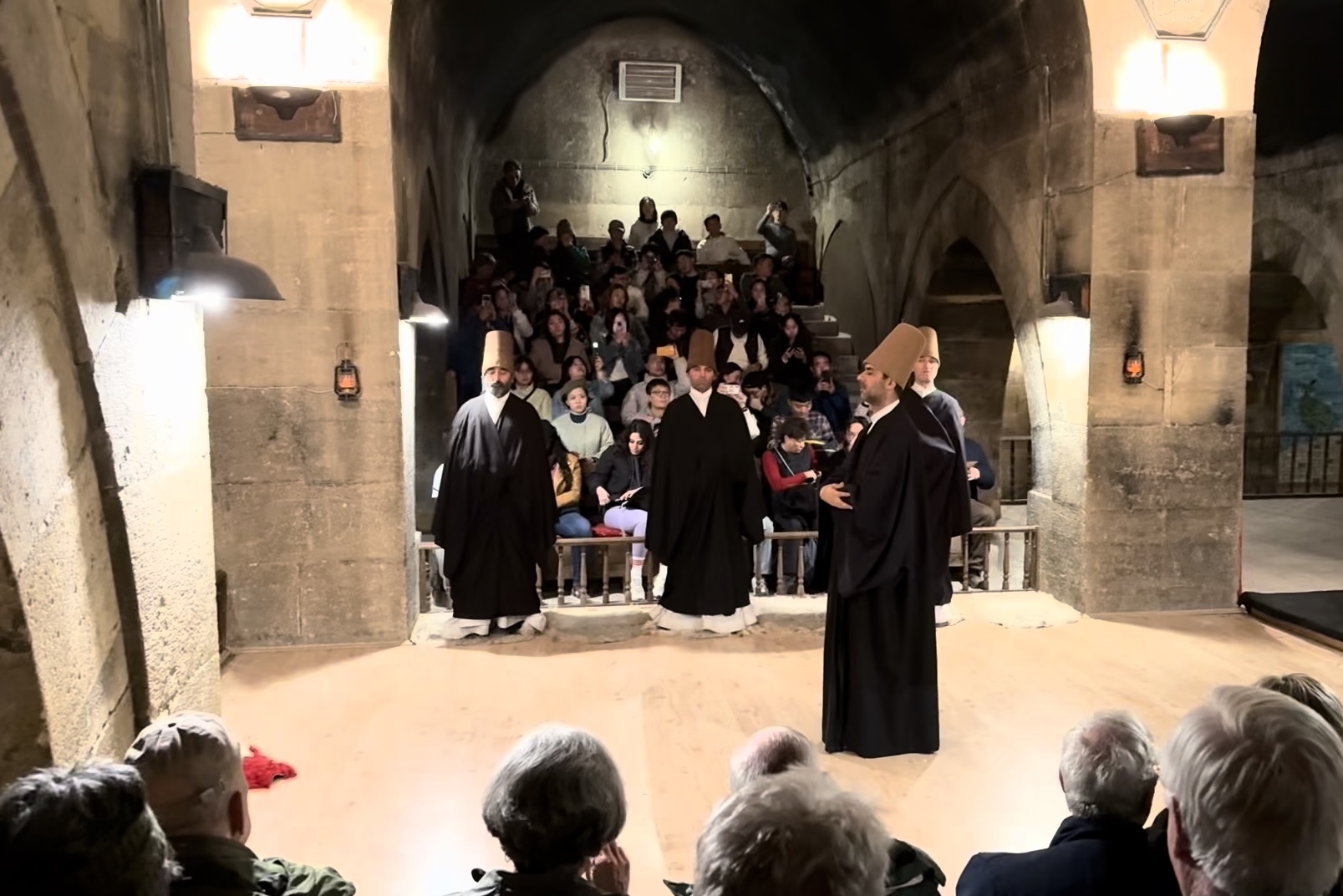 The formal Dervish order was suppressed by the Turkish government in the last century. But there are folks who are keeping the ritual alive. This performance was staged at the Saruhan Caravanserai.