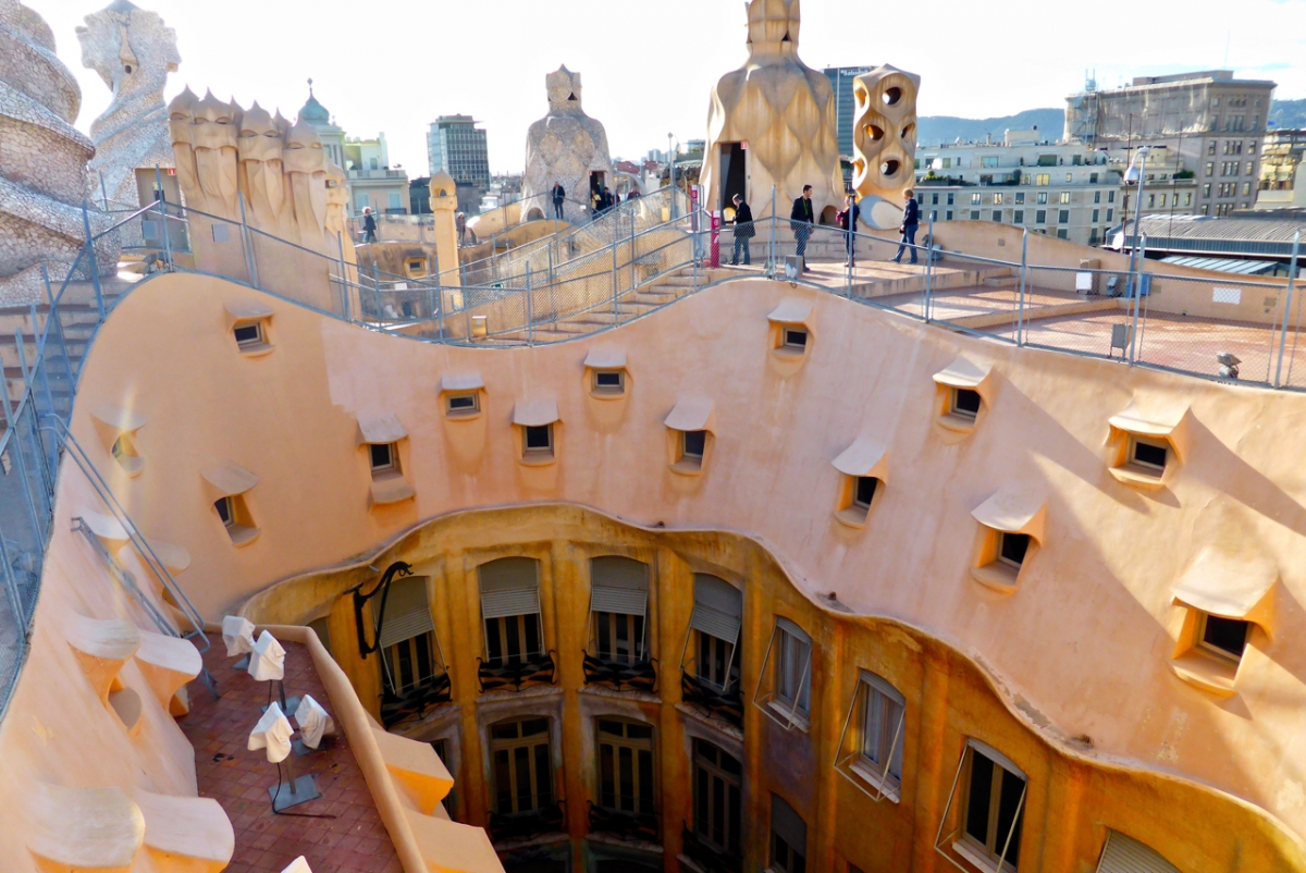 Casa Milà seems slightly less extravagant on the outside than the nearby Casa Batlló, but inside and on top it is equally stunning.