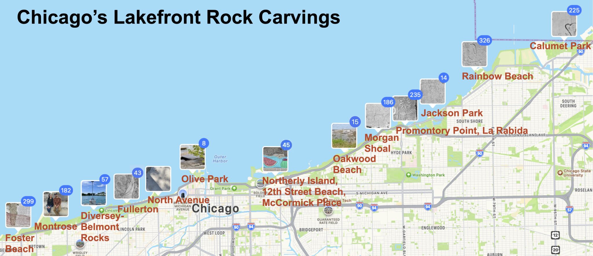 Chicago’s Lakefront Rock Carvings By Location