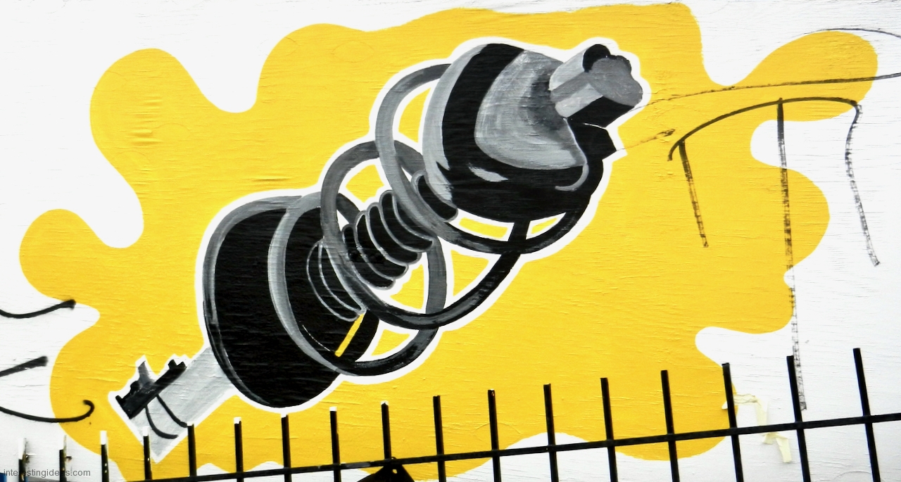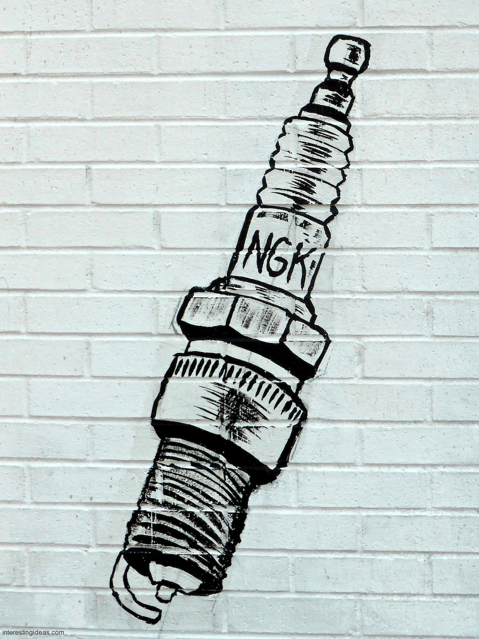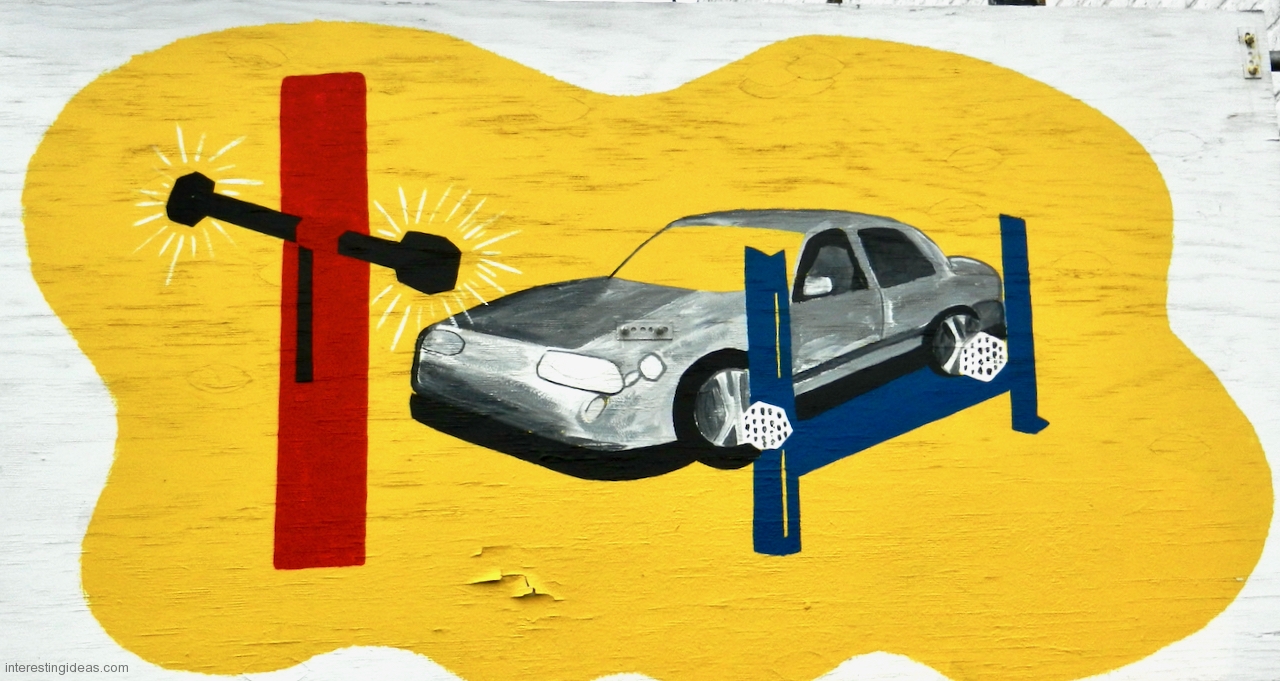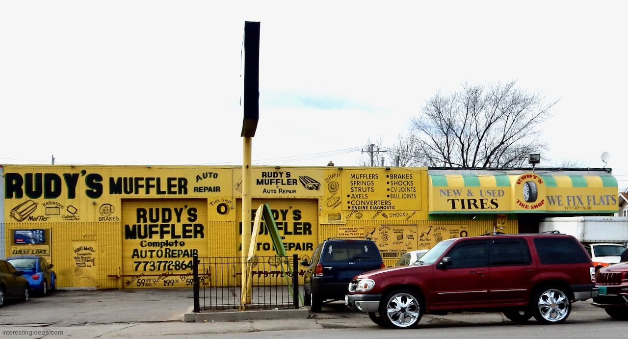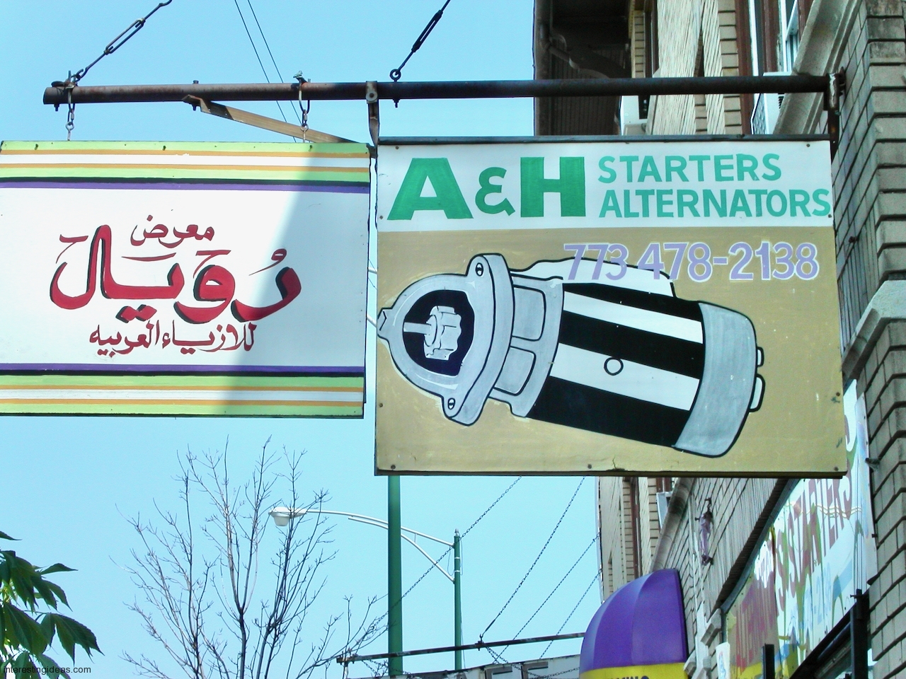 Most auto parts are about as prosaic as can be, but they are often made dynamic through the magic of roadside art. This gallery starts with a straightforward representation of a spark plug, picking up creative steam with the artist at International Auto Service, who wins for the bold use of color and shapes. The Illinois Starter artist went for simplification of the parts and highlighting technique. The puddle approach makes Akram Electric stand out while Rudy’s goes the more traditional cover-the-earth strategy.