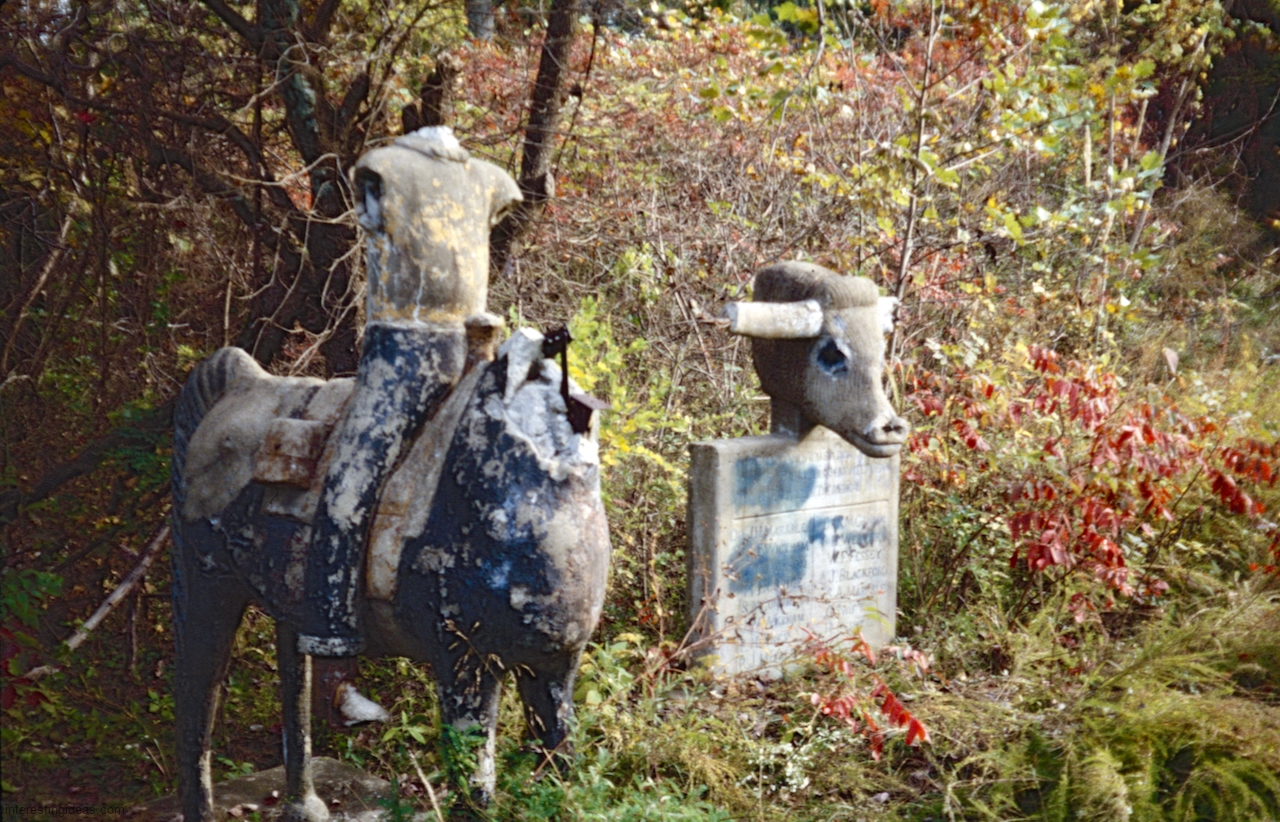 Check out this article with comments from Wickham’s grandson, Joe Schibig, who posted these two photos of E.T. and some of his statues intact. See Joe’s post here.