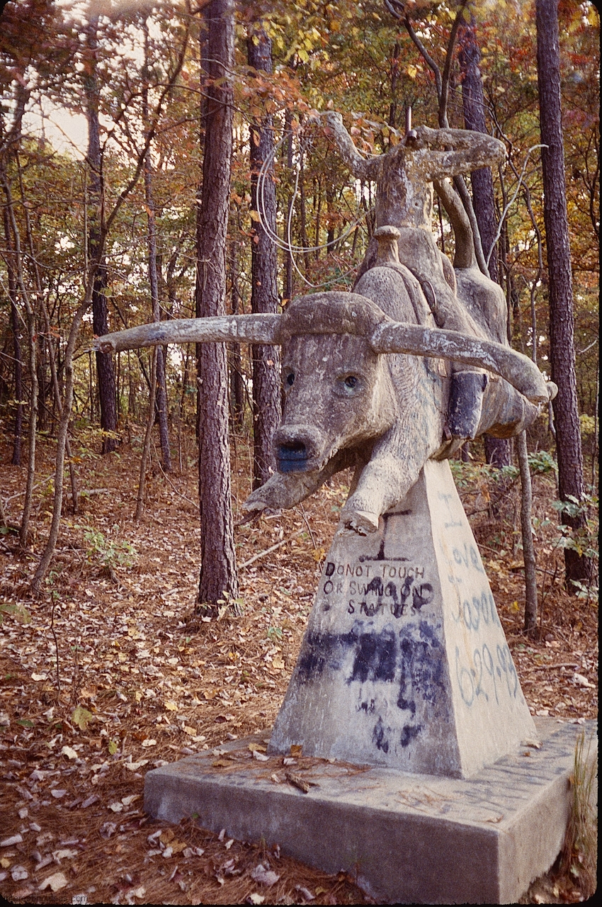 The E.T. Wickham site in Palmyra, Tennessee, is one of the country’s spookiest art environments, even in the open field to which the family has relocated most of the statues. Credit the vandals who wrecked the work, but even more the ghost of E.T.’s vision that survived their pummeling.