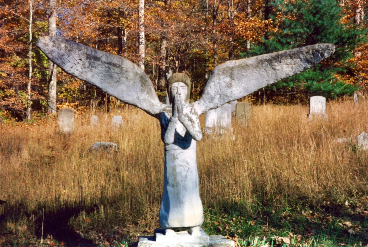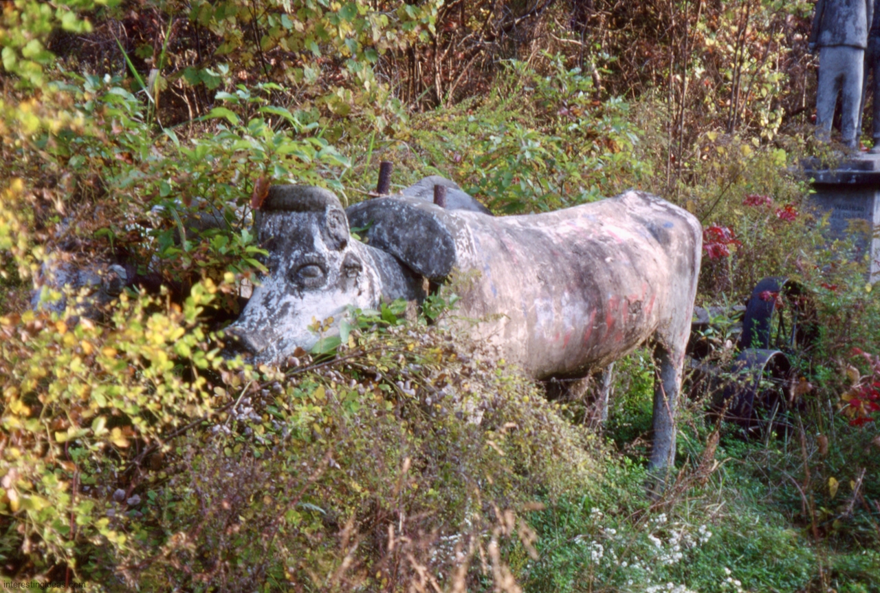 Thirteen years ago Wickham family members relocated most of the statues to a slightly less back back road. While it’s on the edge of a clear farm field rather than next to woods like the original site, the effect when the work comes into view is still powerful. And several statues remain in the first location.