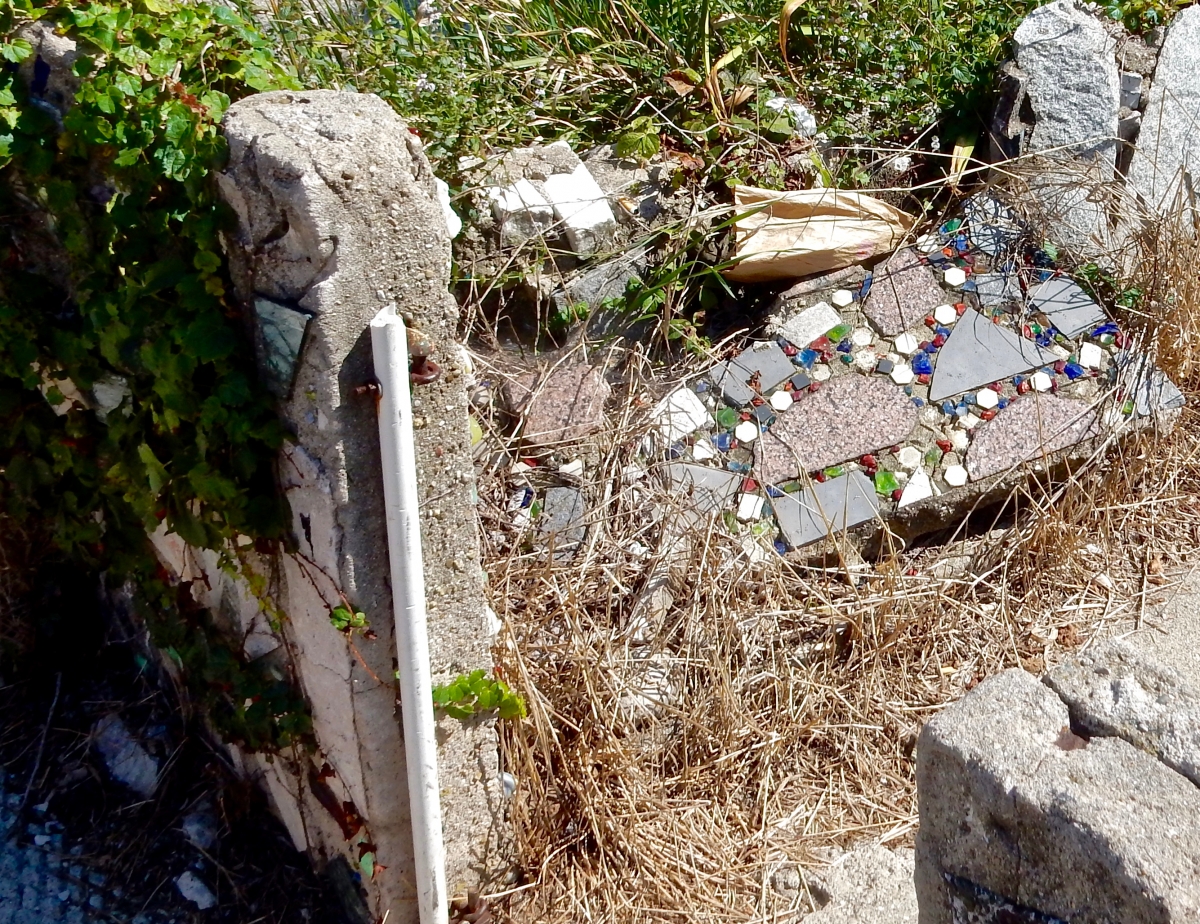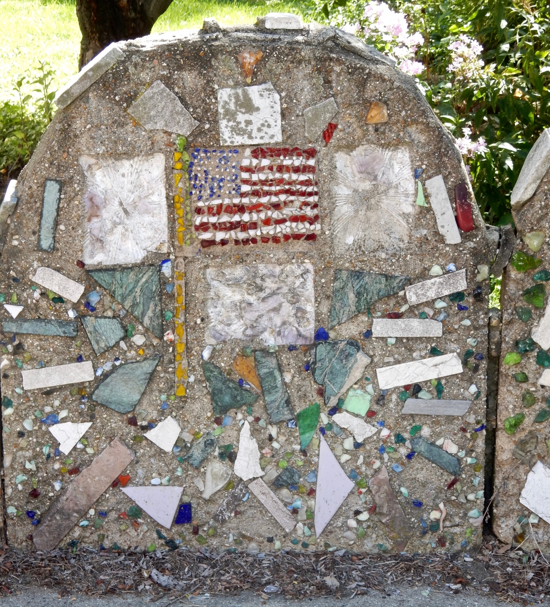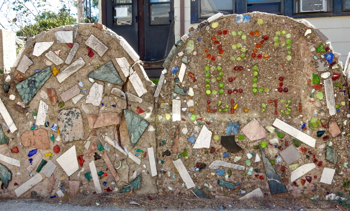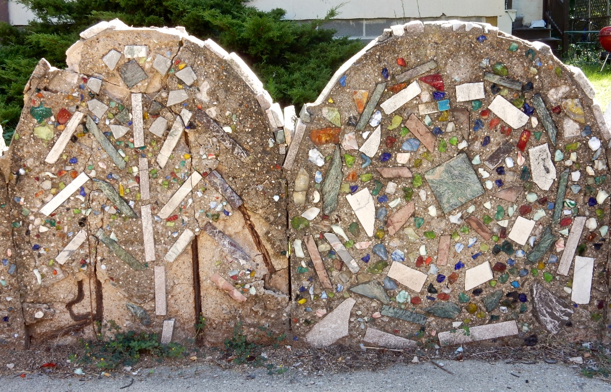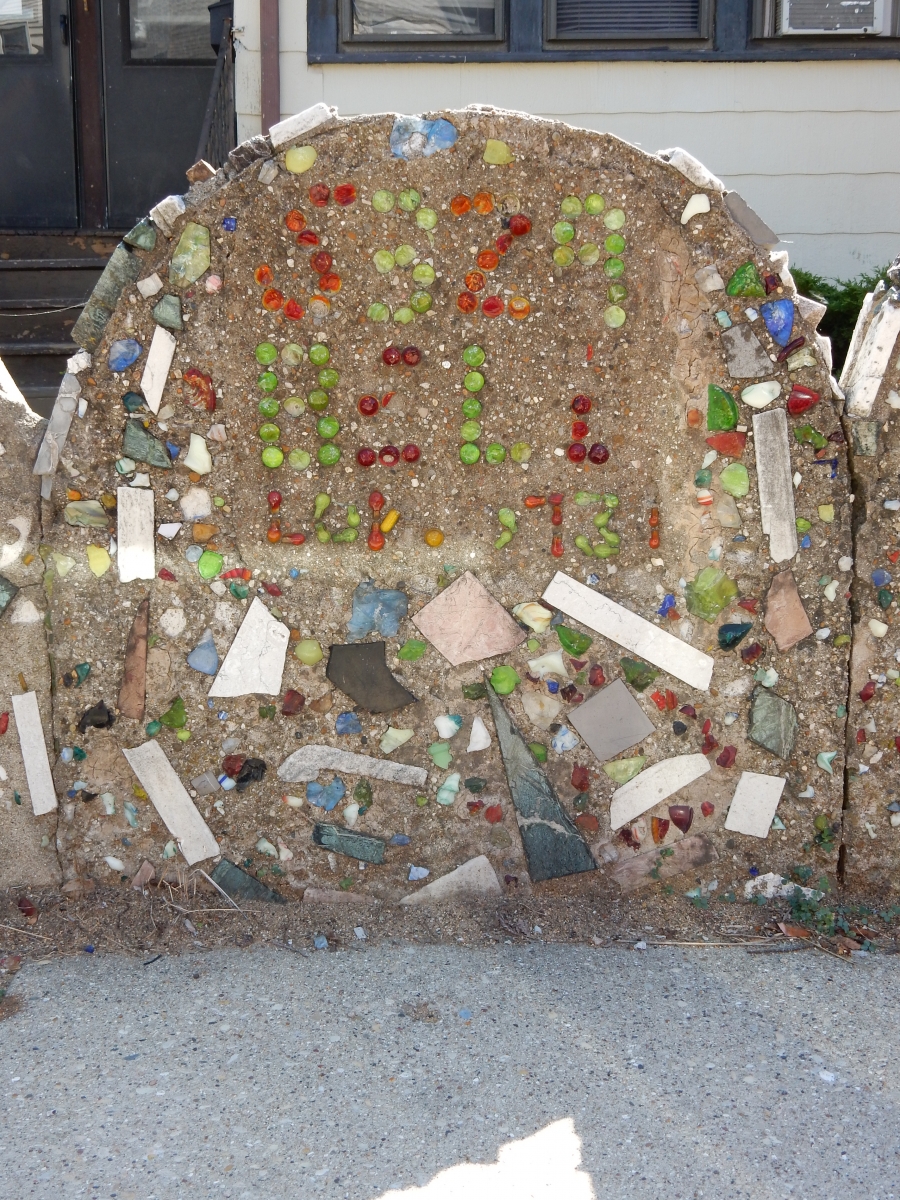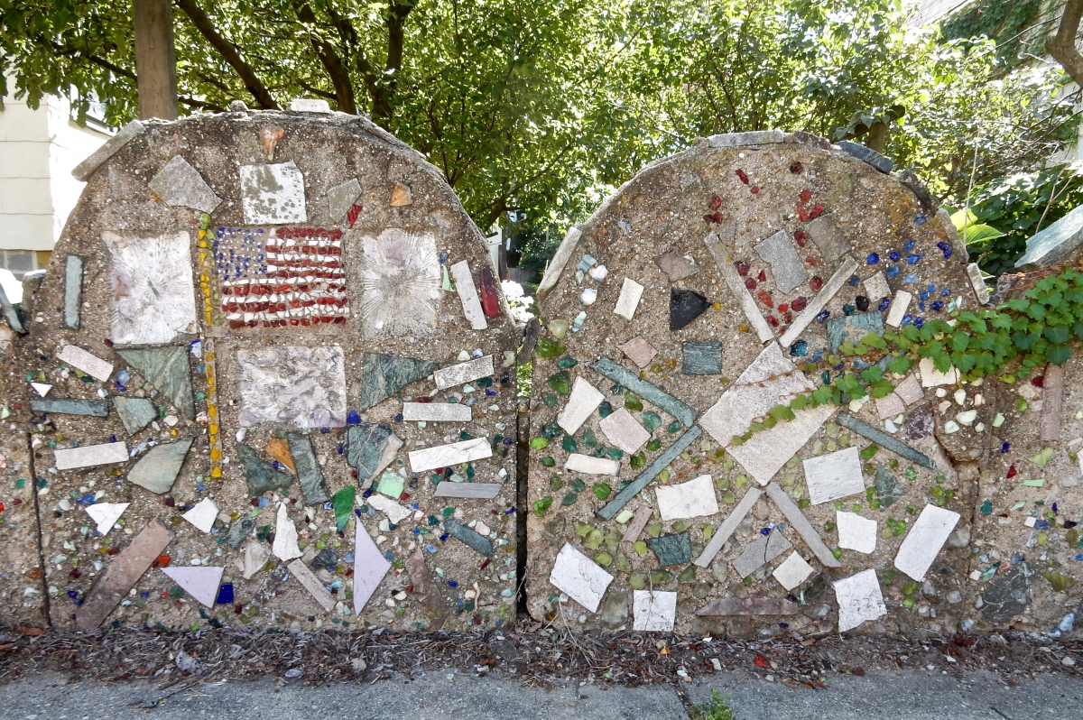 This pique assiette folk-art fence in Chicago’s wonderful Bowmanville neighborhood appears to date to 1973. It fronts a nondescript house on a nondescript, low-traffic street. Very few people driving by on the nearest thoroughfare are likely to recognize that they just passed an important folk-art site.