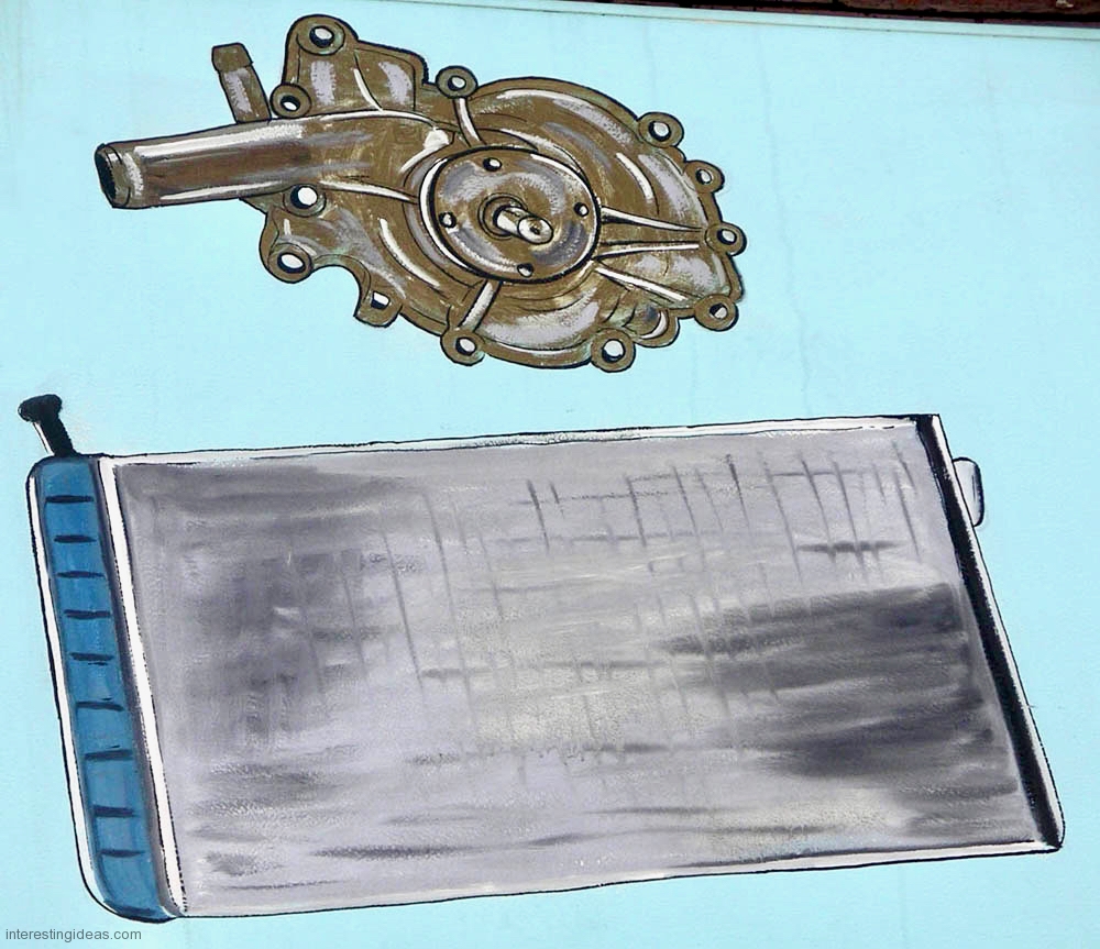 December 20, 2020 Bill Swislow Graphical Impact Auto parts float against a lovely blue background at Chicago’s Ninevah Auto Parts. Back to the Automotive Art Gallery index