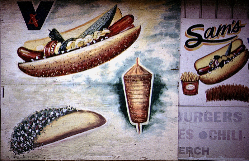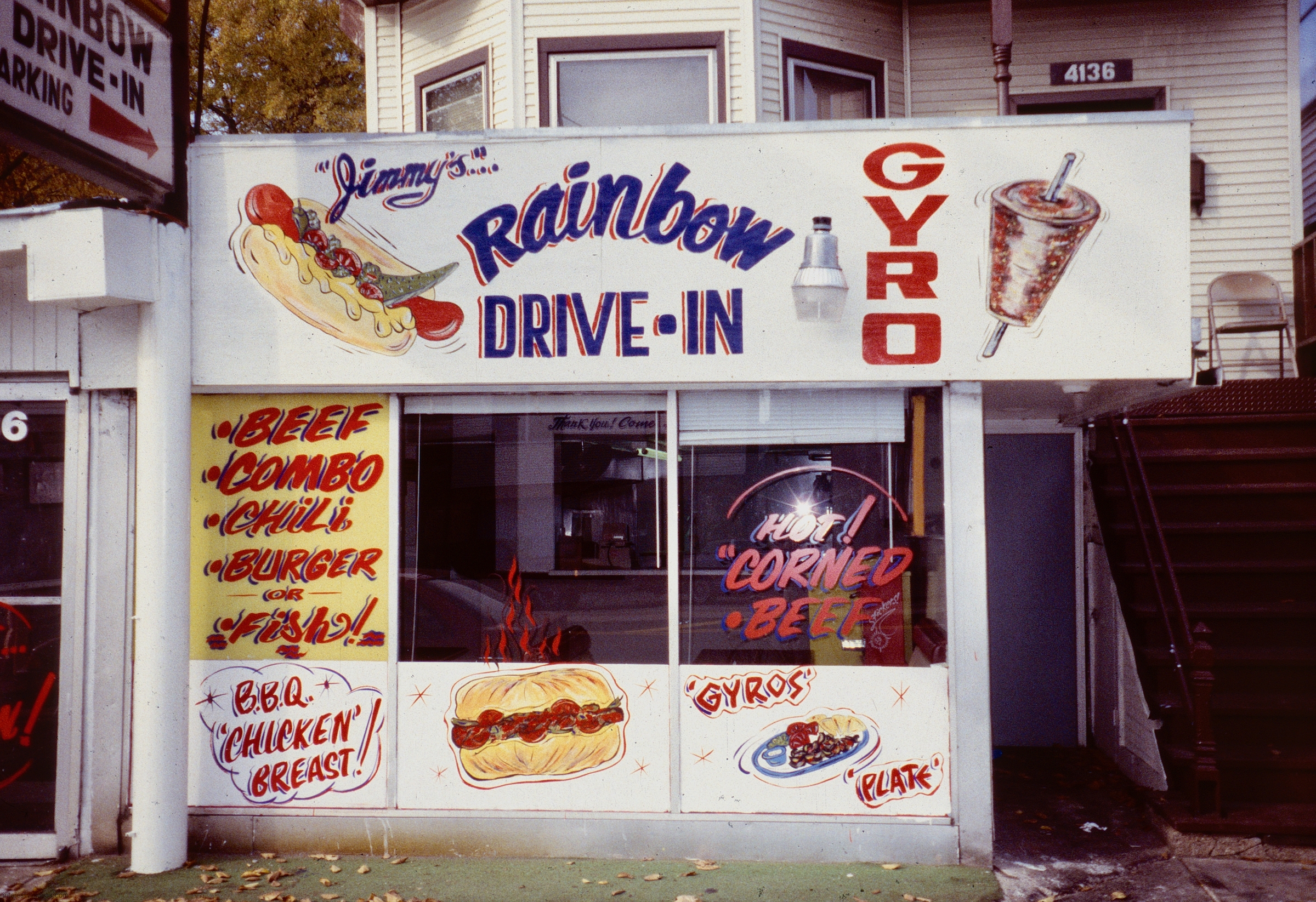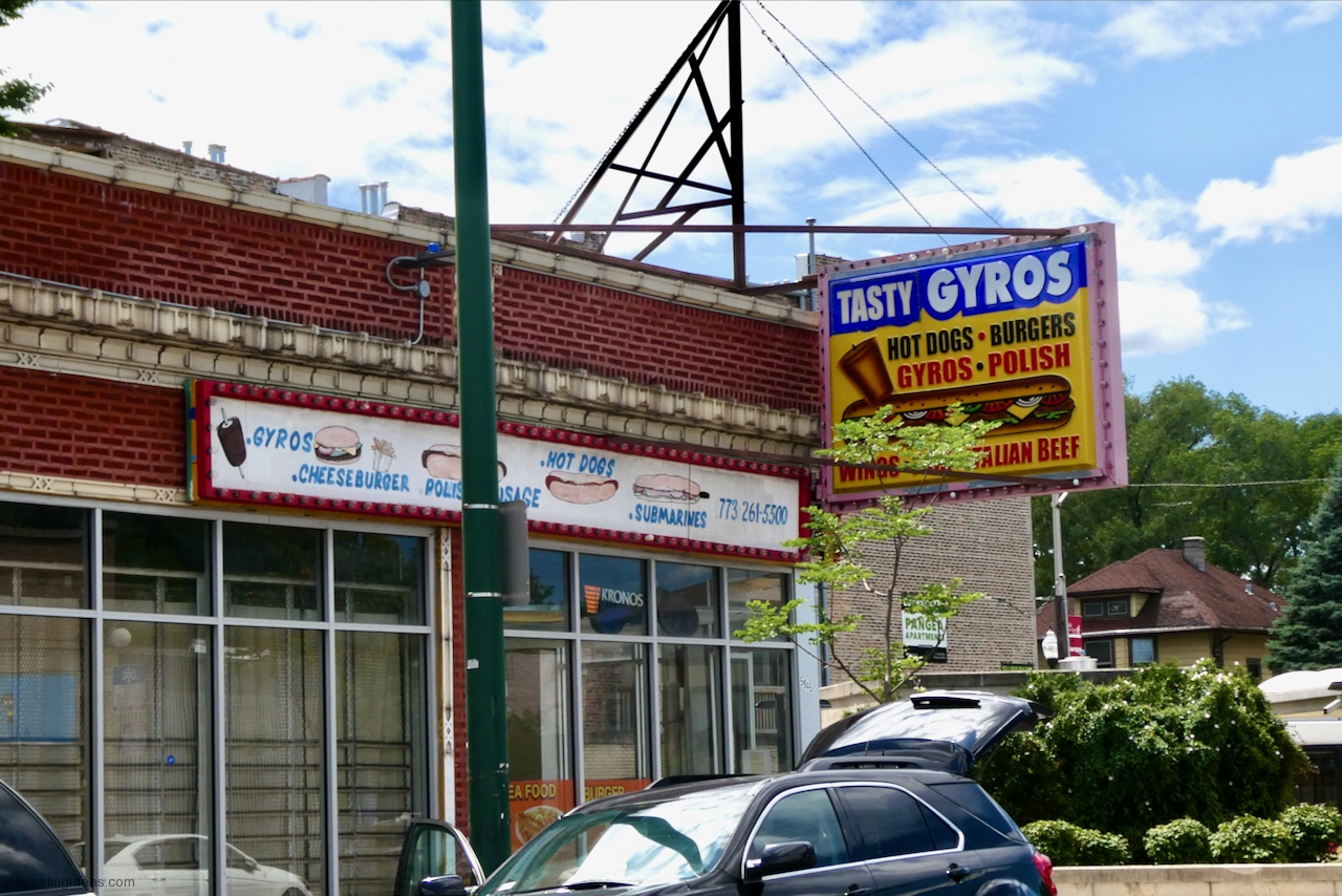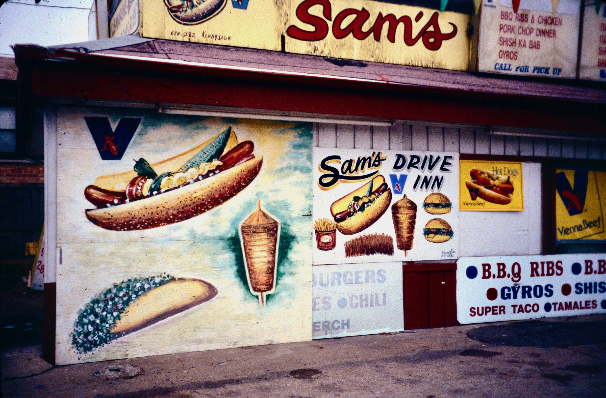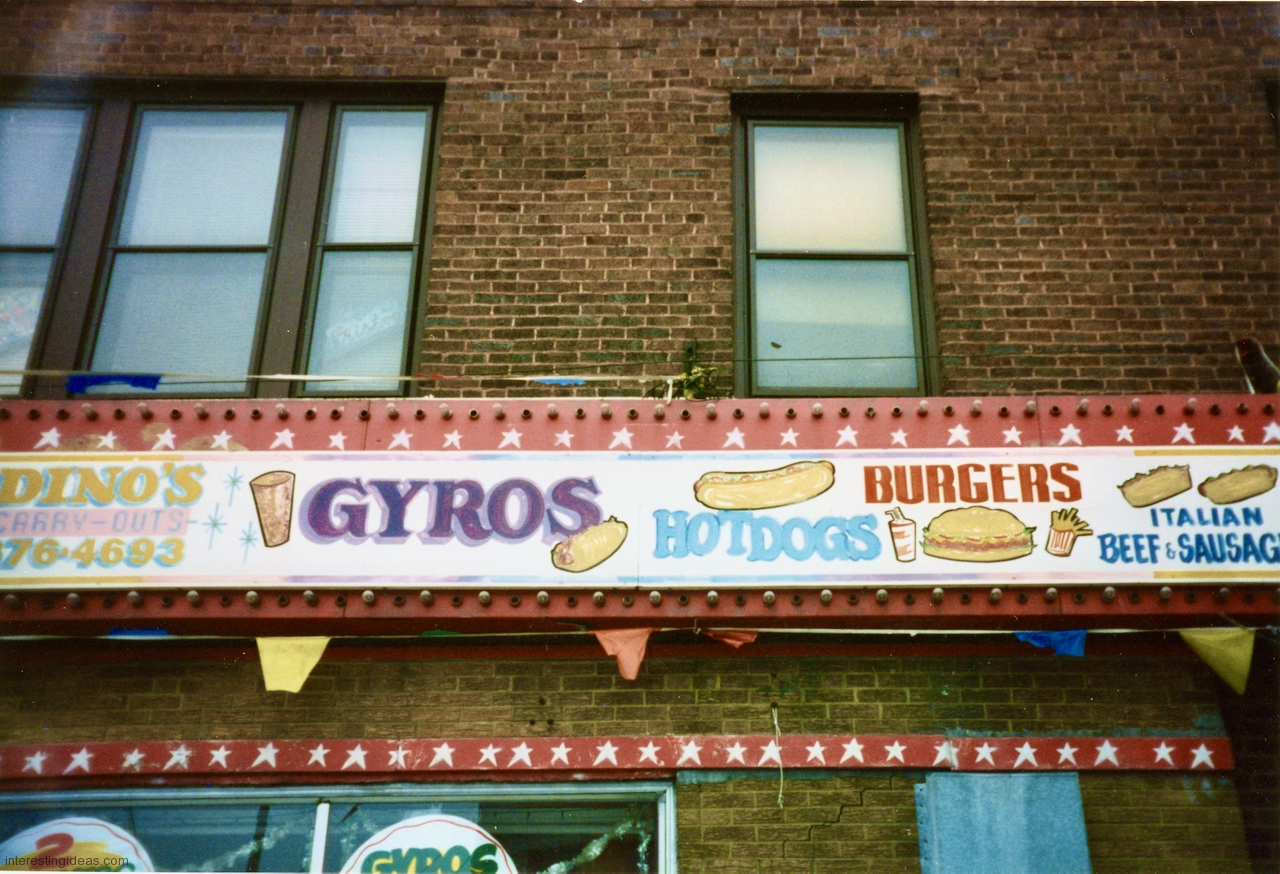 Gyros has inspired some wonderful hand-painted signs. The easy availability of photographic and other mechanically produced imagery, often provided by vendors, has chipped away at one-of-a-kind signage. But some of the masterpieces on this page still exist, starting with Nick’s Drive In.