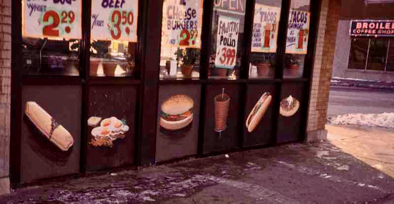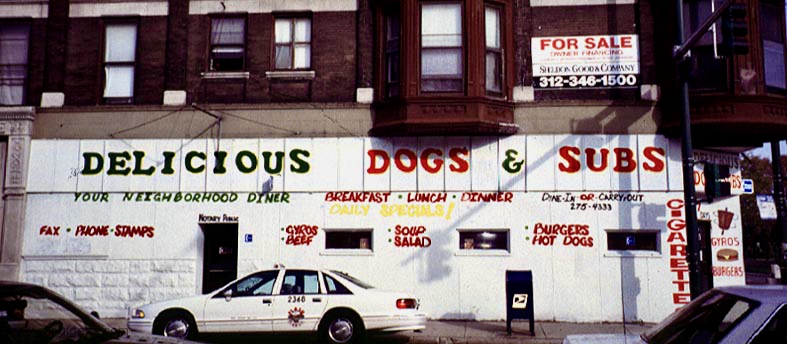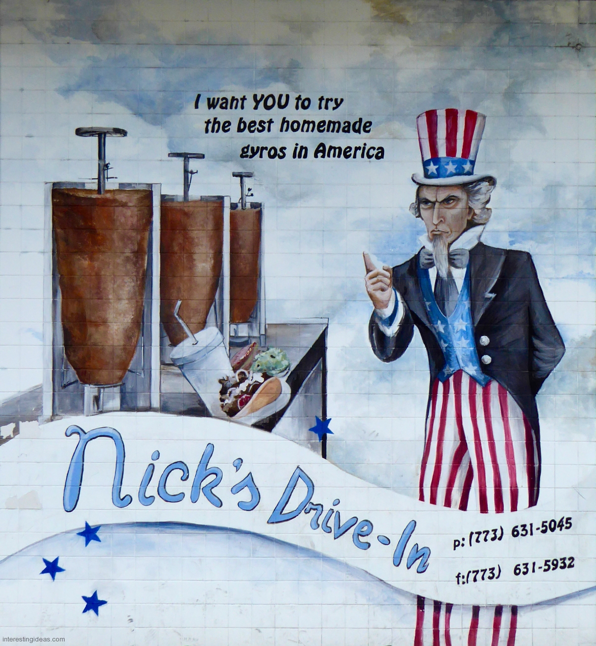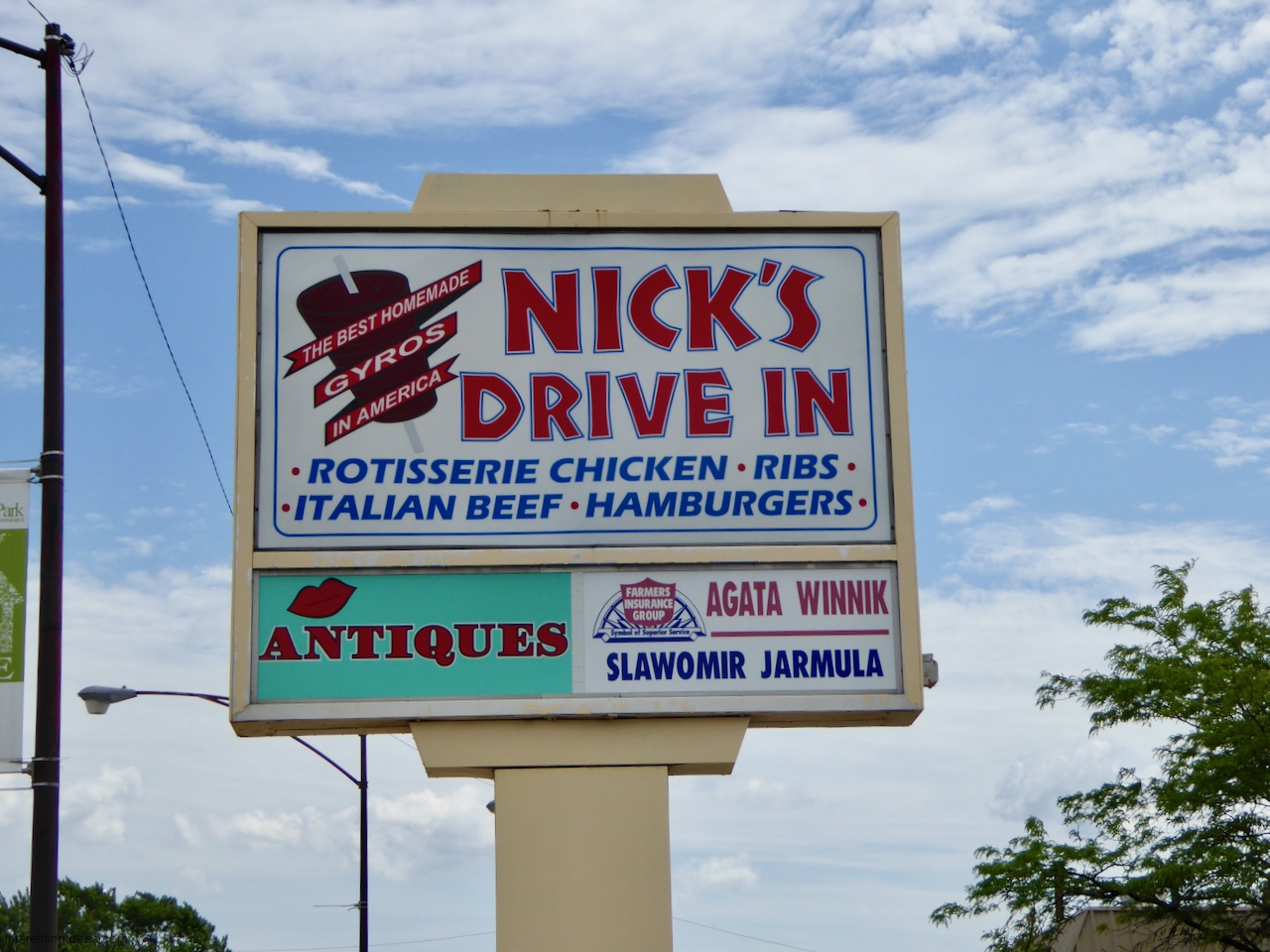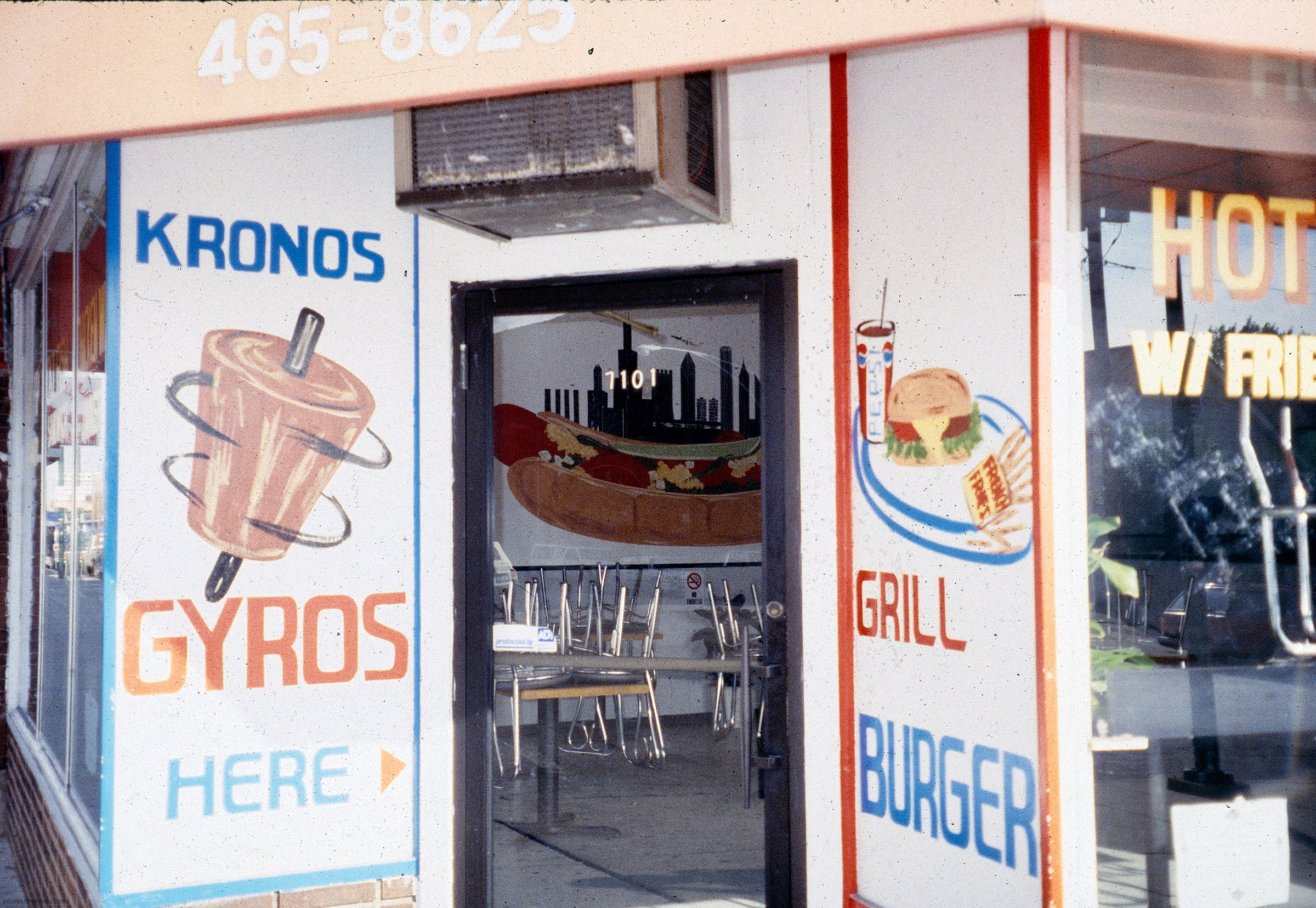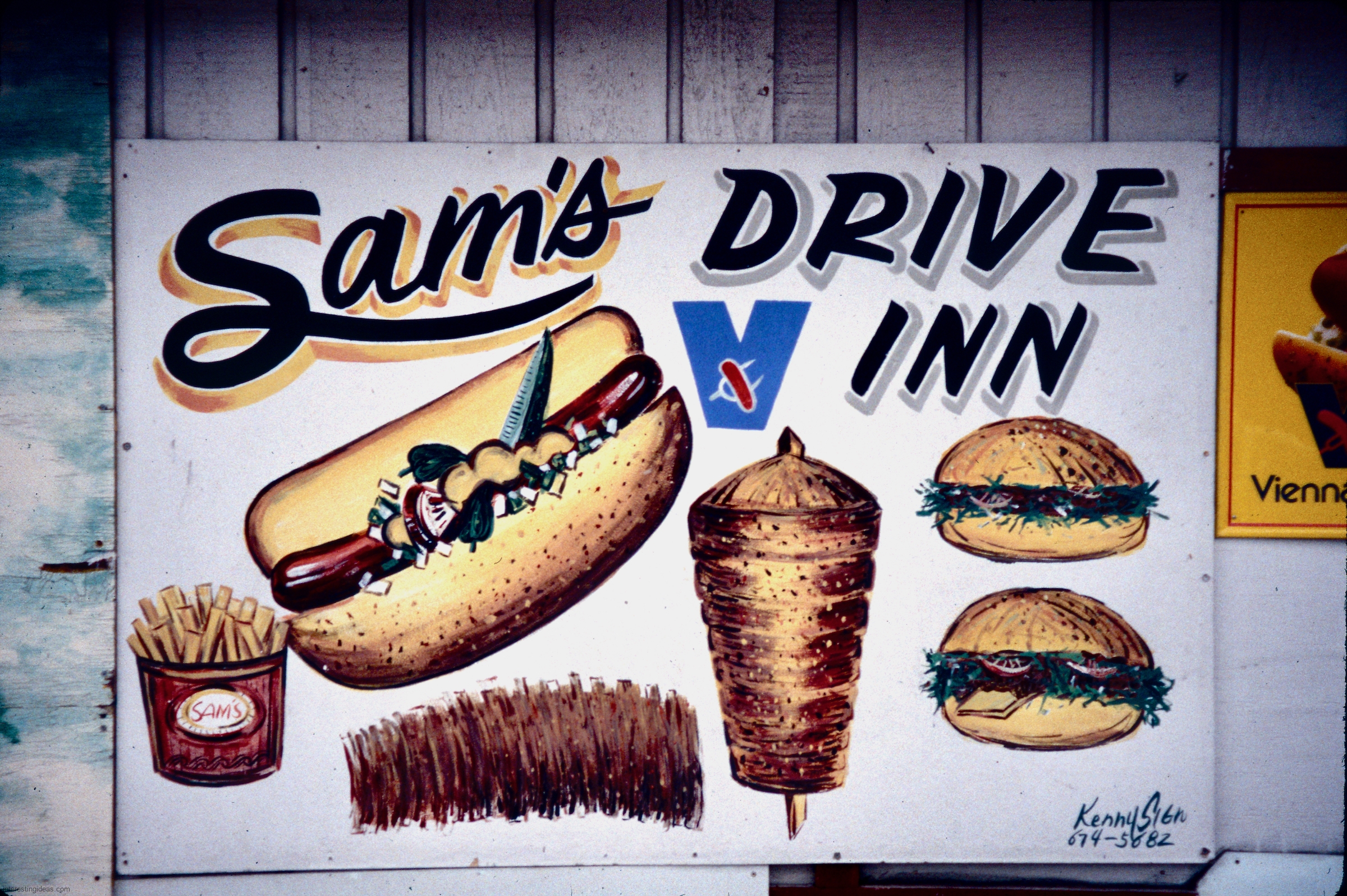Gyros has inspired some wonderful hand-painted signs. The easy availability of photographic and other mechanically produced imagery, often provided by vendors, has chipped away at one-of-a-kind signage. But some of the masterpieces on this page still exist, starting with Nick’s Drive In.