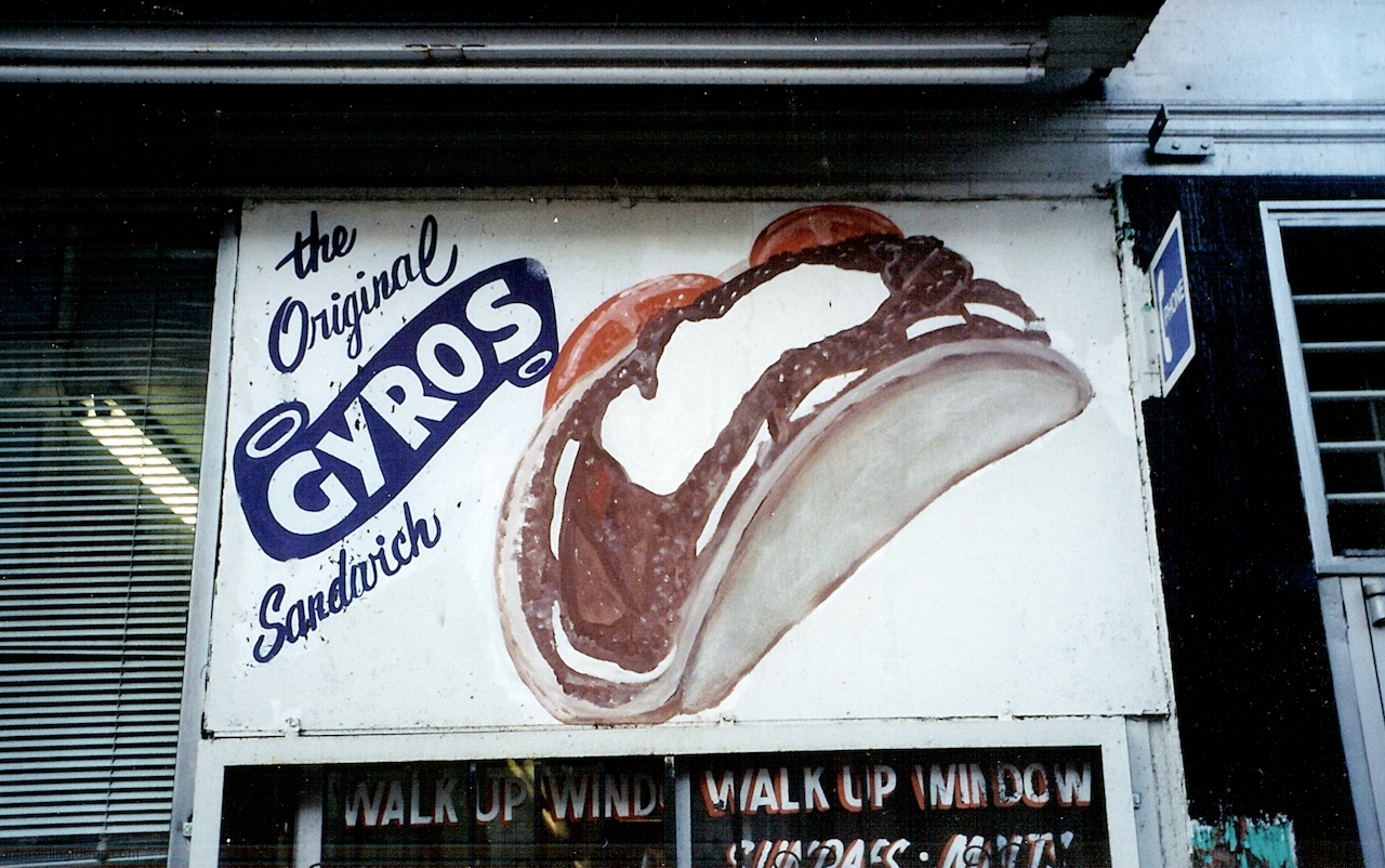 These signs take gyros art a step deeper and plumb the depths of the gyros sandwich (and plate)