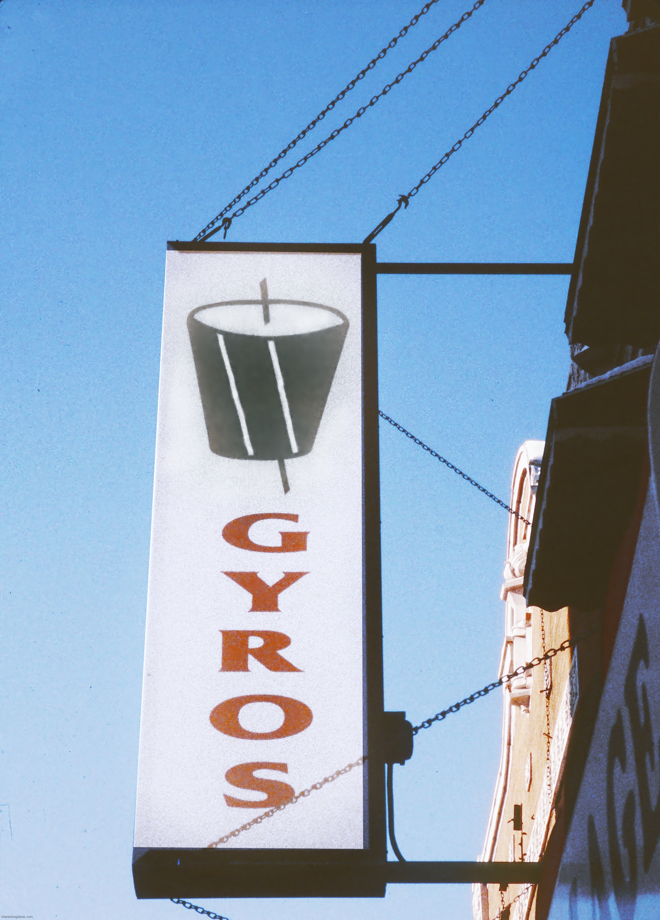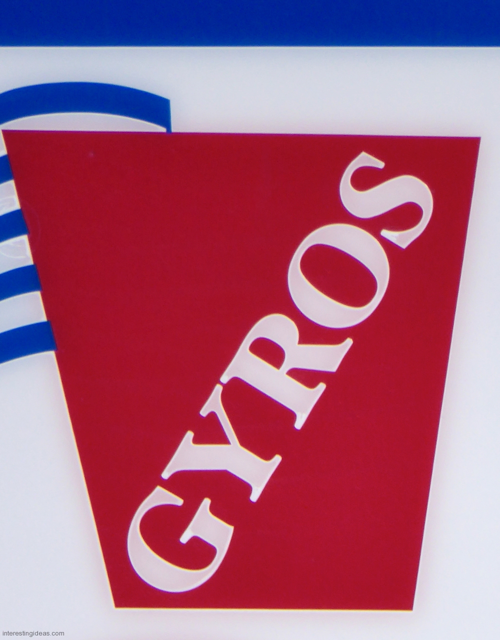 The conical shape of the classic gyros spiral lends itself to dynamic graphic treatments. That can include integration with other graphic elements, like an arrow, highly schematic versions of the basic shape, or decorative overlays on the basic geometry
