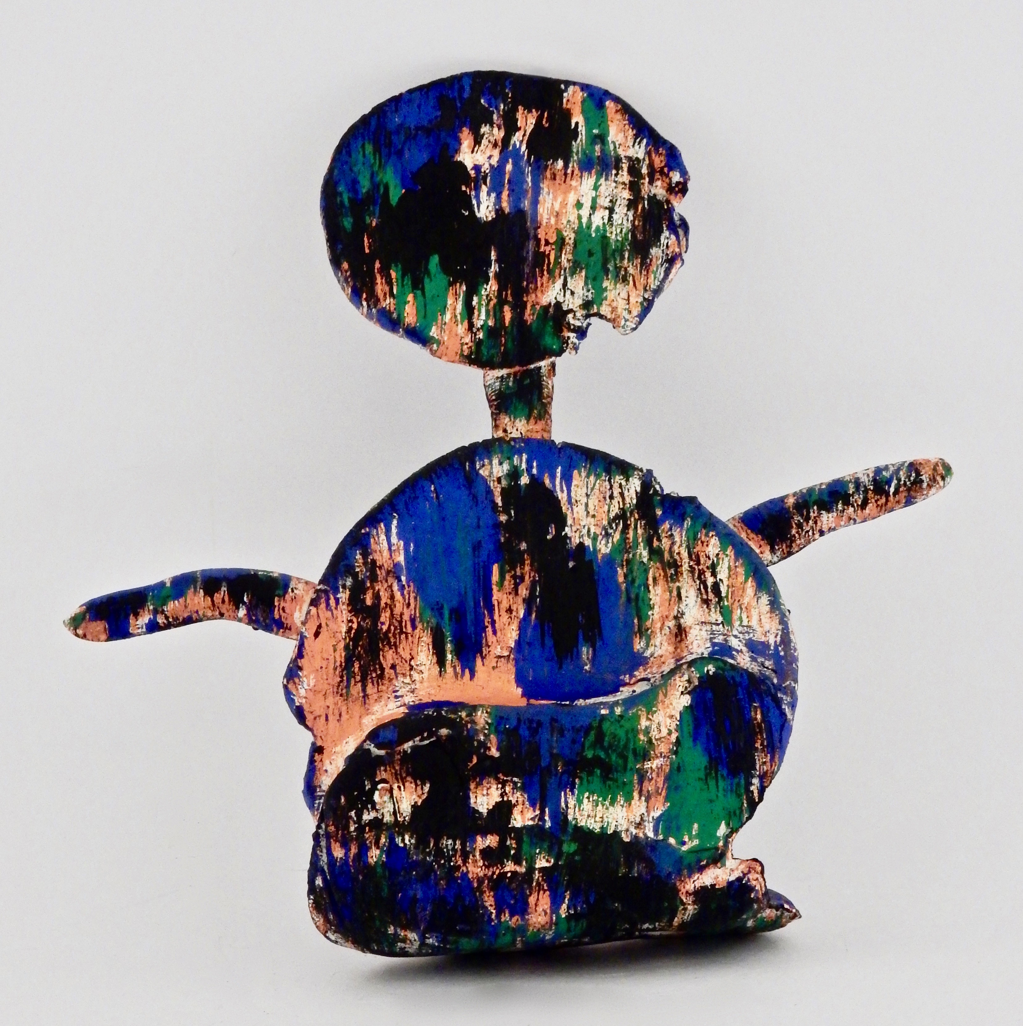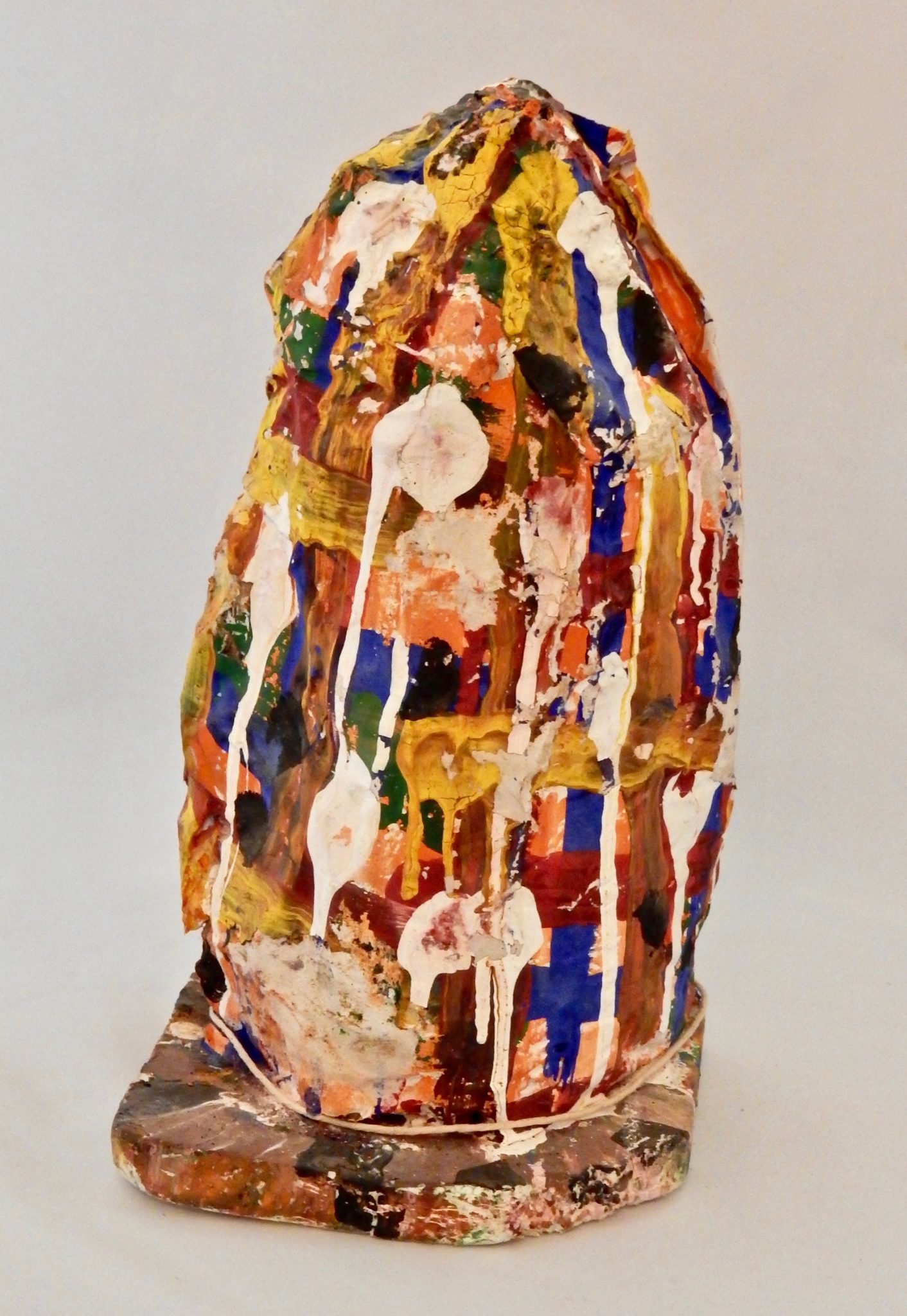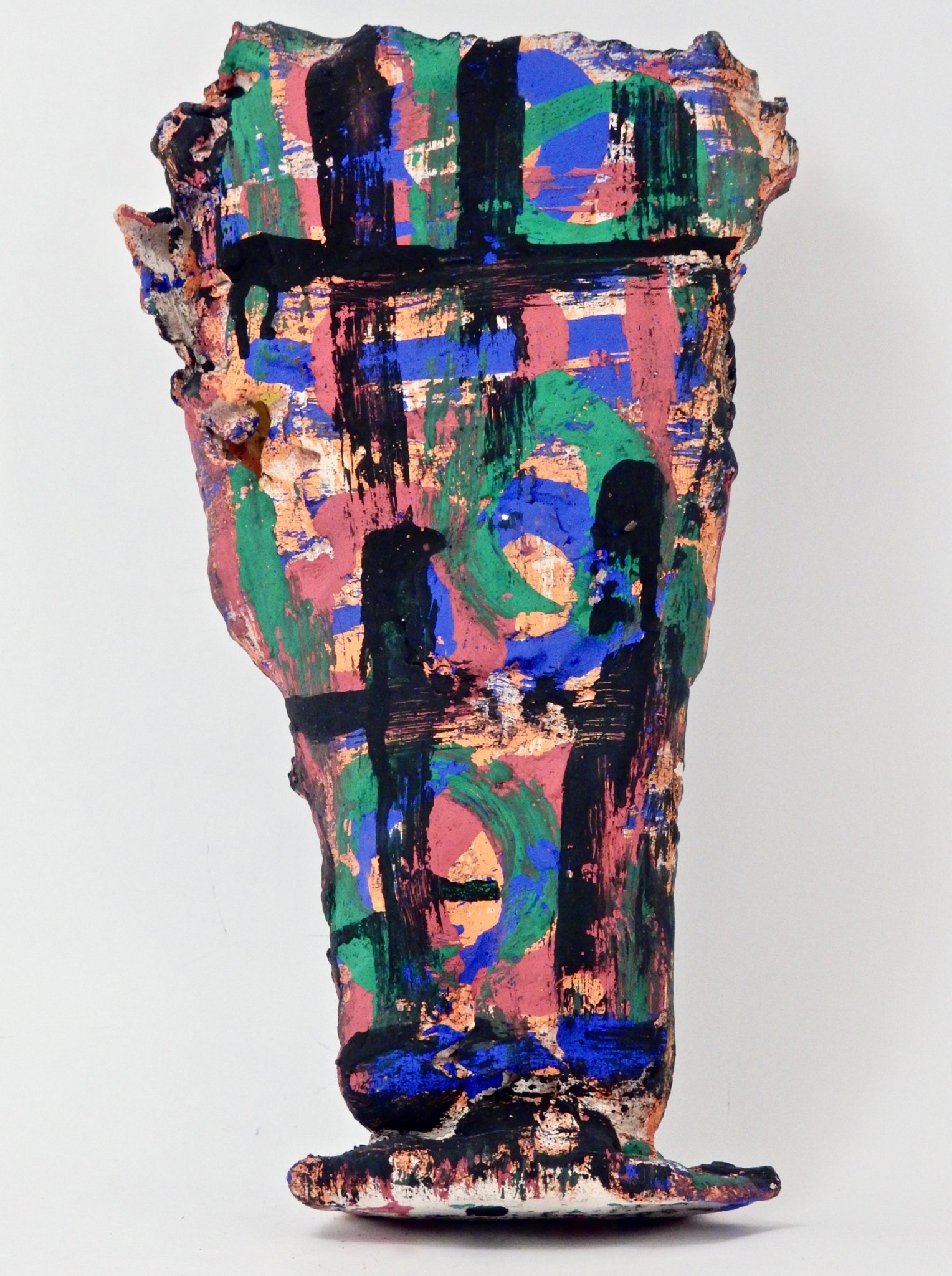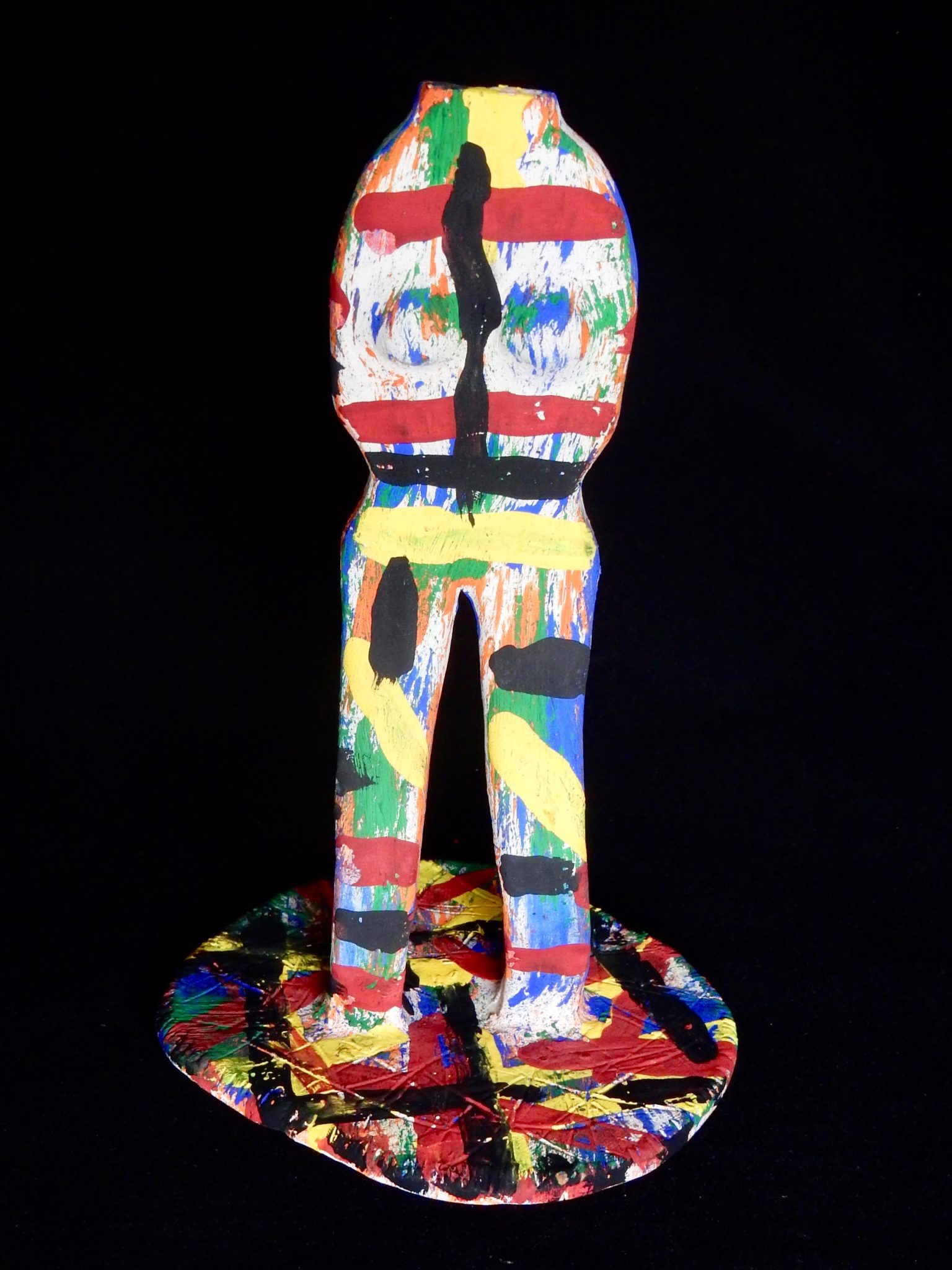 Harvey Ford was a prolific producer of drawings when he was in the art program at Joliet’s Stateville Penitentiary, but he also made some impressive sculptures, mostly ceramic, and at least a few papier-mâché. The colors and shapes are more than a match for the intensity of his drawings, many of which he made with burnt matches.