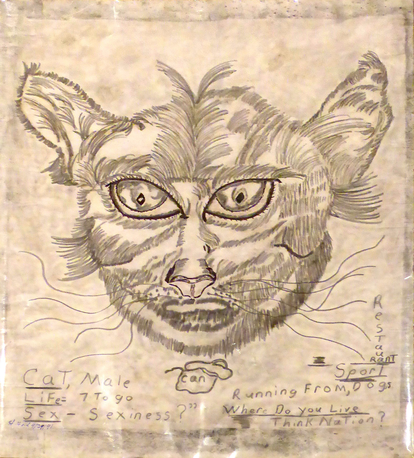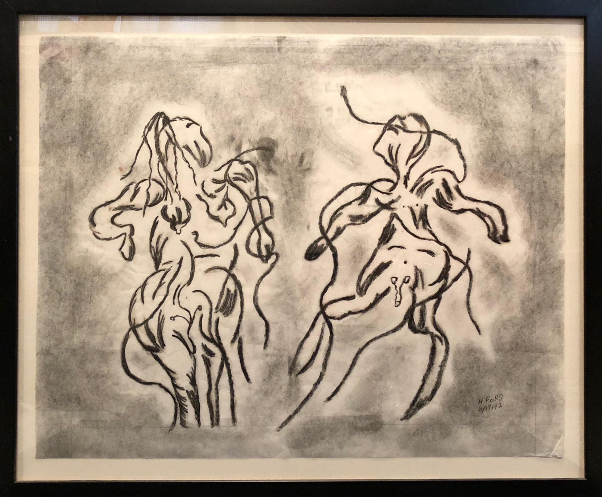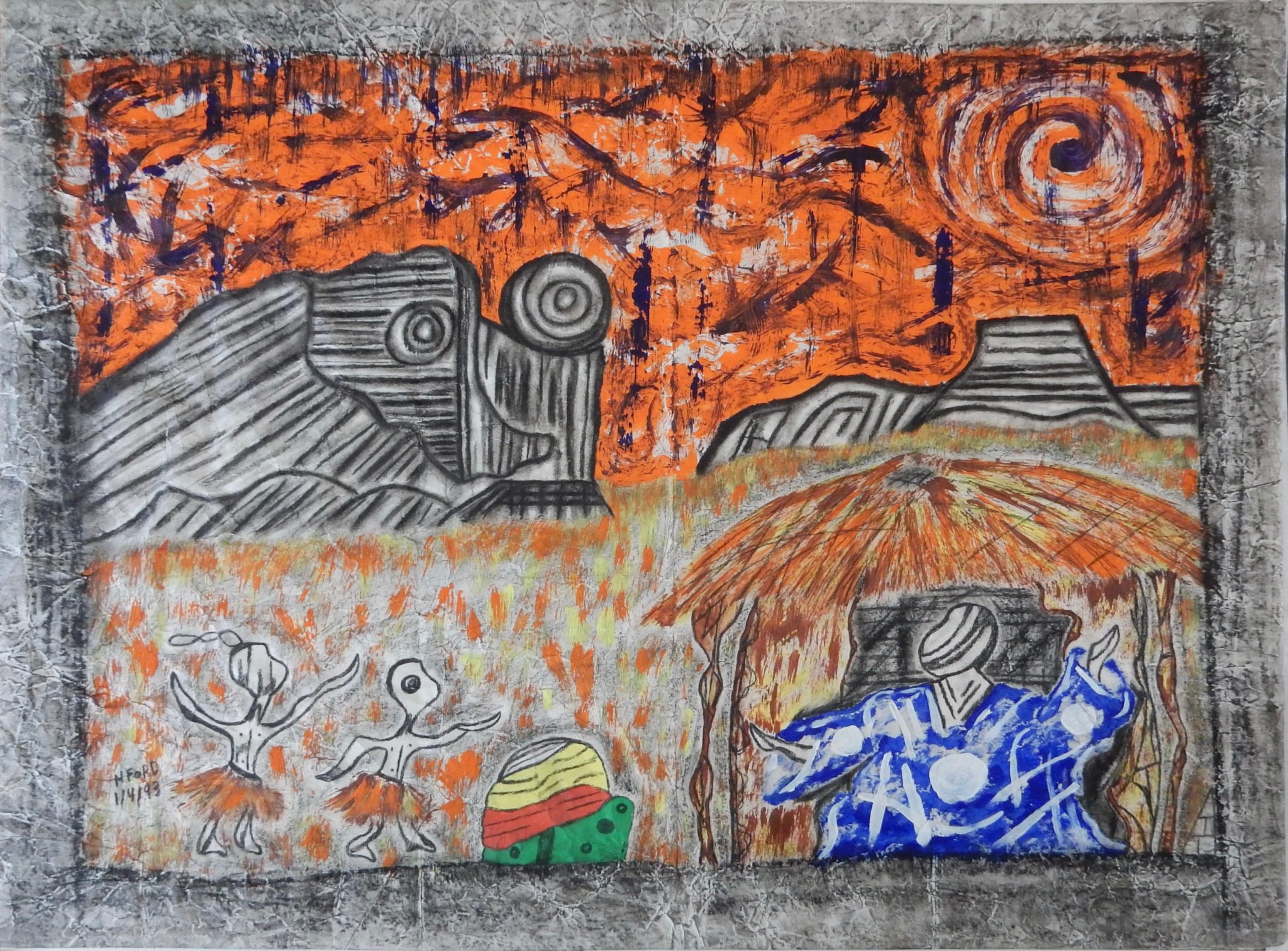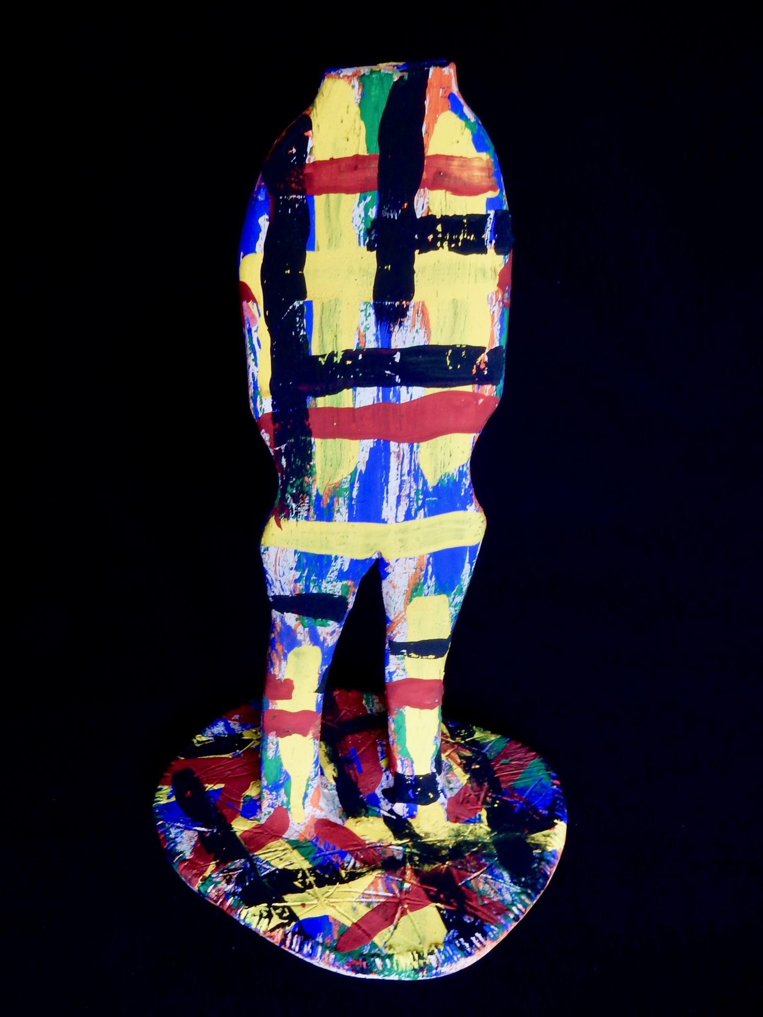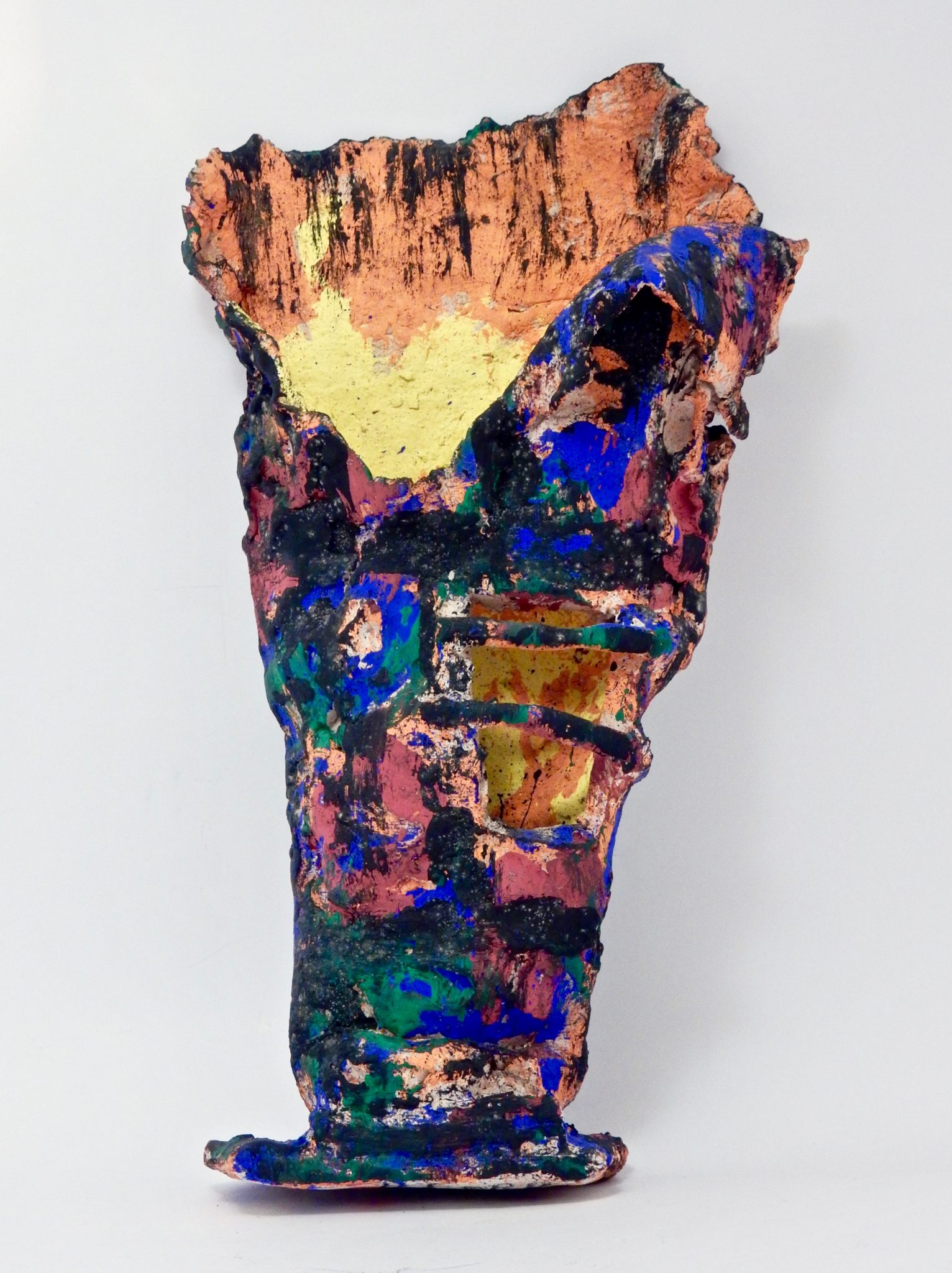 Harvey Ford was a prolific producer of drawings when he was in the art program at Joliet’s Stateville Penitentiary, but he also made some impressive sculptures, mostly ceramic, and at least a few papier-mâché. The colors and shapes are more than a match for the intensity of his drawings, many of which he made with burnt matches.