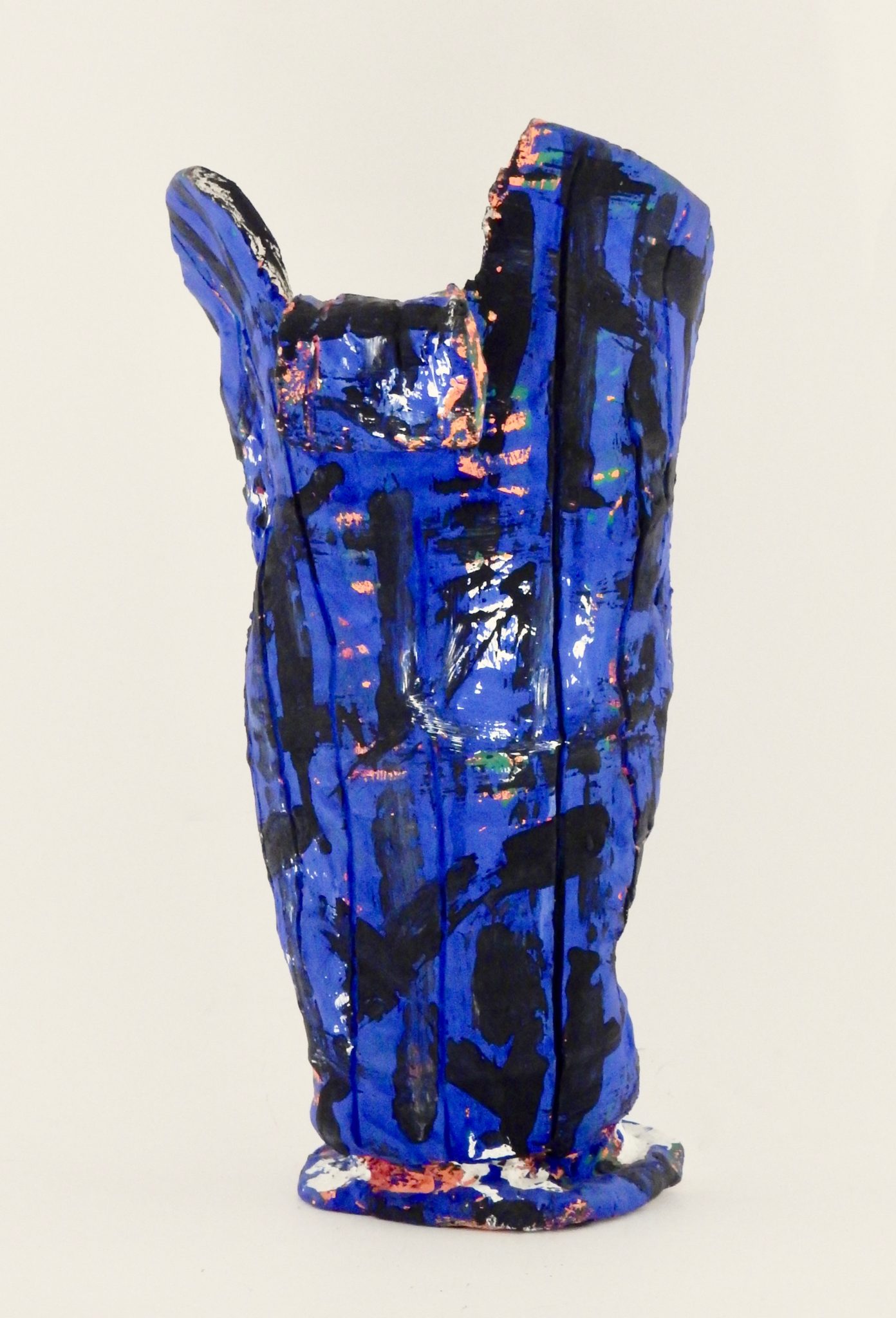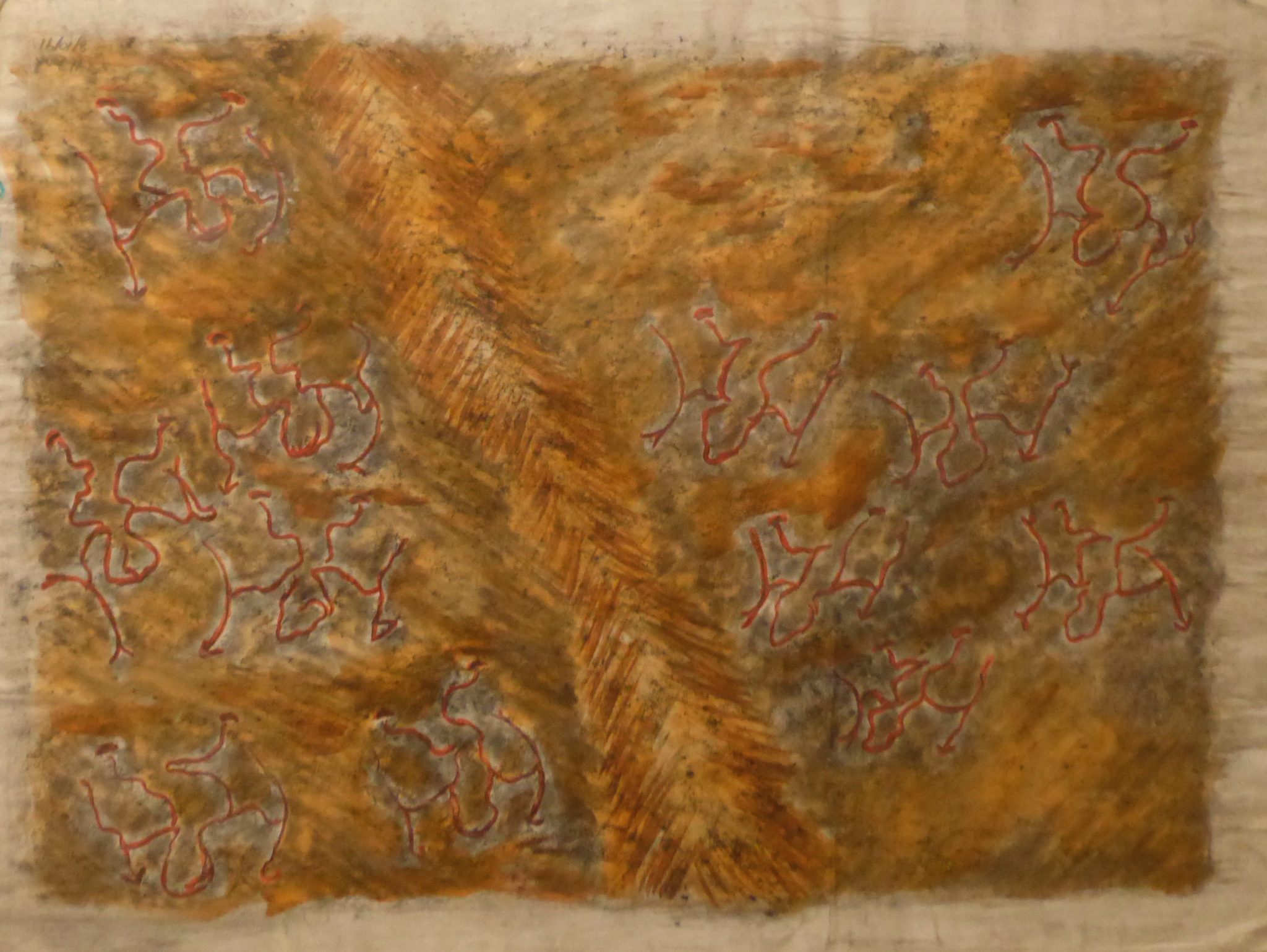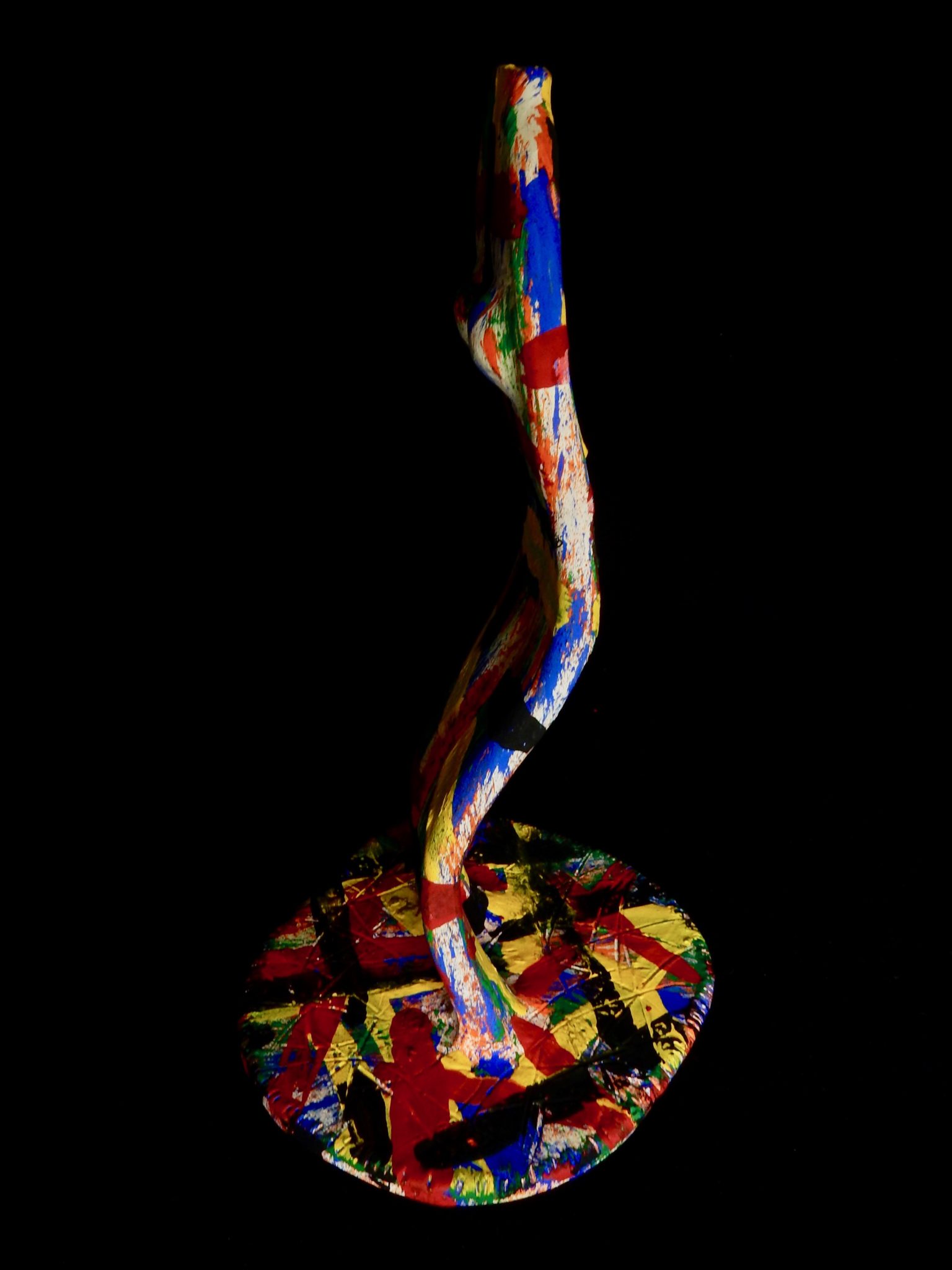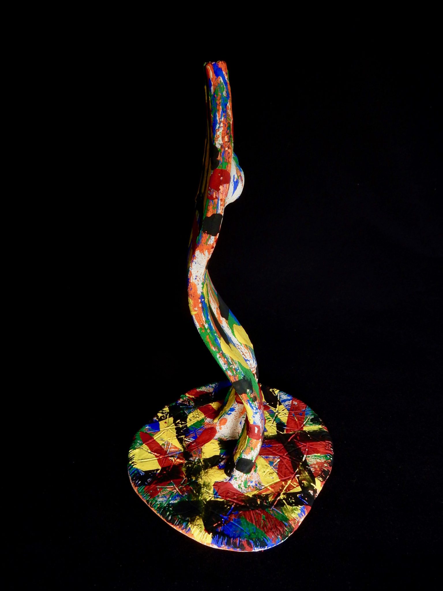 Harvey Ford was a prolific producer of drawings when he was in the art program at Joliet’s Stateville Penitentiary, but he also made some impressive sculptures, mostly ceramic, and at least a few papier-mâché. The colors and shapes are more than a match for the intensity of his drawings, many of which he made with burnt matches.