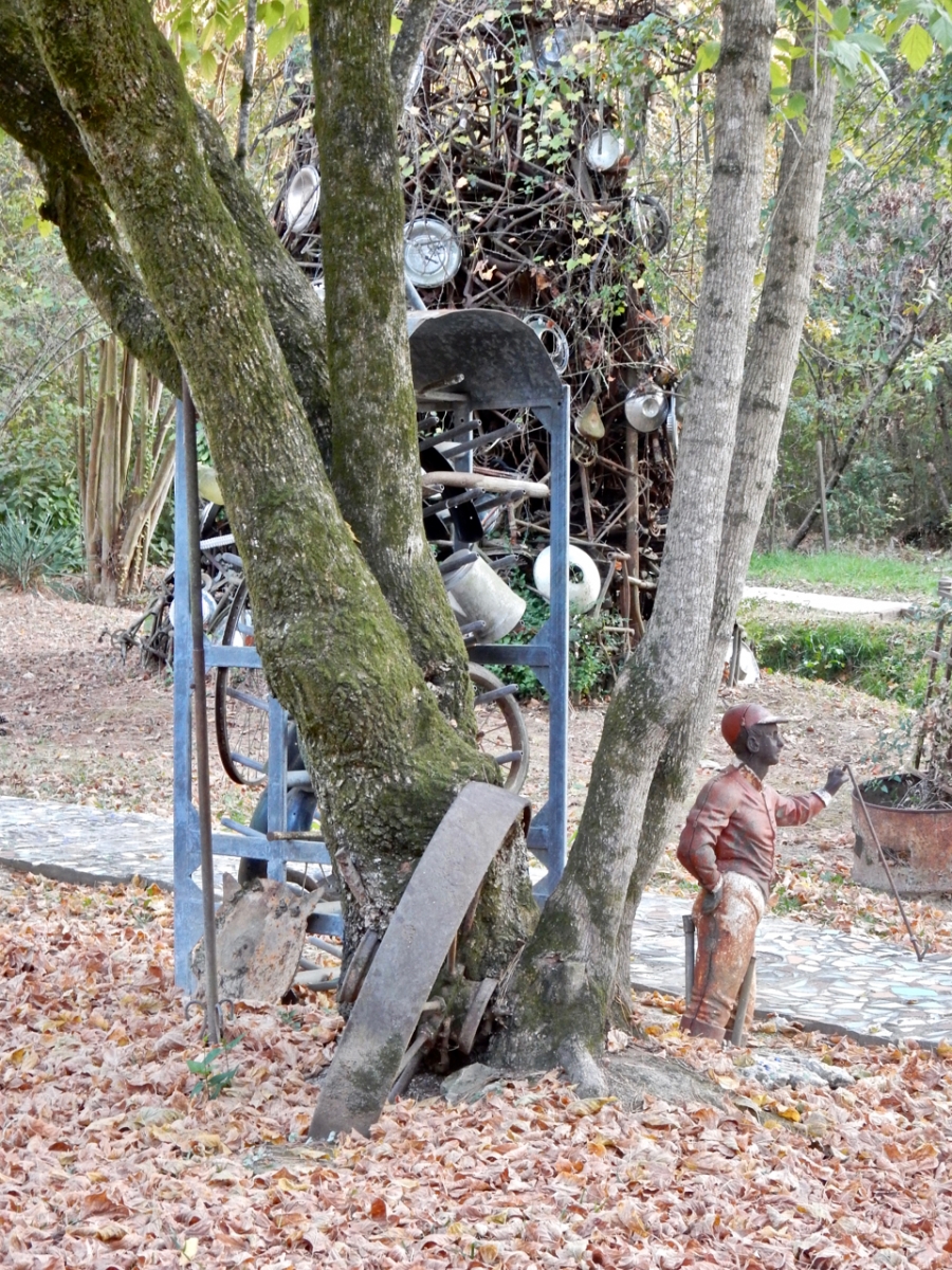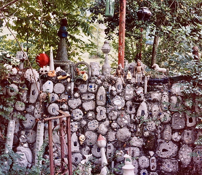 Before turning to art Finster was a preacher and a bicycle repairman, among other occupations whose remnants can still be seen in his garden. His artistic output was prolific, interesting, visionary and — important to collectors — cheap. He built an environment that was stunning in whole and in many of its parts, and he was personally accessible, despite an obvious cultural distance as hipster visitors listened politely to his impromptu and often extended sermons.