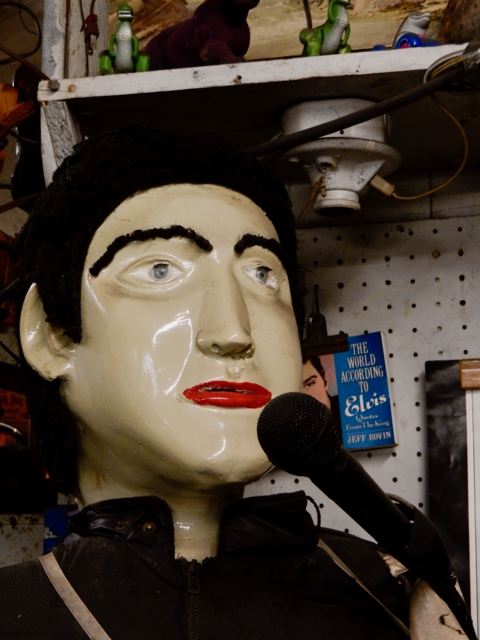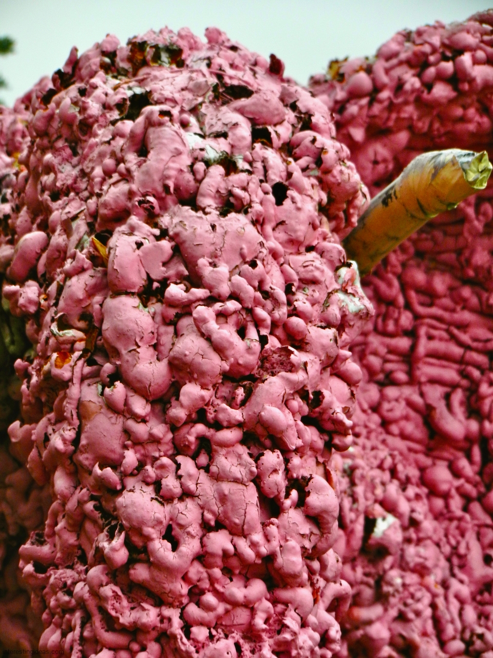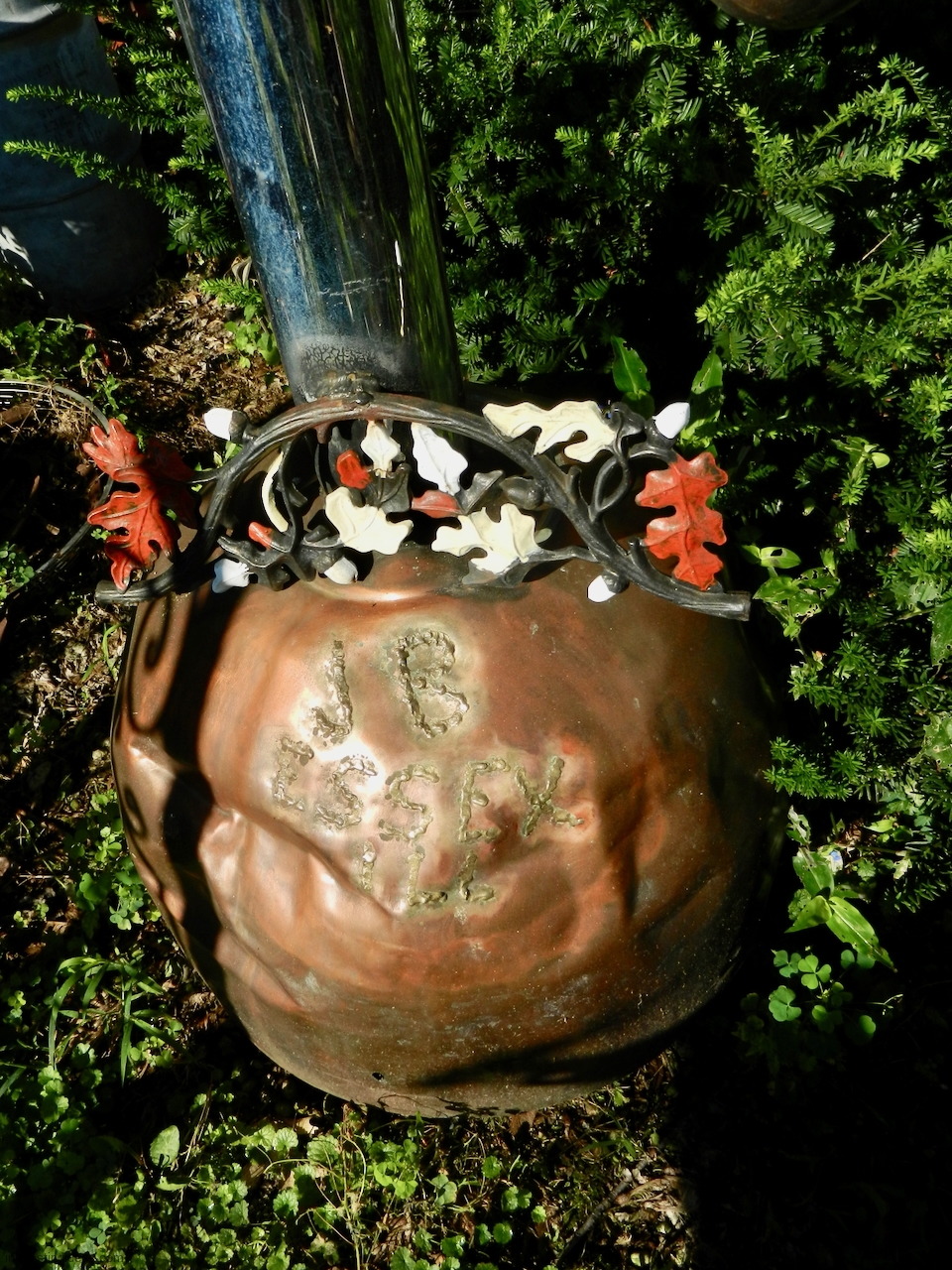 Much of Barker’s work was figurative, but many of his sculptures were quite abstracted, and some entirely abstract. It all added up to a mind-boggling environmental conglomeration. Its impressiveness, though, came at the expense of each individual piece’s impact; it could be hard to pick any one artwork out of the crowd. Fortunately, some of the more sculptural pieces were set off in the side and back yards away from the concentrated mass in front.