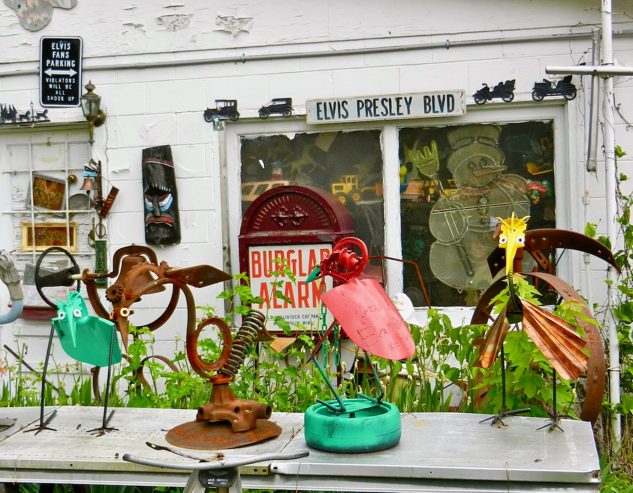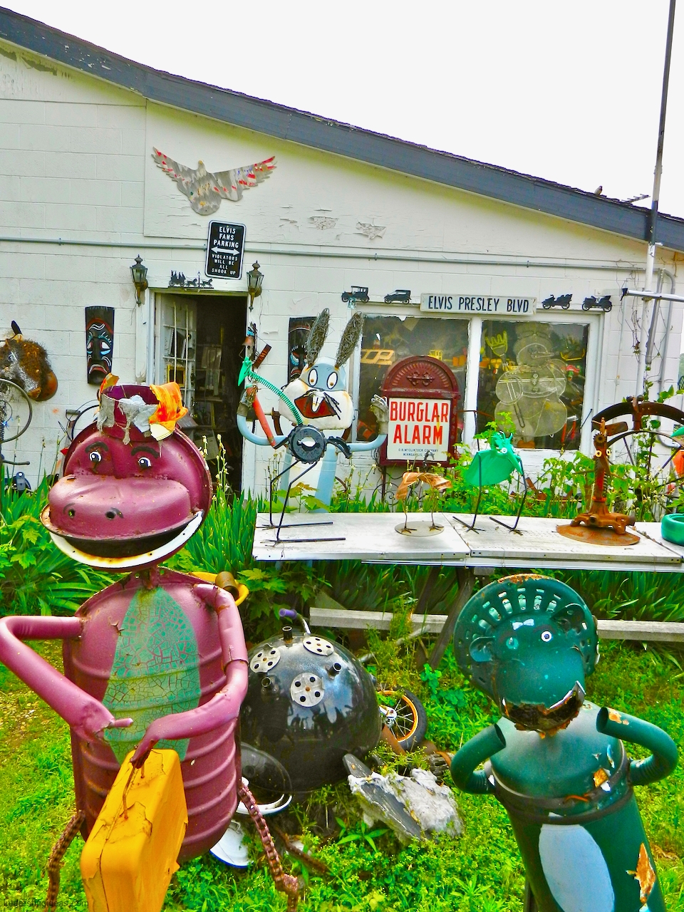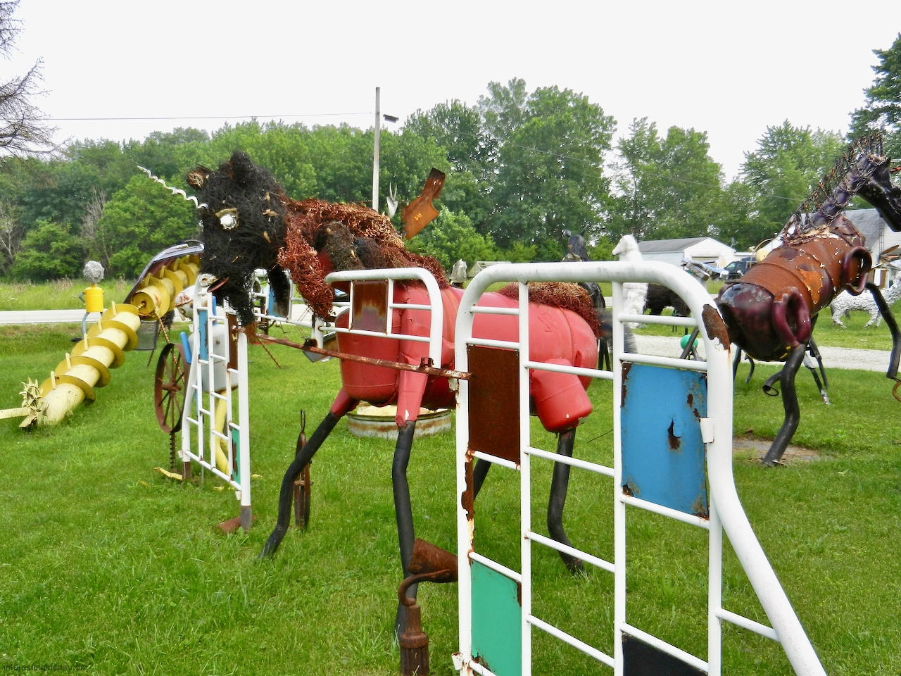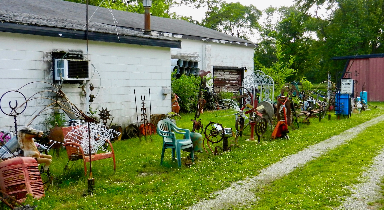 These photos of the Jack Barker metal art environment are from two 2011 visits.