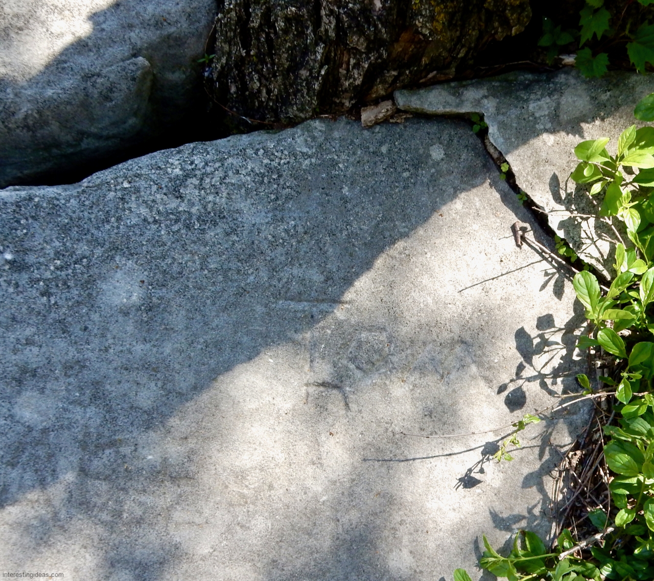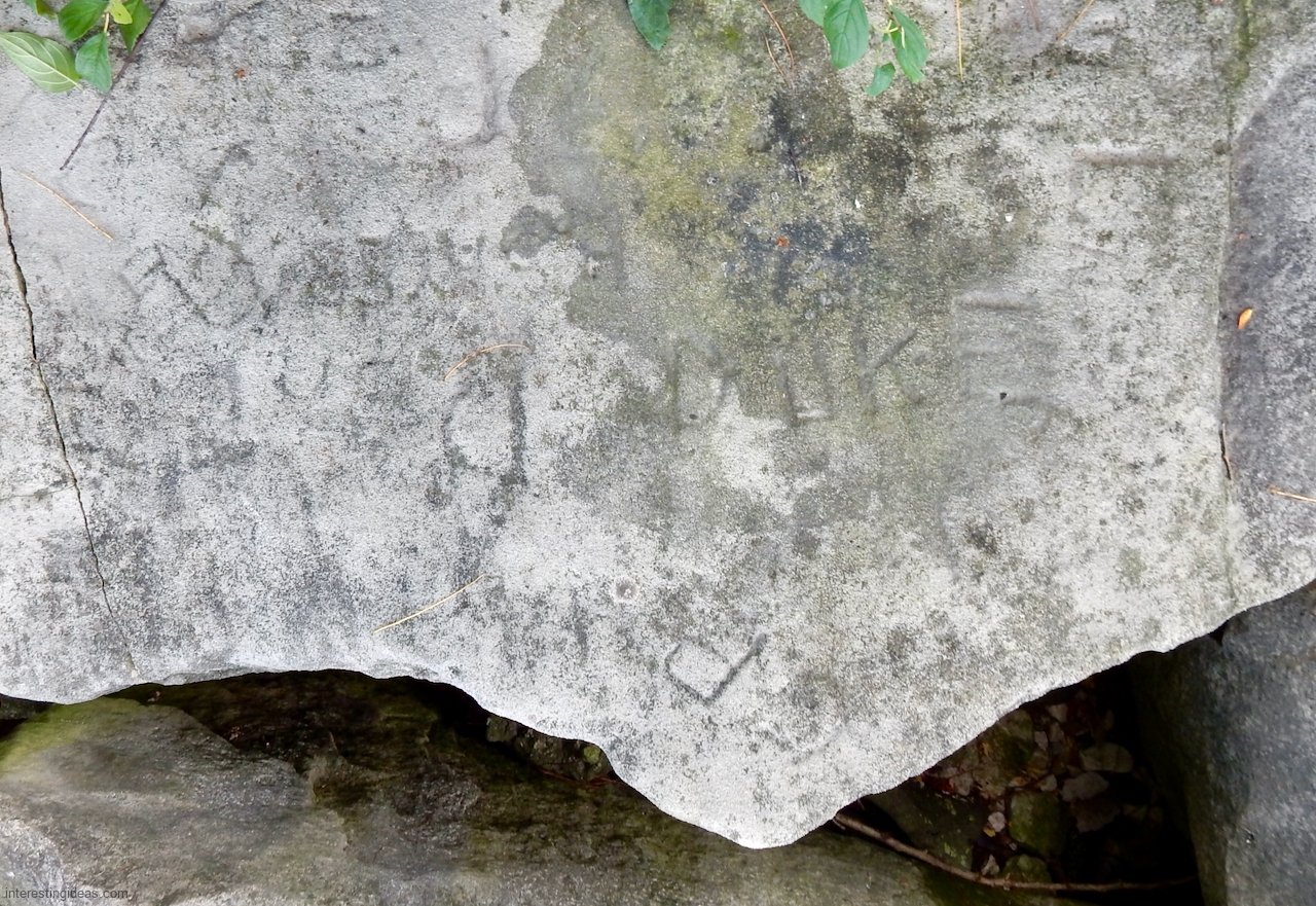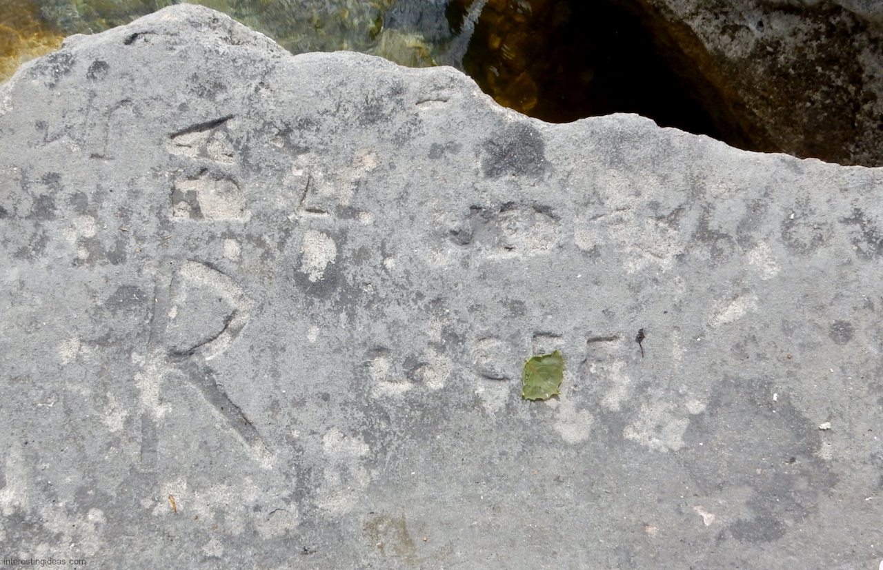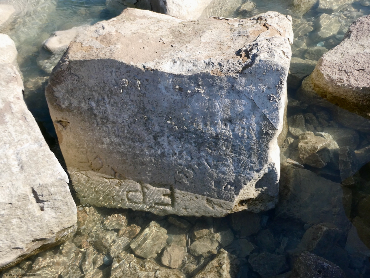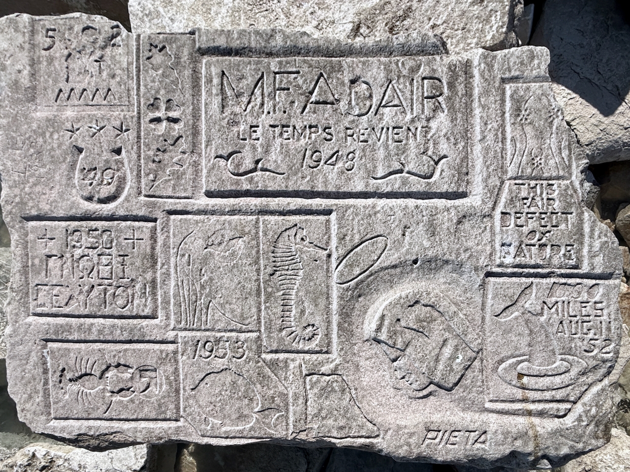 This spot, where carving began in the 1930s, includes one of the finest carved rocks along the lake, which I call the Peace Rock, as well as a compass beautifully rendered in stone. The compass, however, is on a rock that has already started sliding into the lake, and more are sure to follow absent some kind of human intervention.