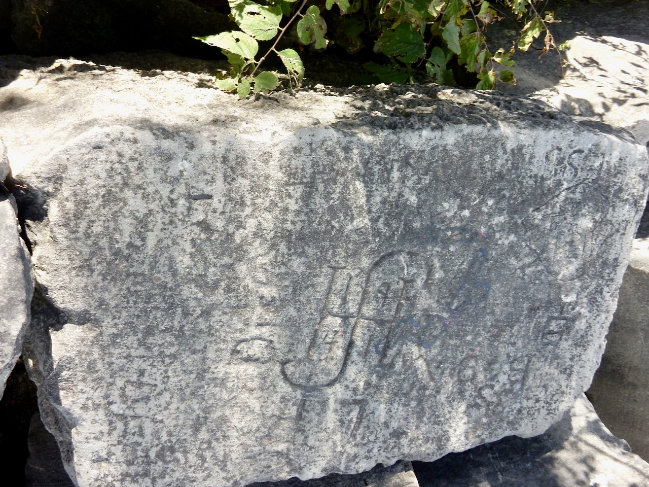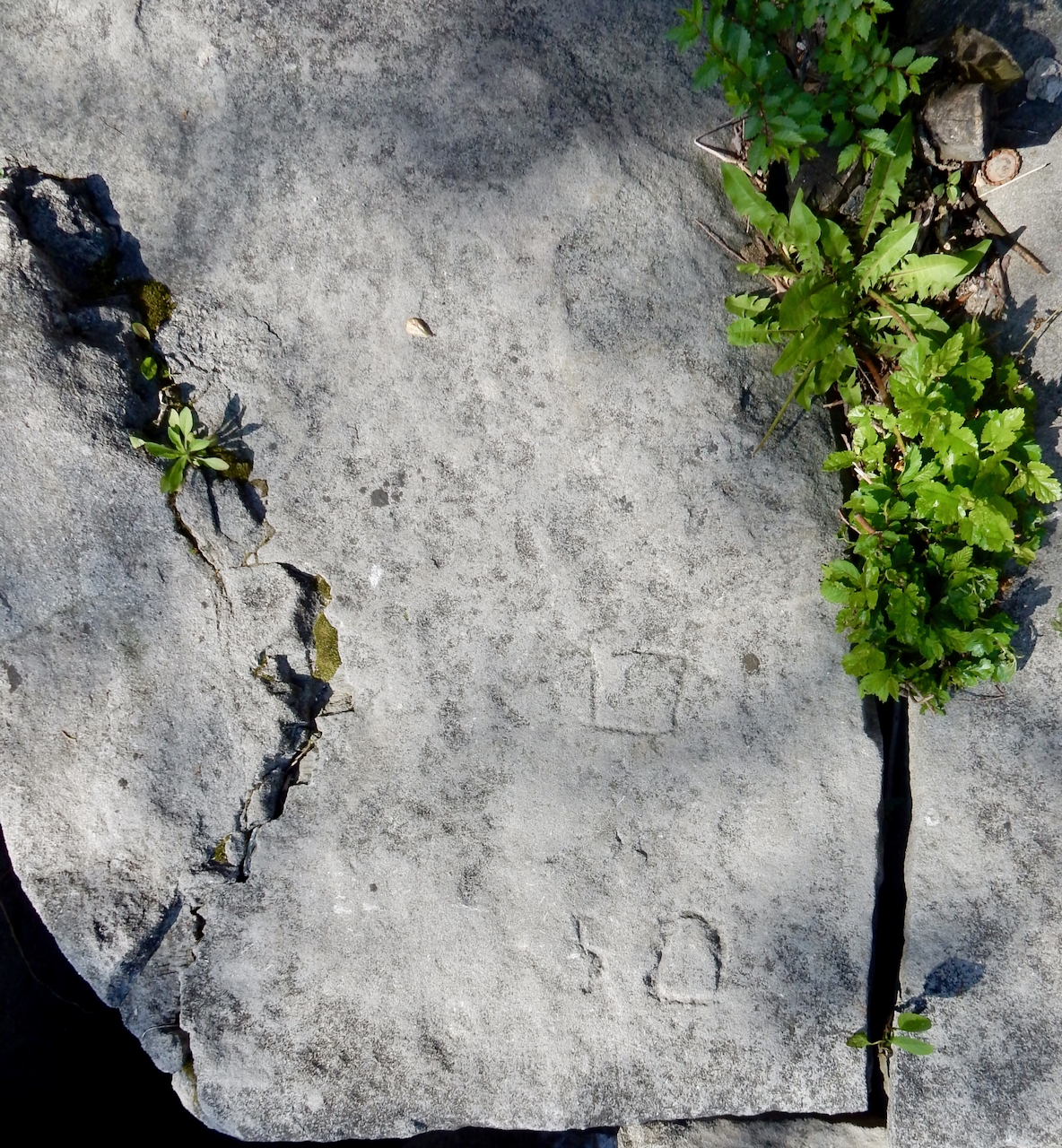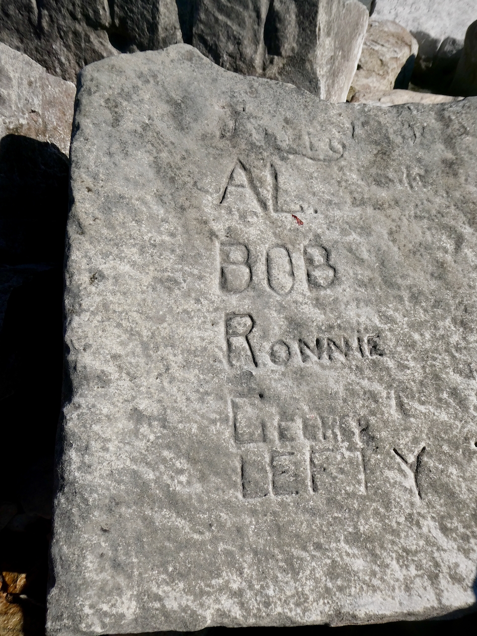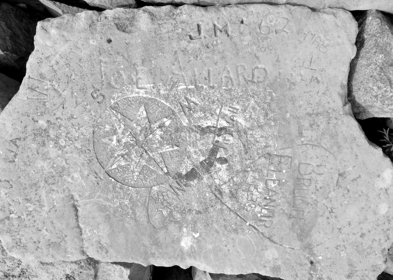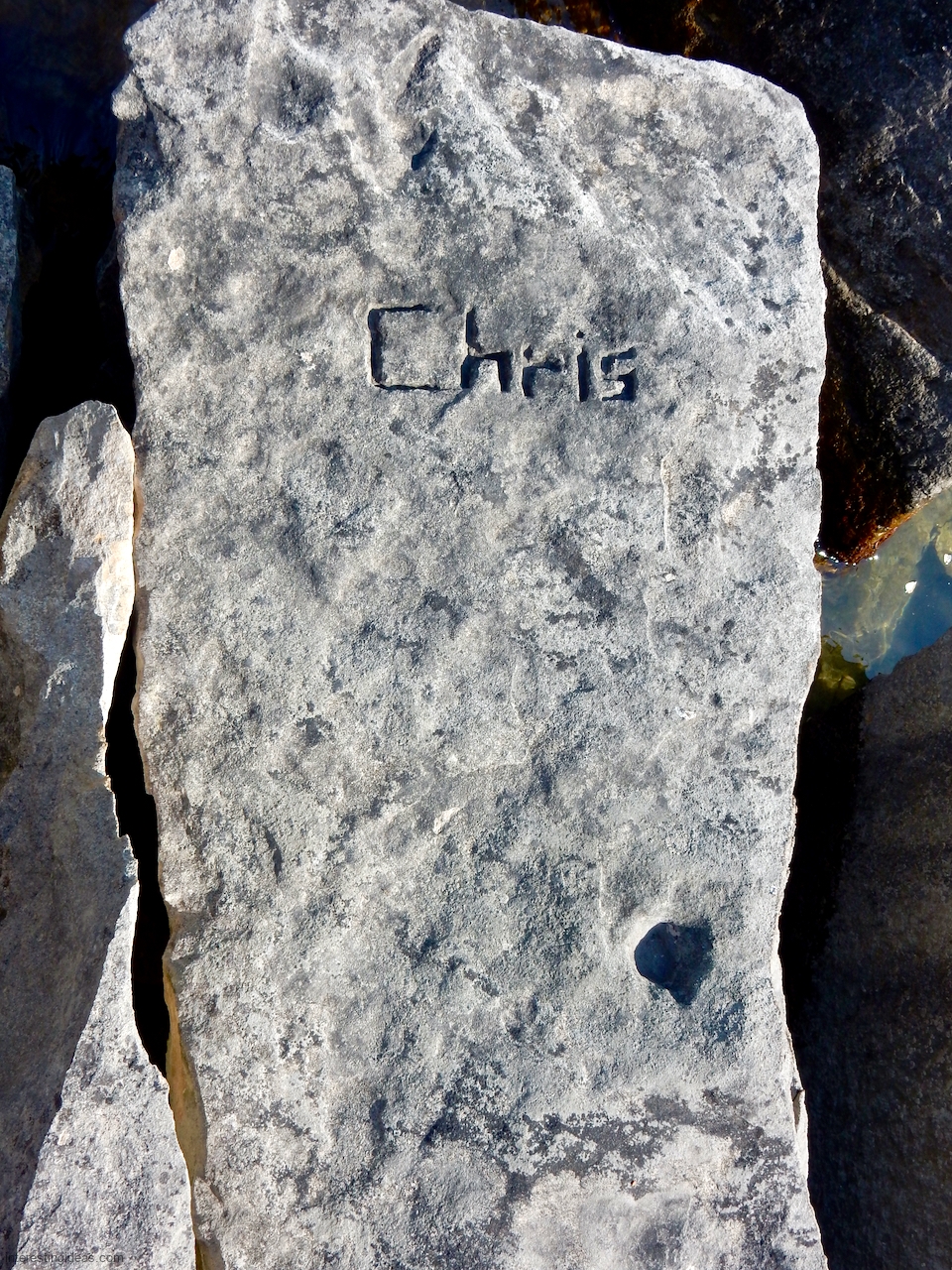 This spot, where carving began in the 1930s, includes one of the finest carved rocks along the lake, which I call the Peace Rock, as well as a compass beautifully rendered in stone. The compass, however, is on a rock that has already started sliding into the lake, and more are sure to follow absent some kind of human intervention.