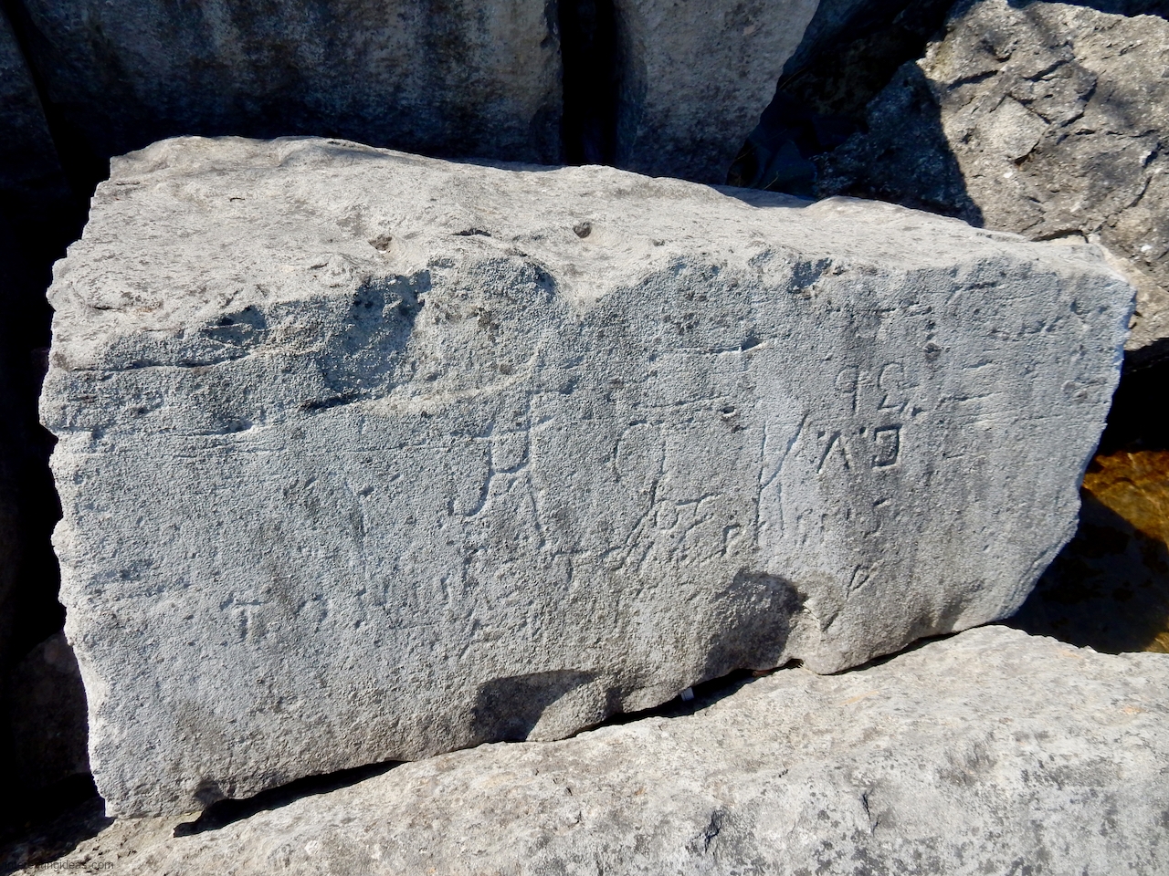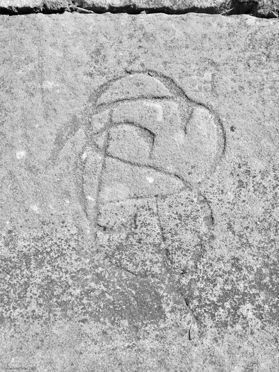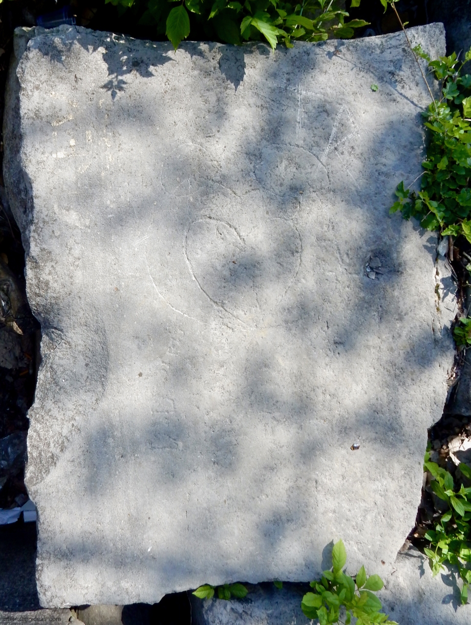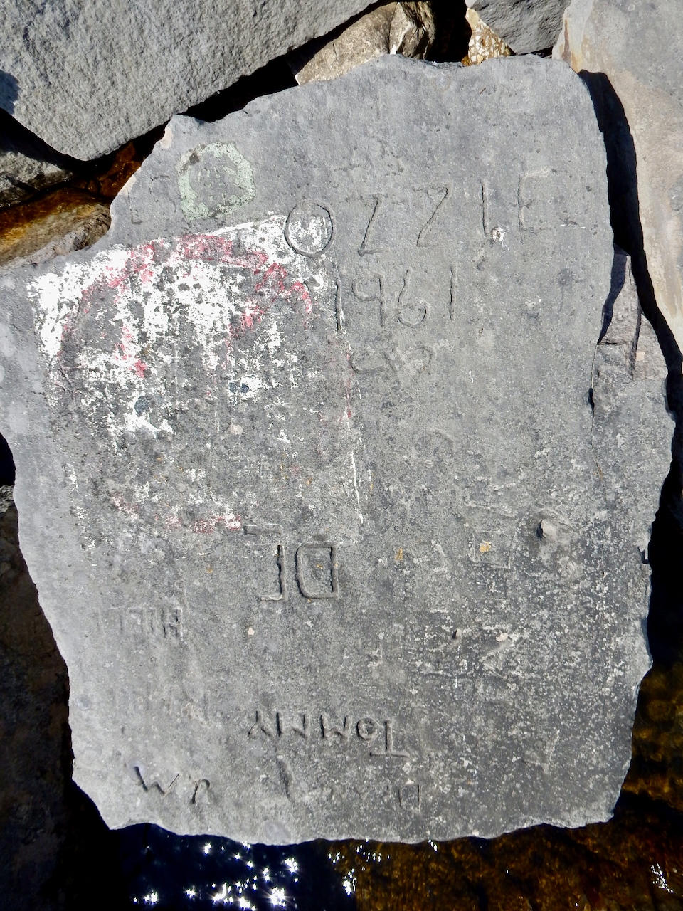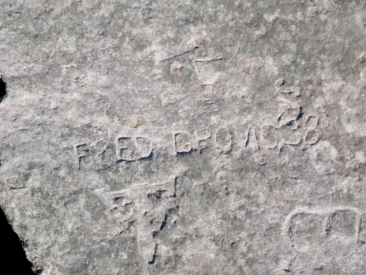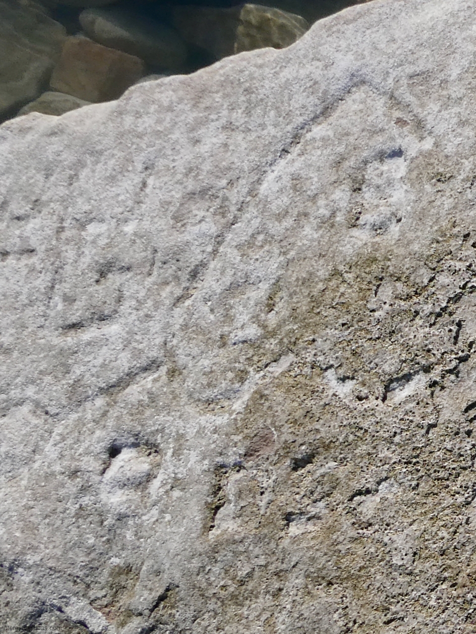 This spot, where carving began in the 1930s, includes one of the finest carved rocks along the lake, which I call the Peace Rock, as well as a compass beautifully rendered in stone. The compass, however, is on a rock that has already started sliding into the lake, and more are sure to follow absent some kind of human intervention.