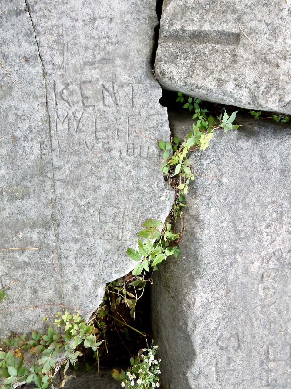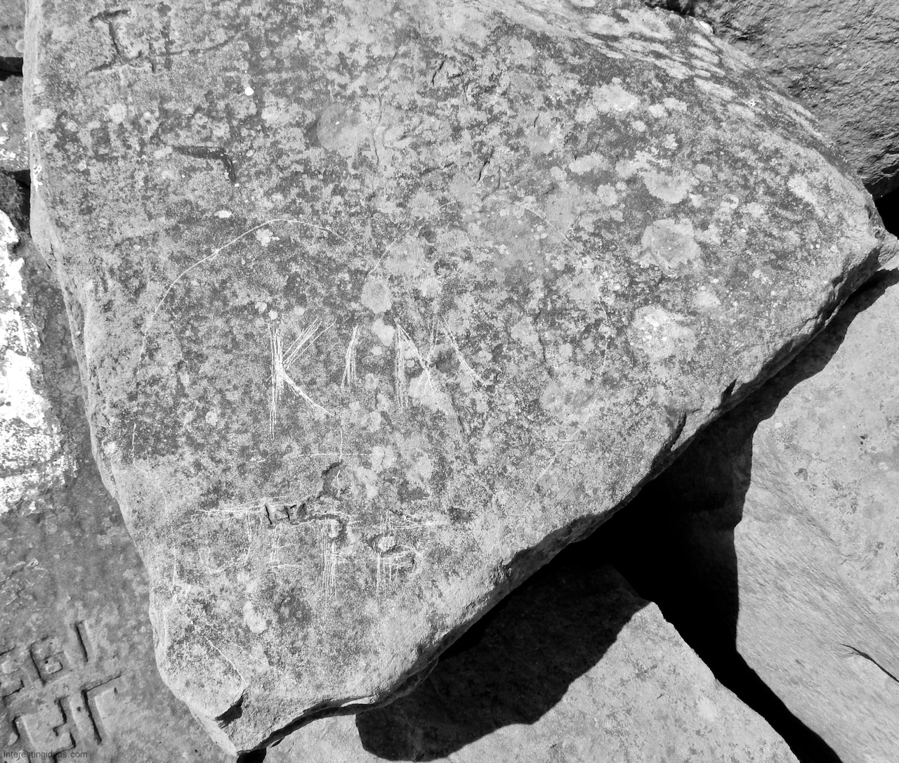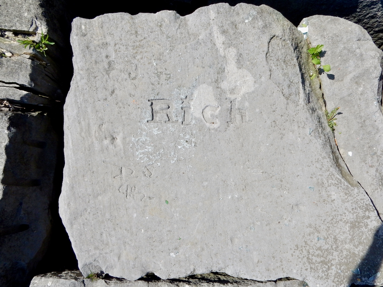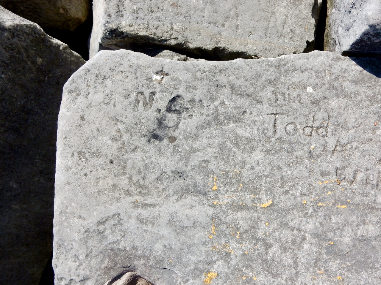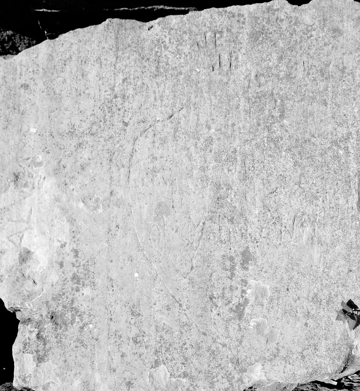 This spot, where carving began in the 1930s, includes one of the finest carved rocks along the lake, which I call the Peace Rock, as well as a compass beautifully rendered in stone. The compass, however, is on a rock that has already started sliding into the lake, and more are sure to follow absent some kind of human intervention.