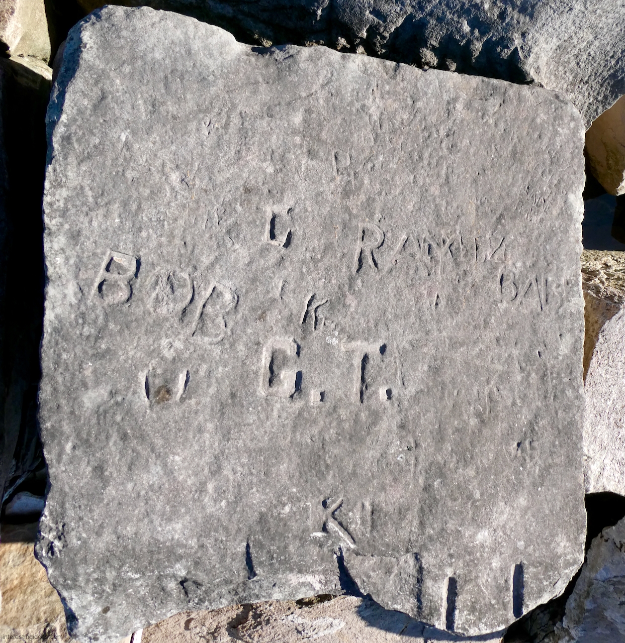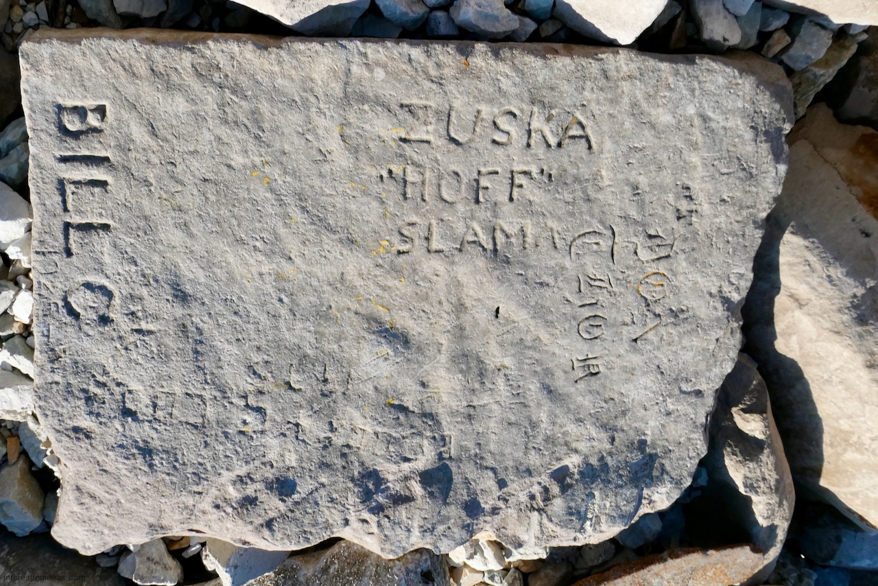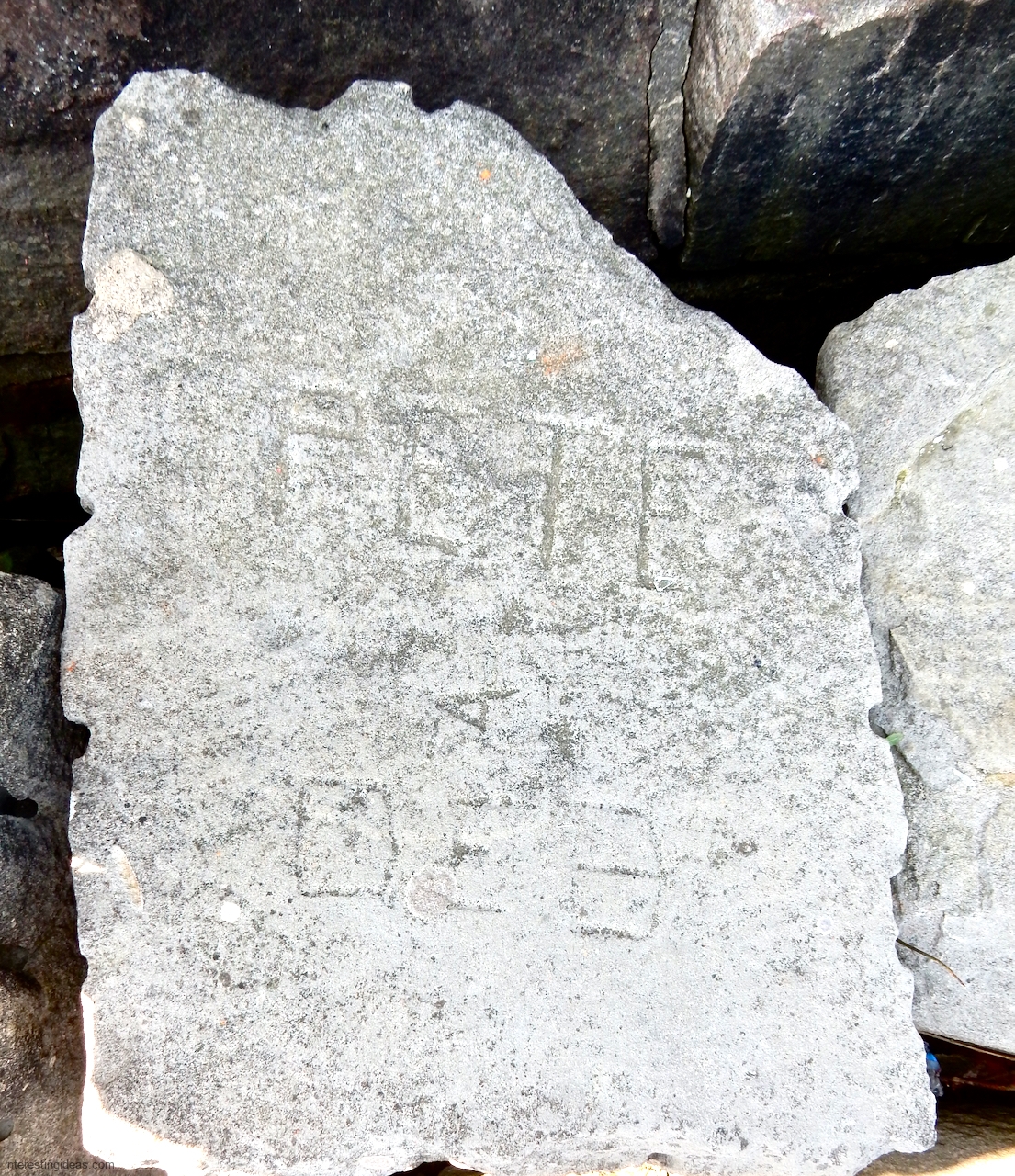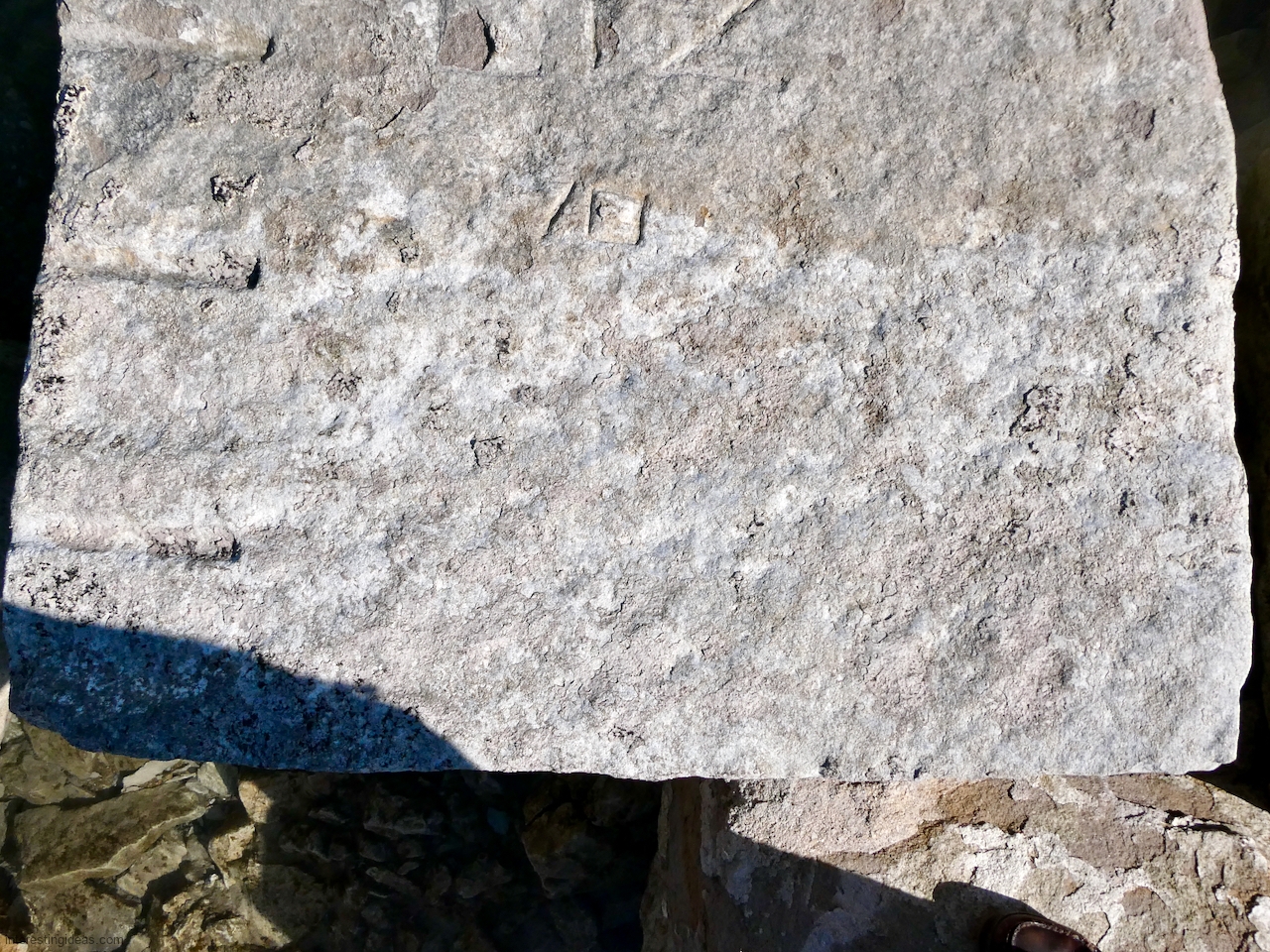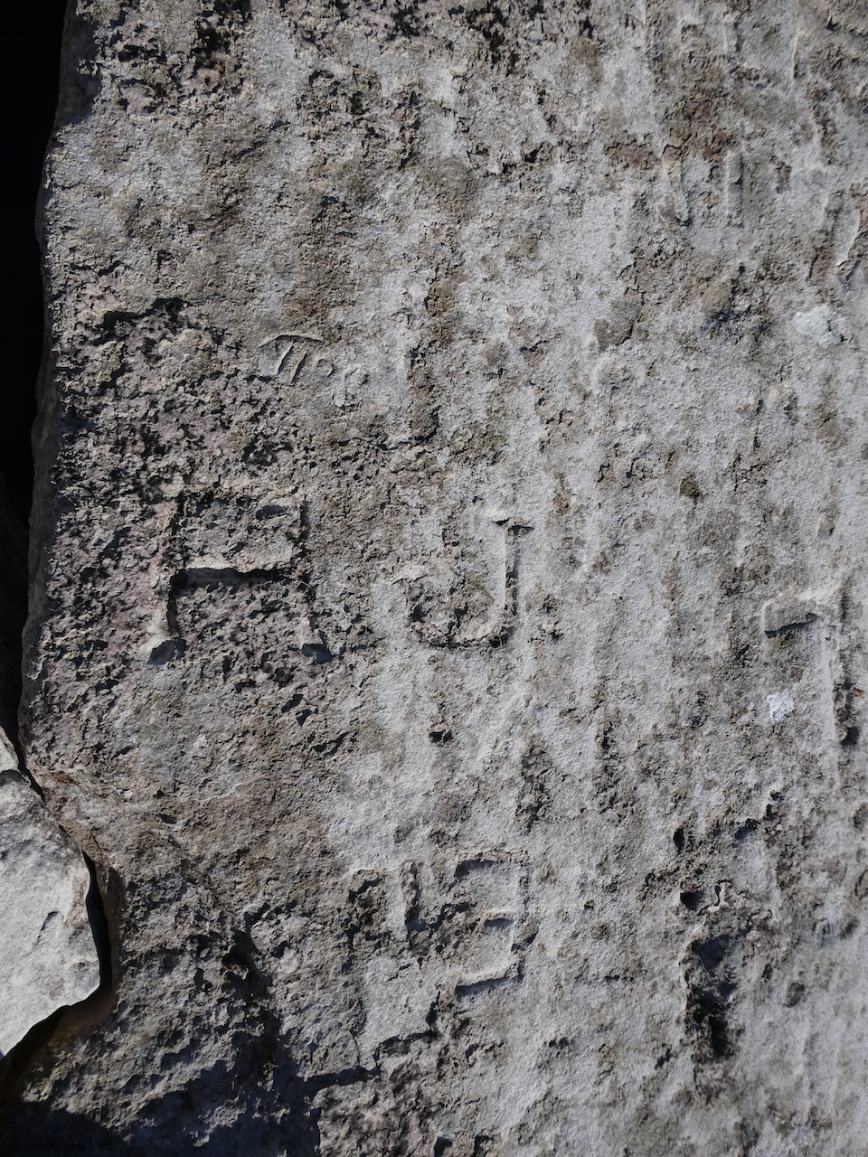 This spot, where carving began in the 1930s, includes one of the finest carved rocks along the lake, which I call the Peace Rock, as well as a compass beautifully rendered in stone. The compass, however, is on a rock that has already started sliding into the lake, and more are sure to follow absent some kind of human intervention.
