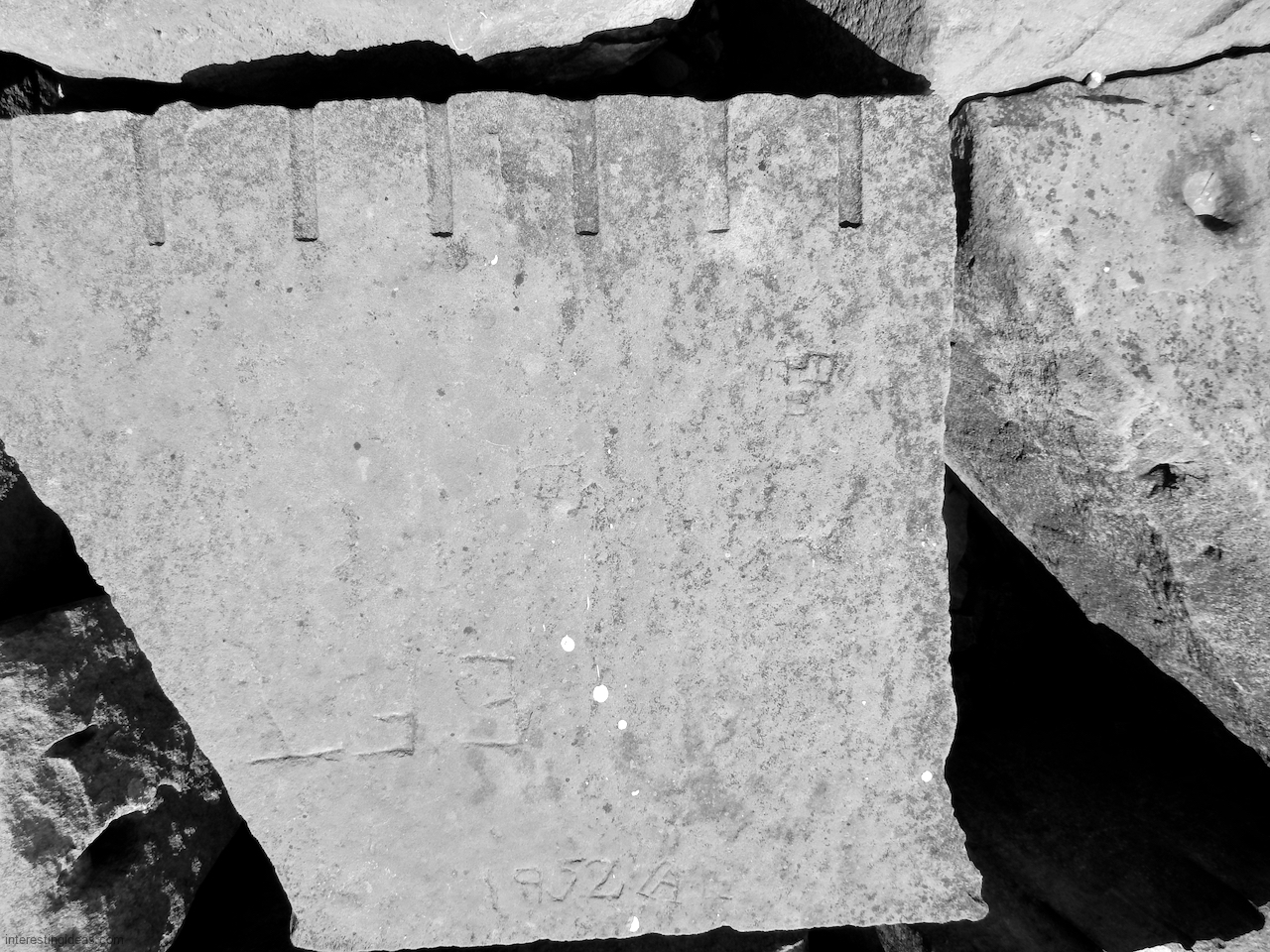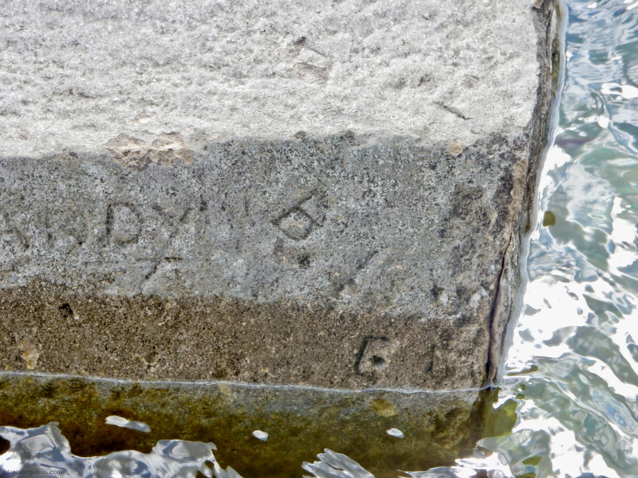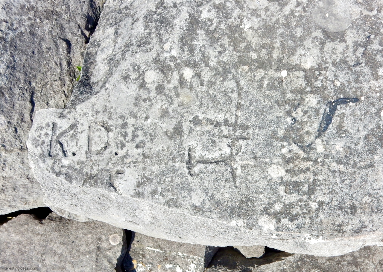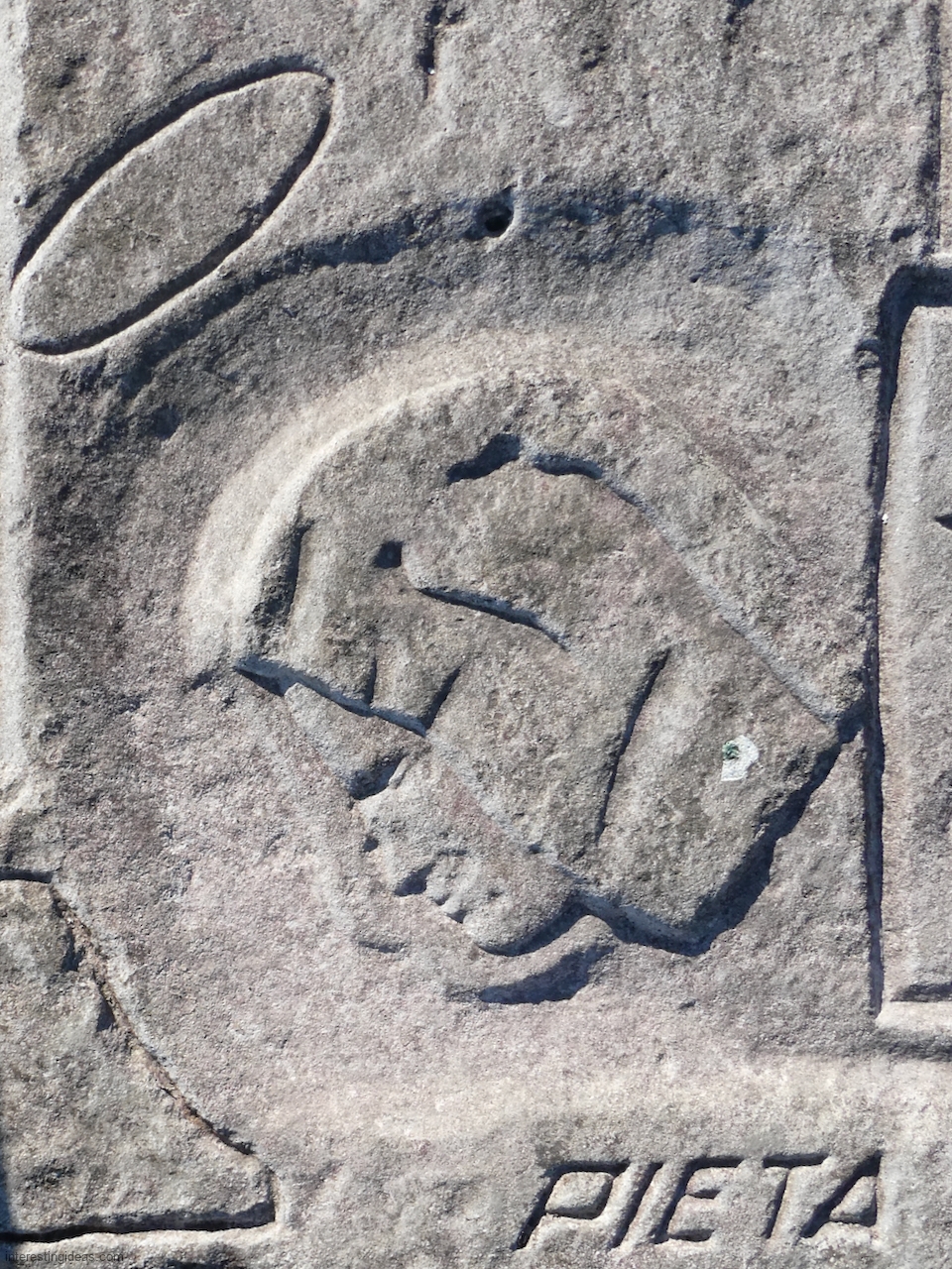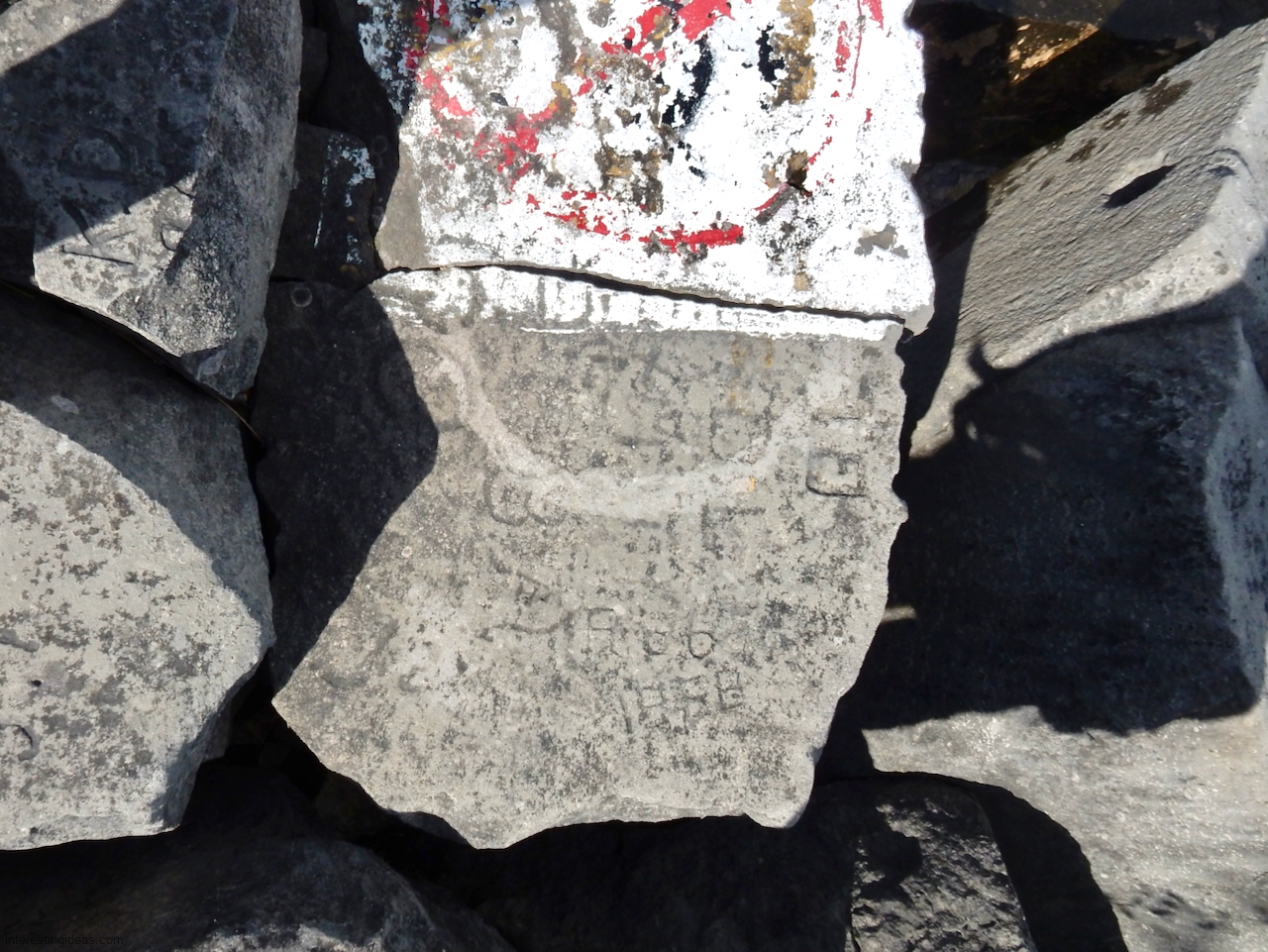 Meanwhile, just a bit south of La Rabida hospital lies one of the only sections of natural lakeshore in the city. Just on the edge of that bit of bedrock (and sometimes entirely offshore depending on lake levels) is a line of protective limestone blocks that host a number of lovely carvings, including the most elaborate one of all. That’s a carving with 12 separate panels created in the late 1940s and early 1950s and featuring a number of cryptic messages and figures. (You’ll have to scroll most of the way down the gallery to see that one.)