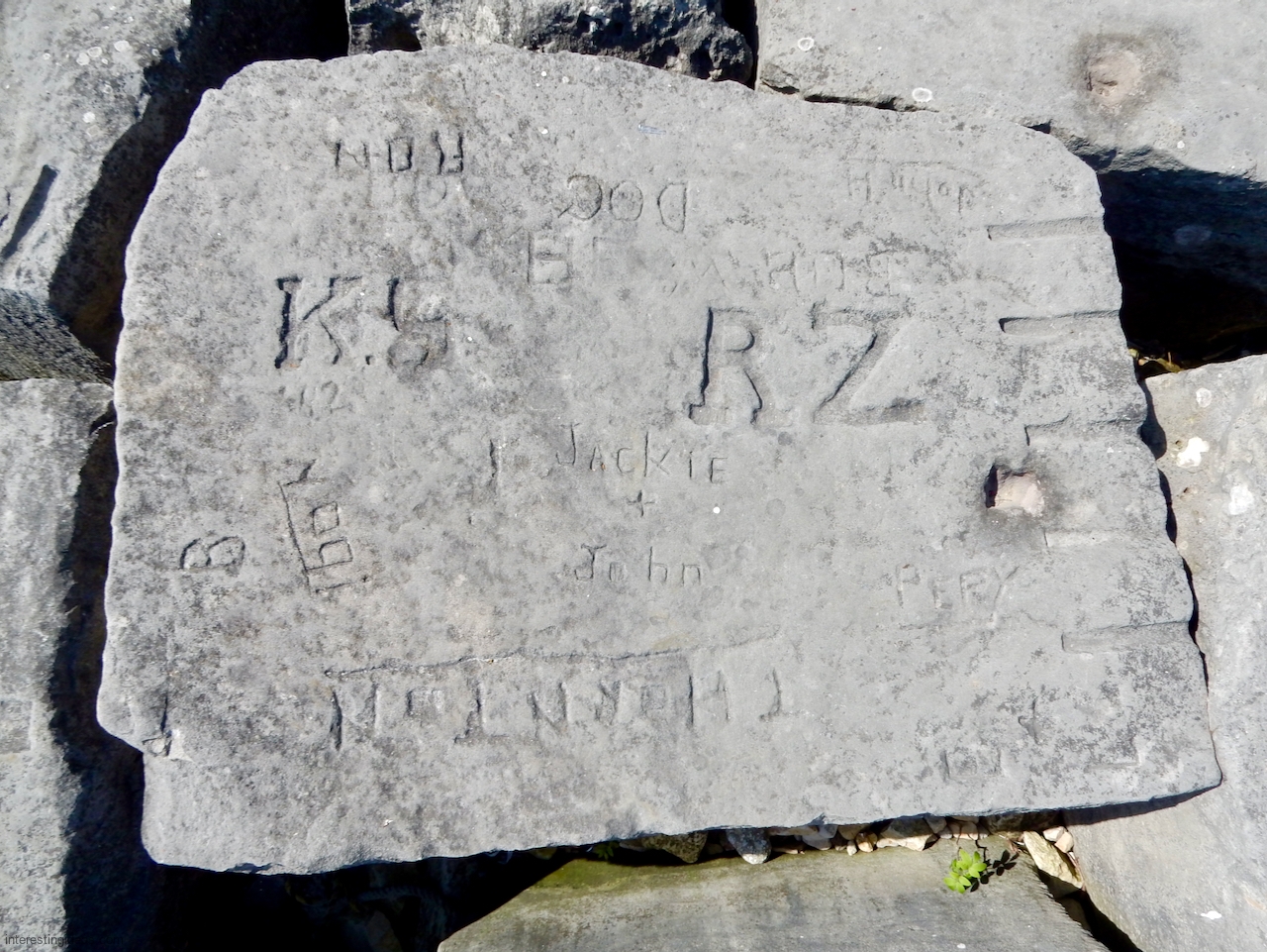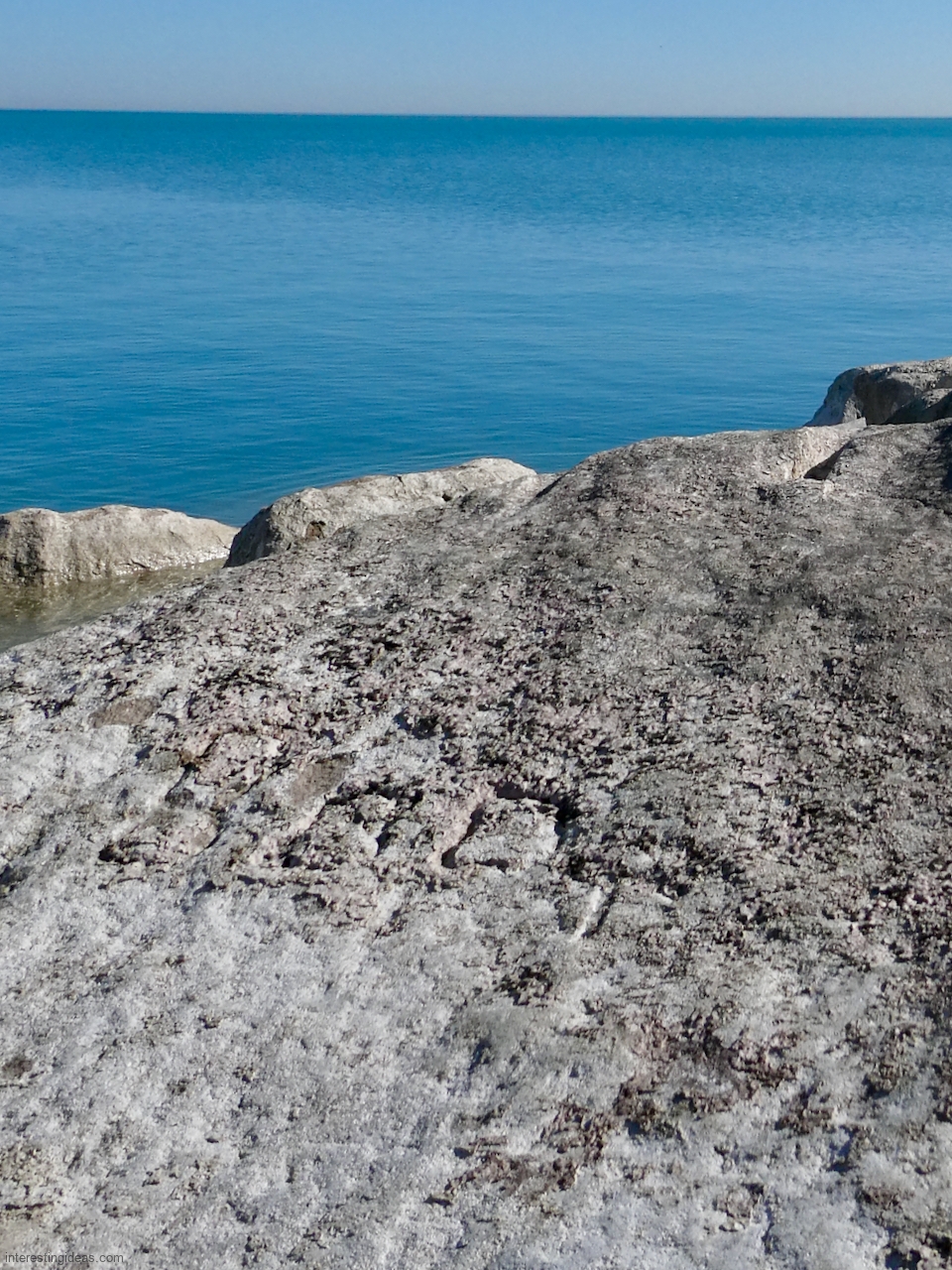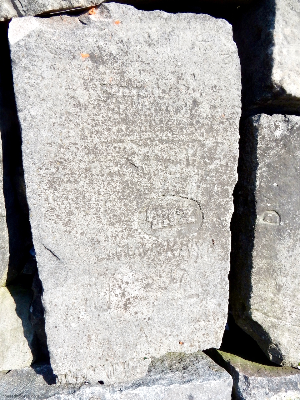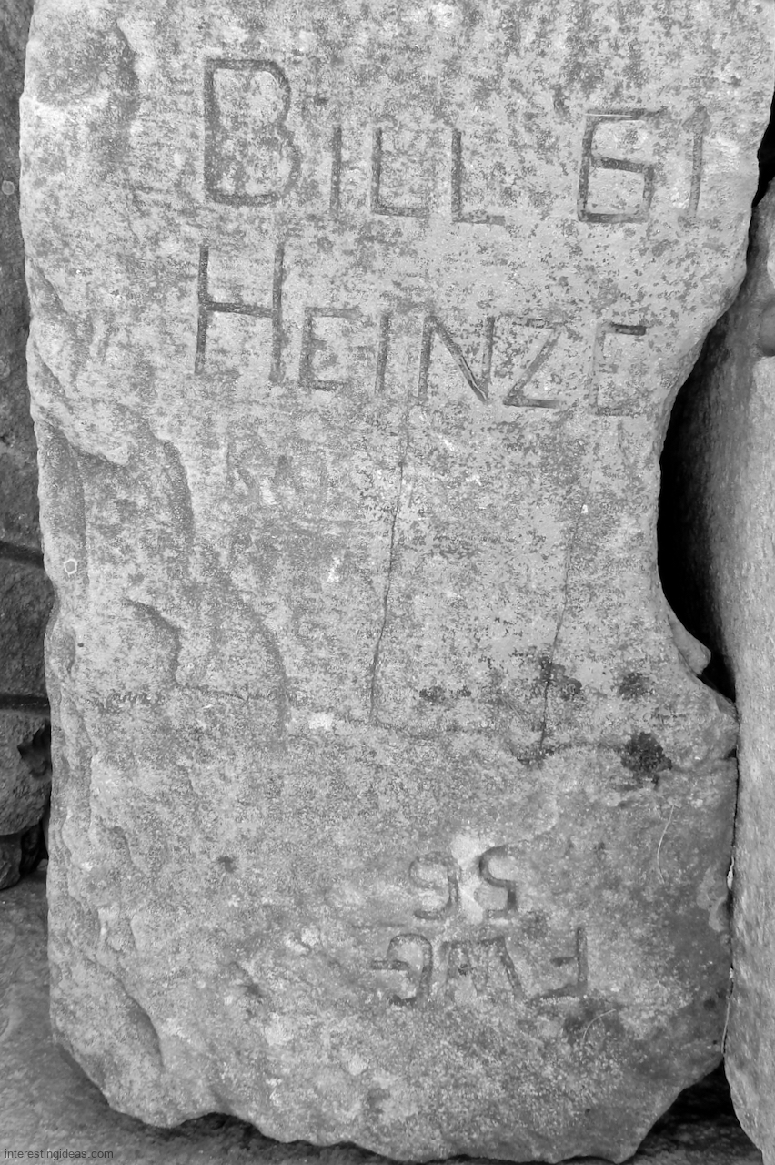 Meanwhile, just a bit south of La Rabida hospital lies one of the only sections of natural lakeshore in the city. Just on the edge of that bit of bedrock (and sometimes entirely offshore depending on lake levels) is a line of protective limestone blocks that host a number of lovely carvings, including the most elaborate one of all. That’s a carving with 12 separate panels created in the late 1940s and early 1950s and featuring a number of cryptic messages and figures. (You’ll have to scroll most of the way down the gallery to see that one.)