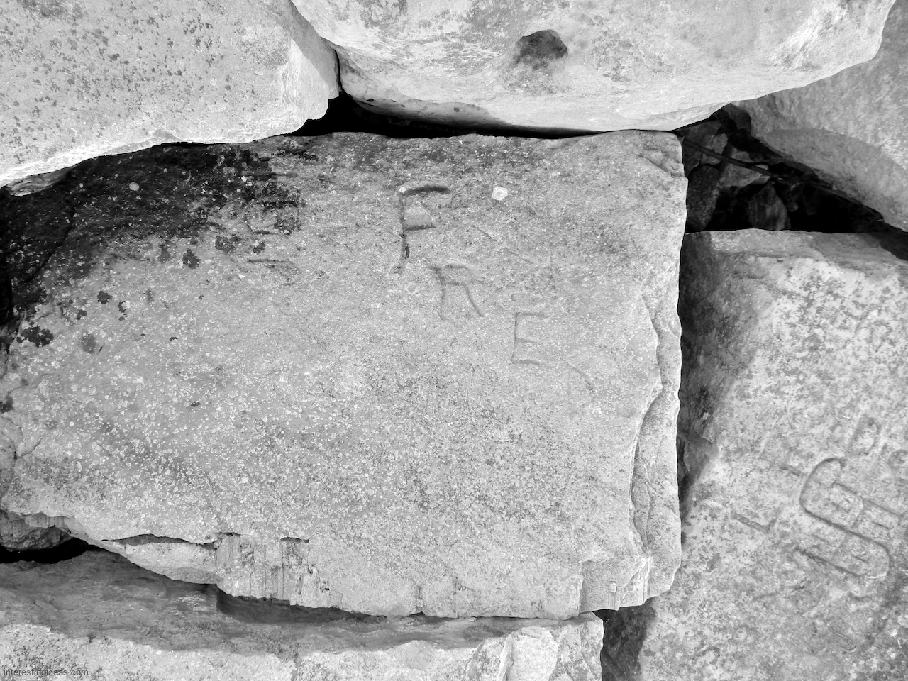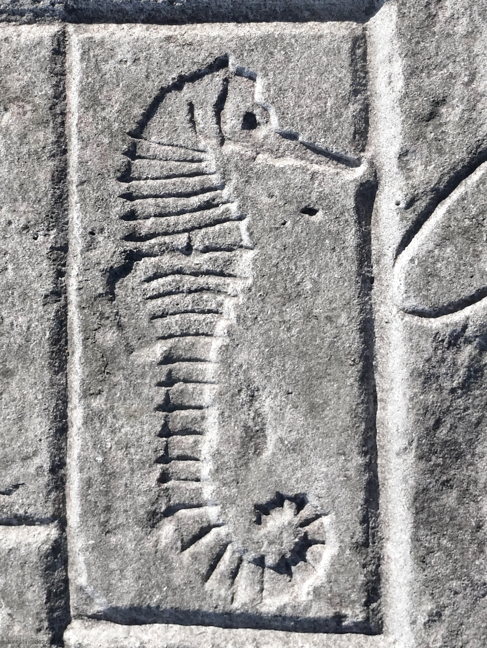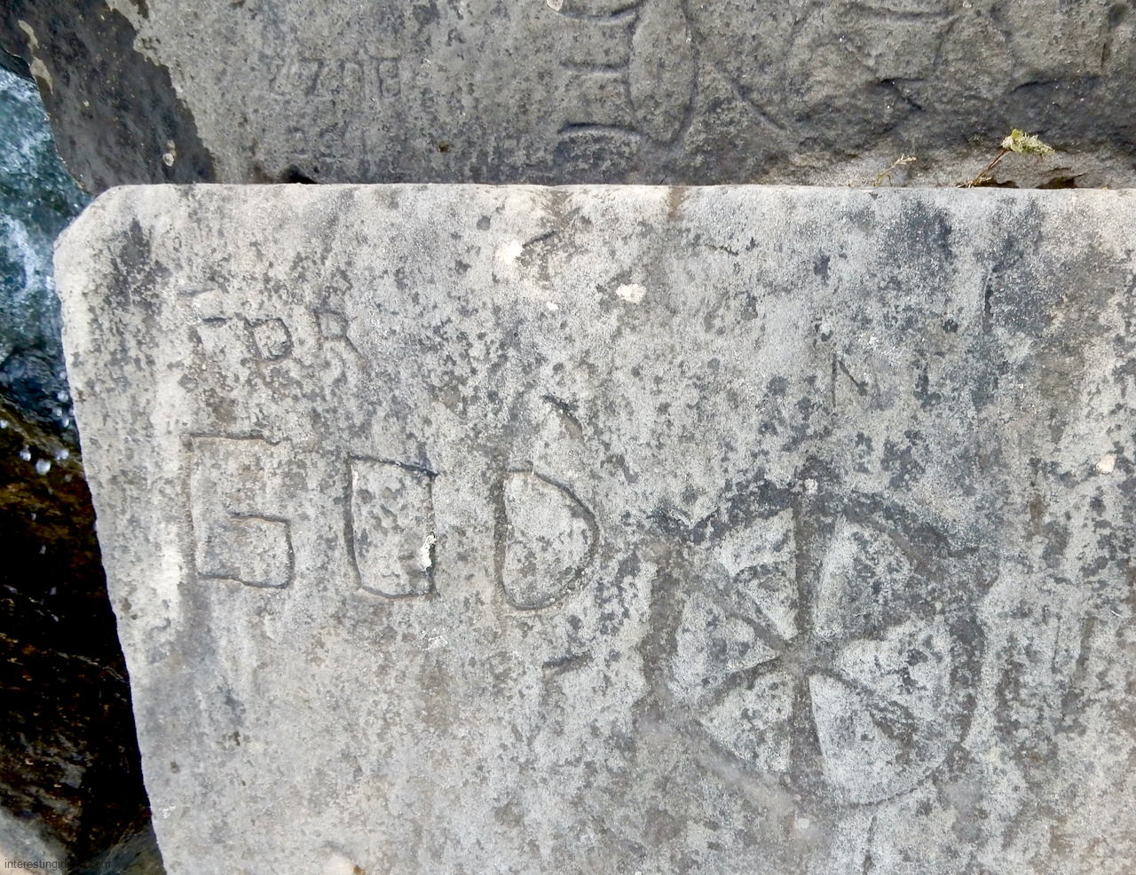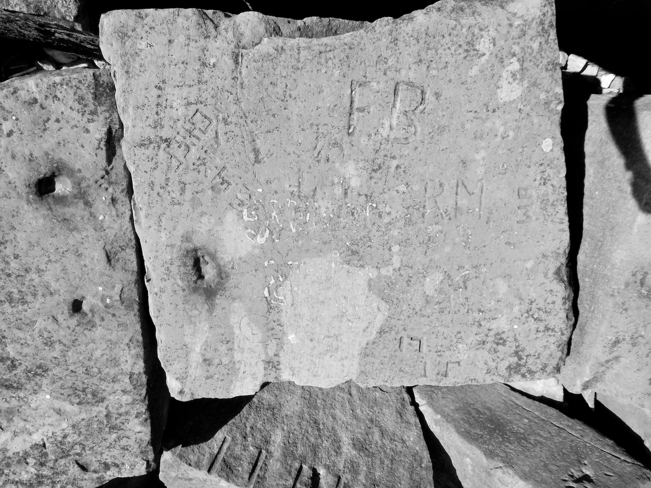 Meanwhile, just a bit south of La Rabida hospital lies one of the only sections of natural lakeshore in the city. Just on the edge of that bit of bedrock (and sometimes entirely offshore depending on lake levels) is a line of protective limestone blocks that host a number of lovely carvings, including the most elaborate one of all. That’s a carving with 12 separate panels created in the late 1940s and early 1950s and featuring a number of cryptic messages and figures. (You’ll have to scroll most of the way down the gallery to see that one.)