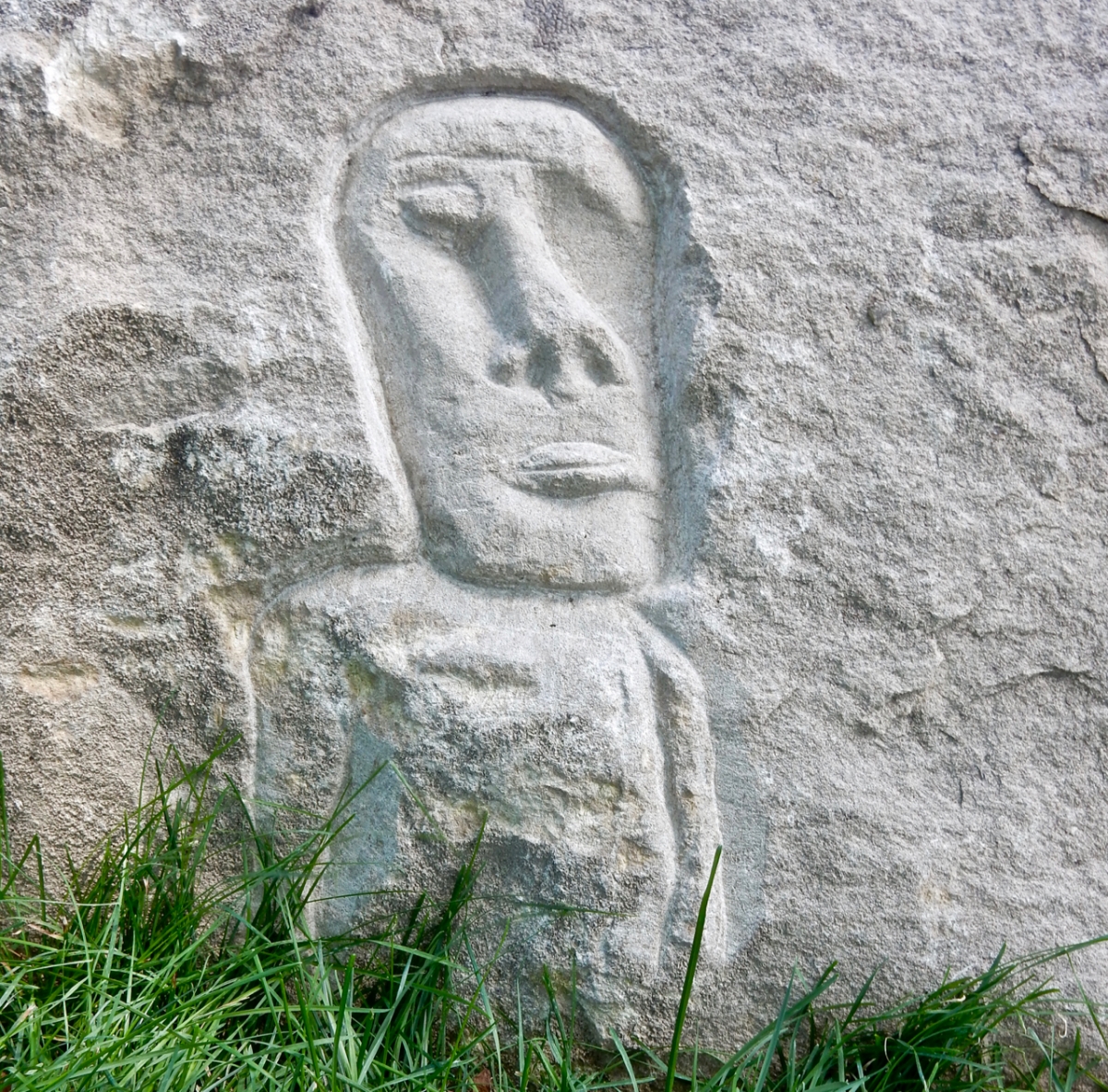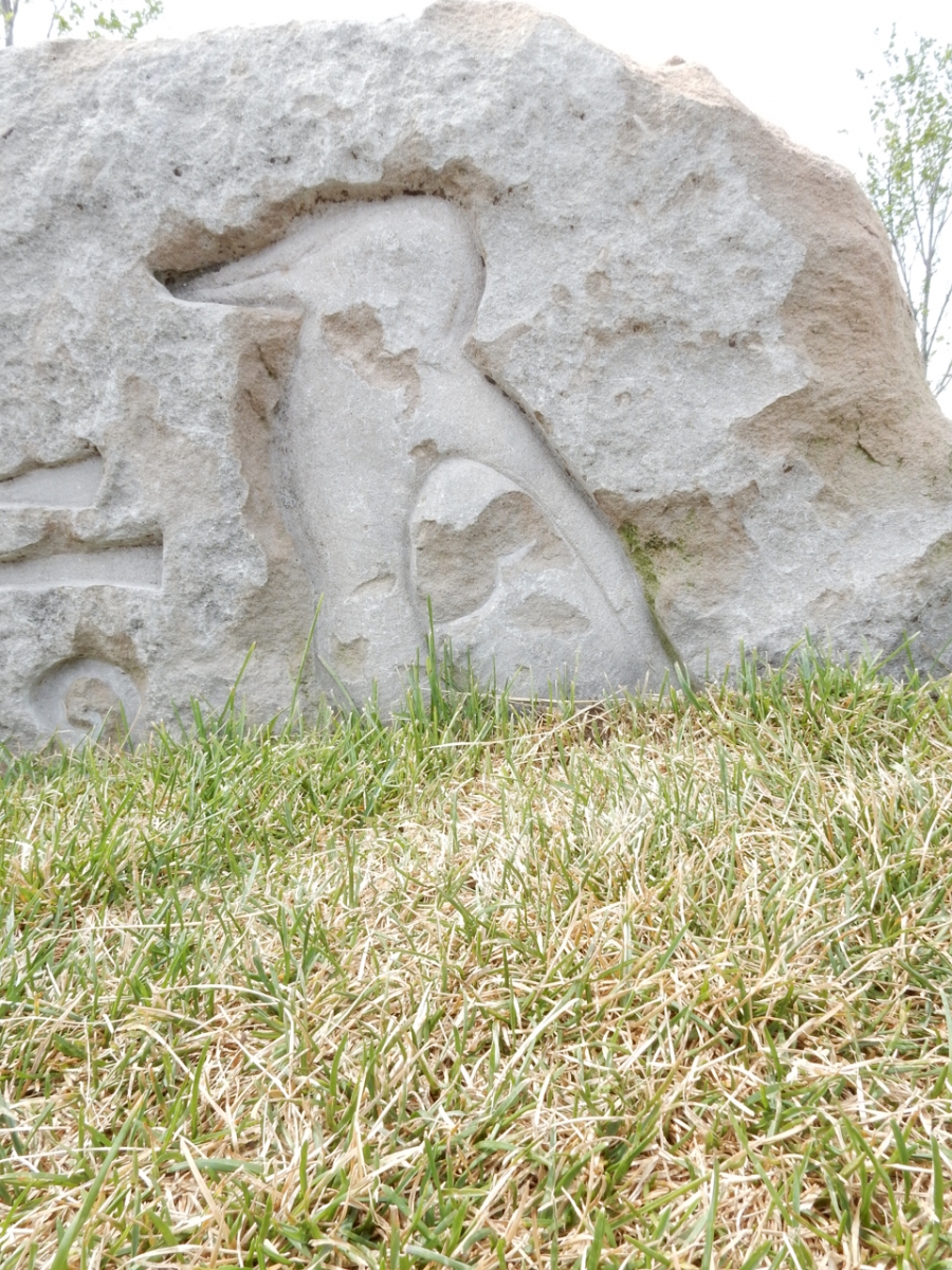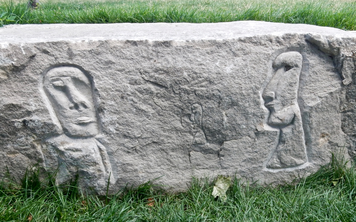 For those who follow such things, a closer look at this “Easter Island” carving revealed a signature and date: RS -05- (see the bottom of the photo). It is very cool that someone was making carvings of this complexity in 2005 — certainly the most recent I’ve seen. Where this rock originally sat is unknown, but now it’s near Fullerton Avenue.