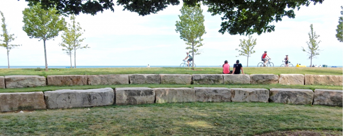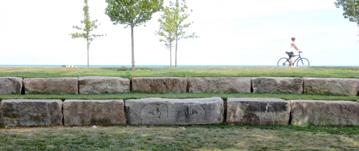 Ten years of lakeshore projects in Chicago have destroyed scores of vernacular stone carvings, but the most recent project has uncovered some fantastic examples. These are installed on the stretch of new lakeshore at Fullerton Avenue. (See my collection of more than a hundred other lakeshore carvings here.)