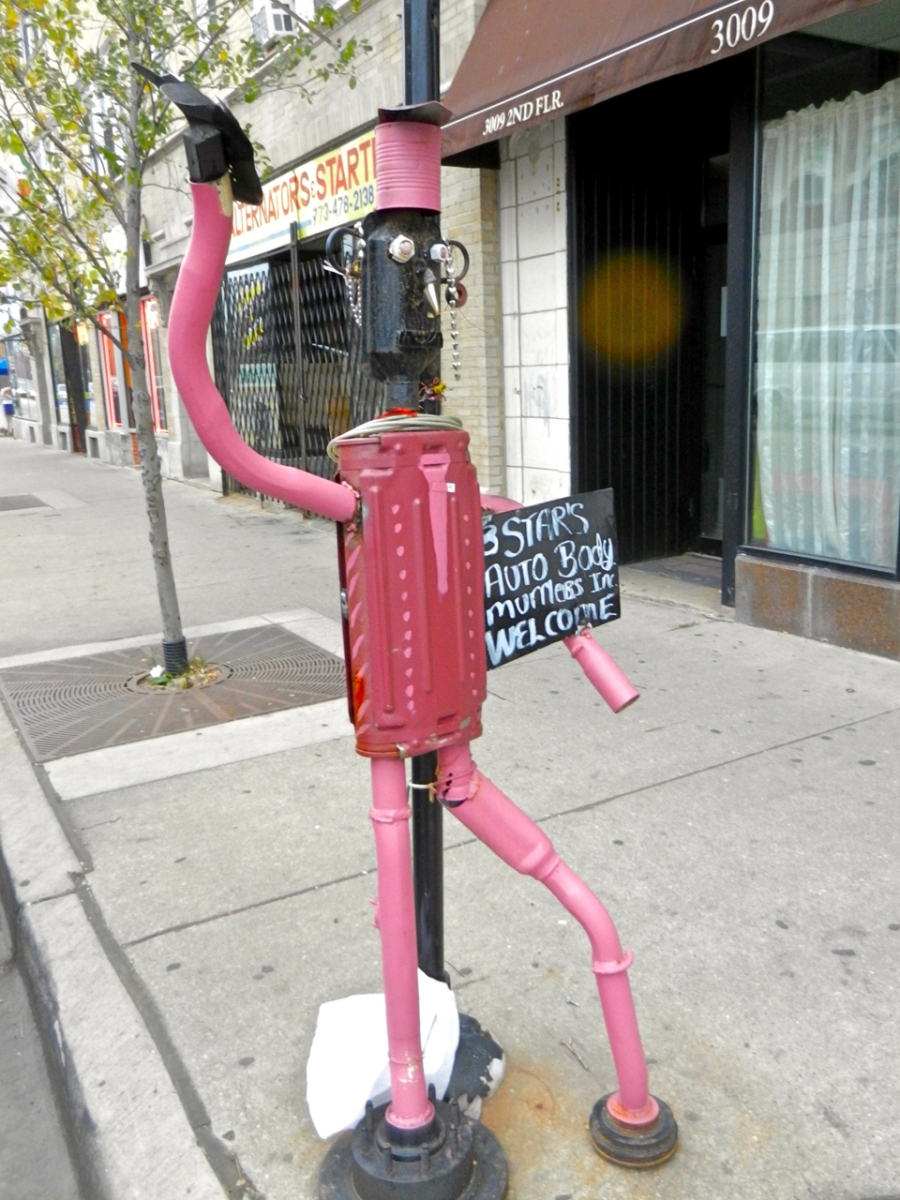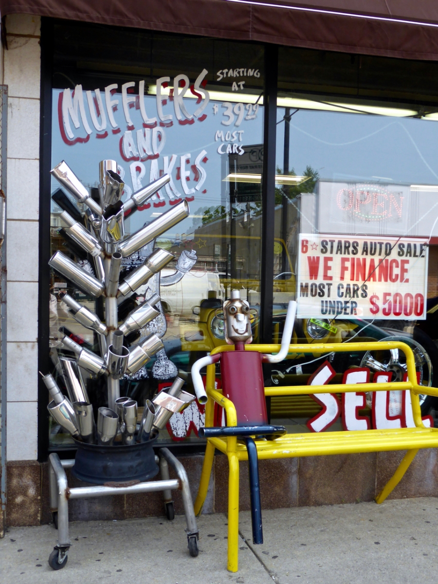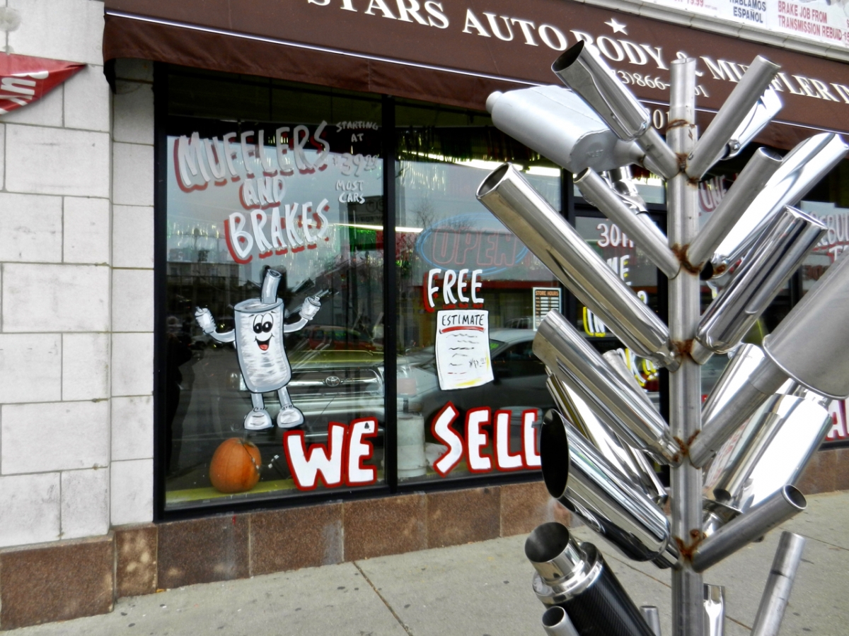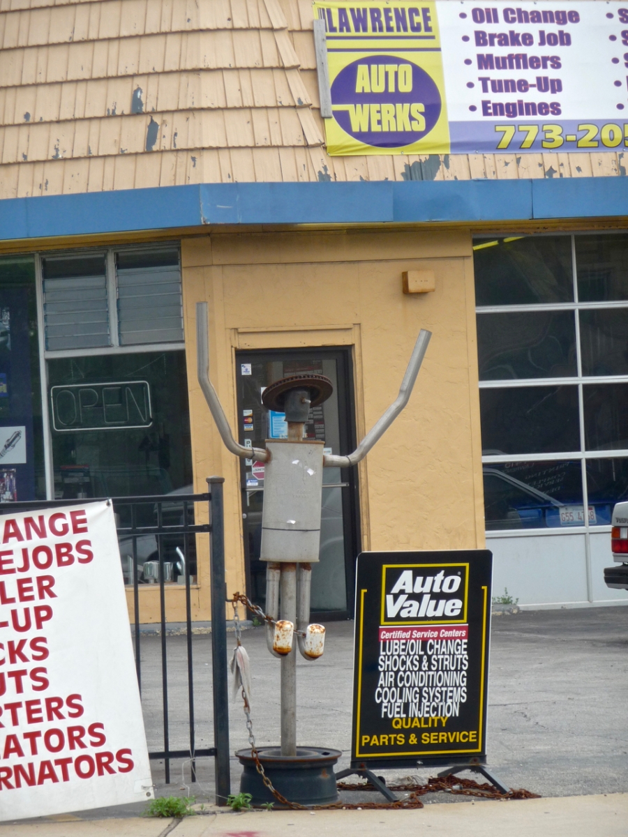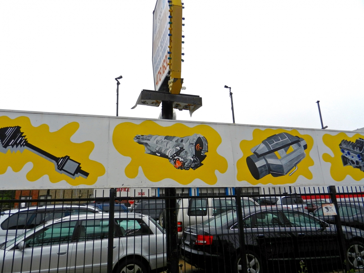 Lawrence Avenue is a paradise for muffler men and auto parts, not to mention food images. Click here for an earlier installment of the Lawrence Avenue gallery of vernacular art.