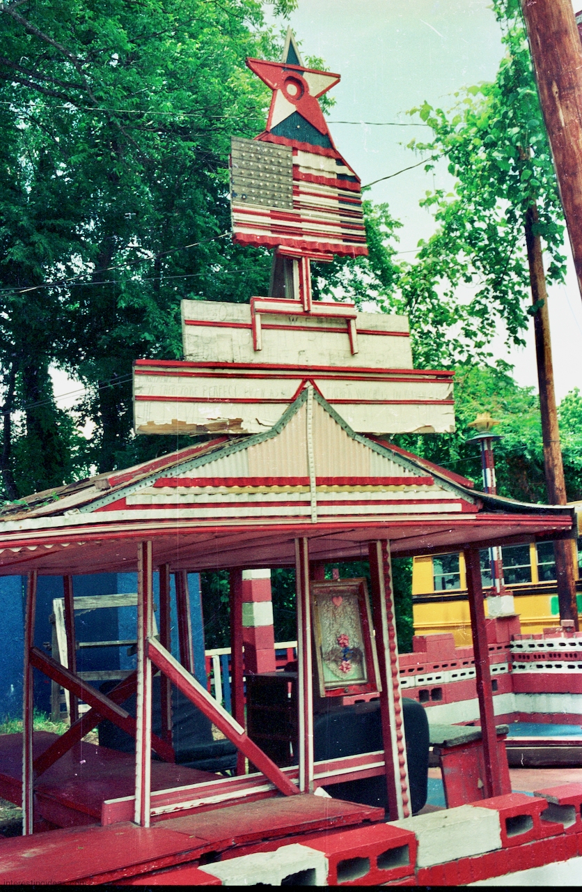 These pictures are from 1995. The site decayed after the couple’s passing, but rehab is happening under the auspices of the Mississippi Folk Art Foundation and its director, Suzi Altman. You can learn more and see many more pictures at the Foundation’s website. Please consider a donation to support the effort.