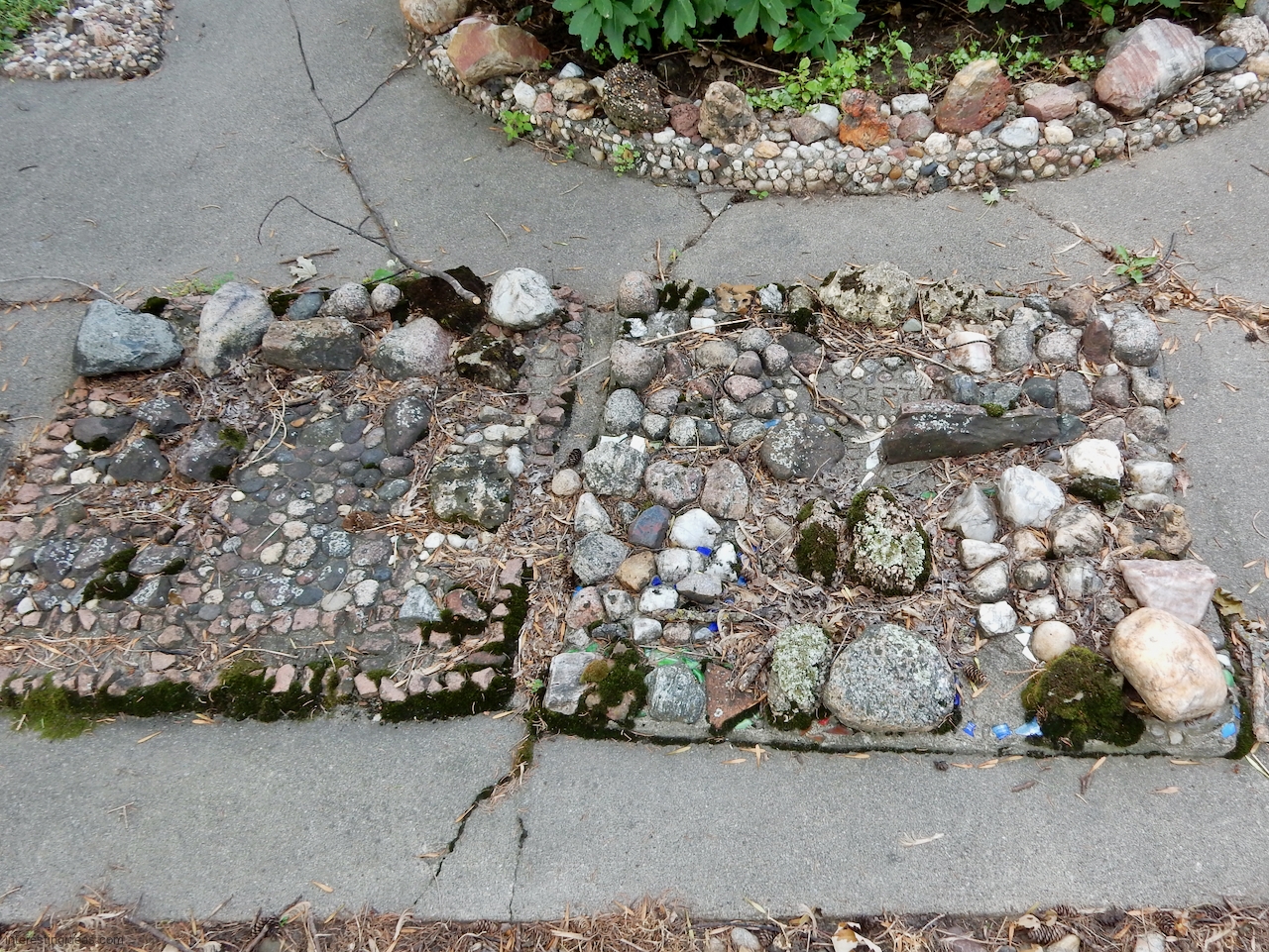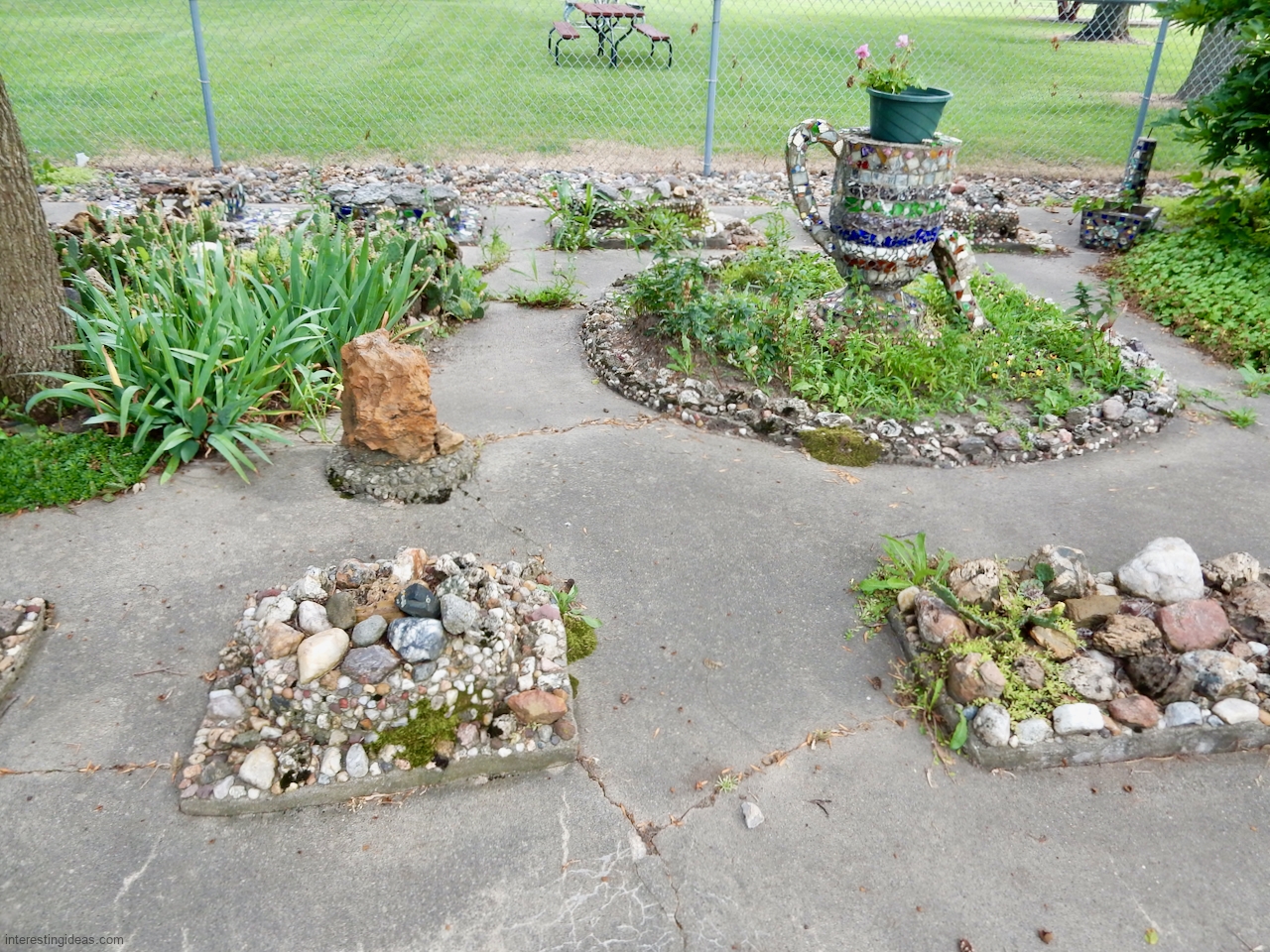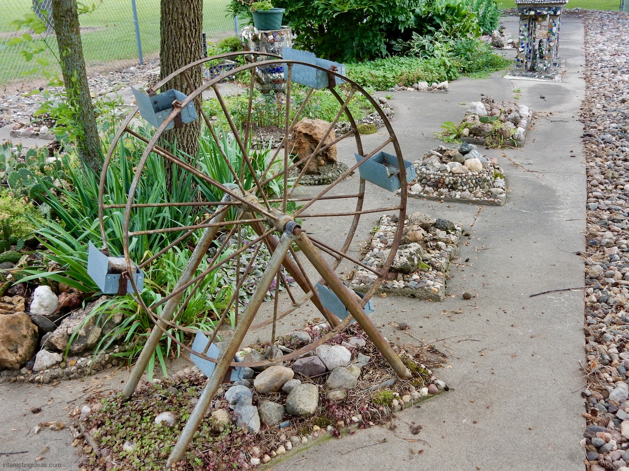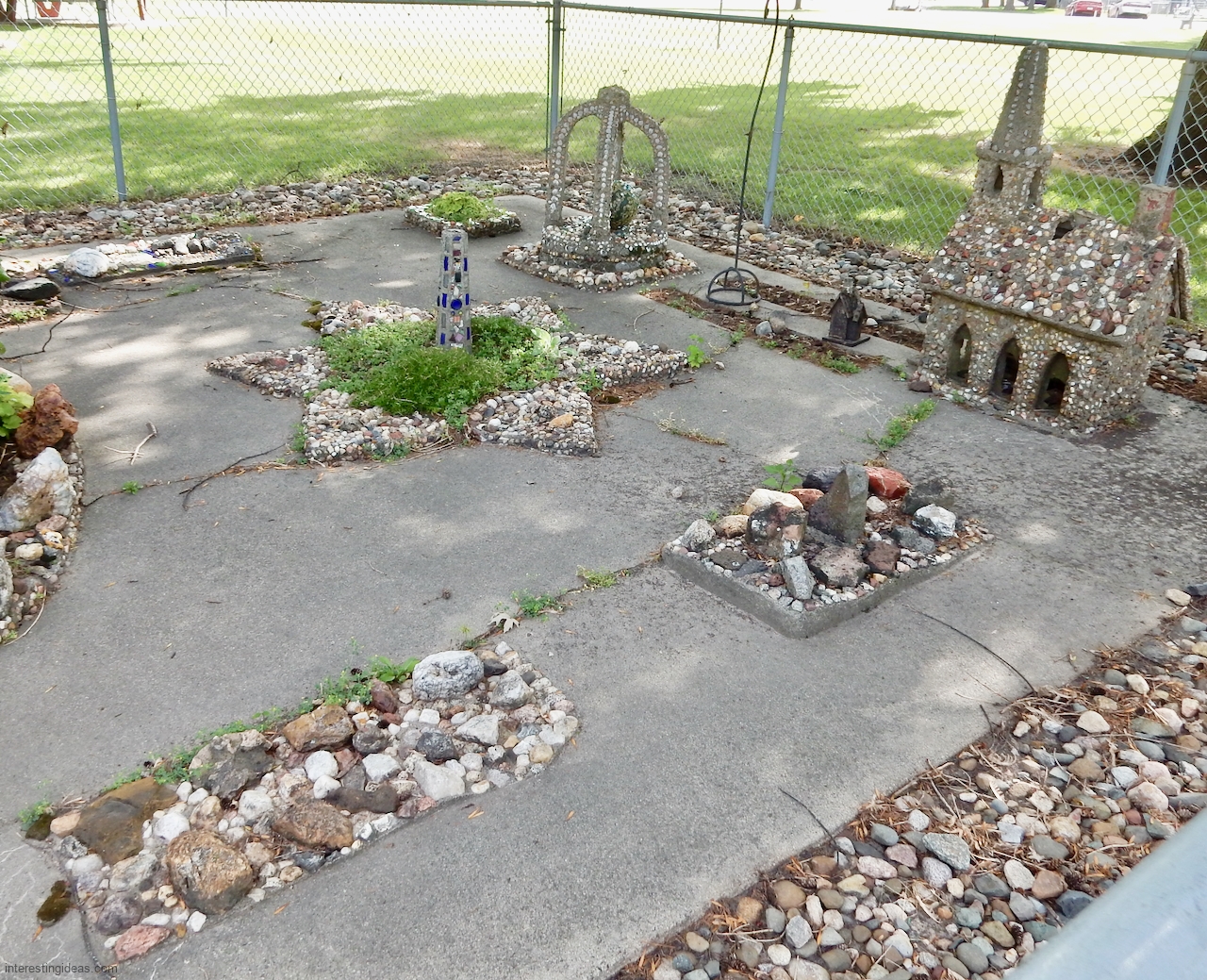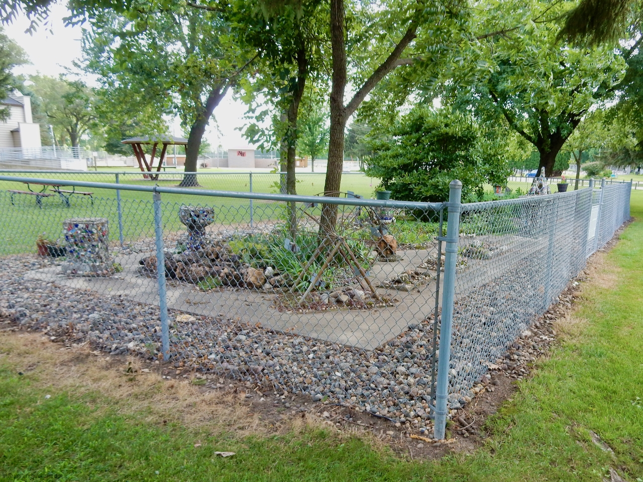 The Martha Timm Rock Garden is fenced off in New Hampton, Iowa’s Mikkelson Park, making photography a challenge but visiting easy. You can just walk up any time and look.