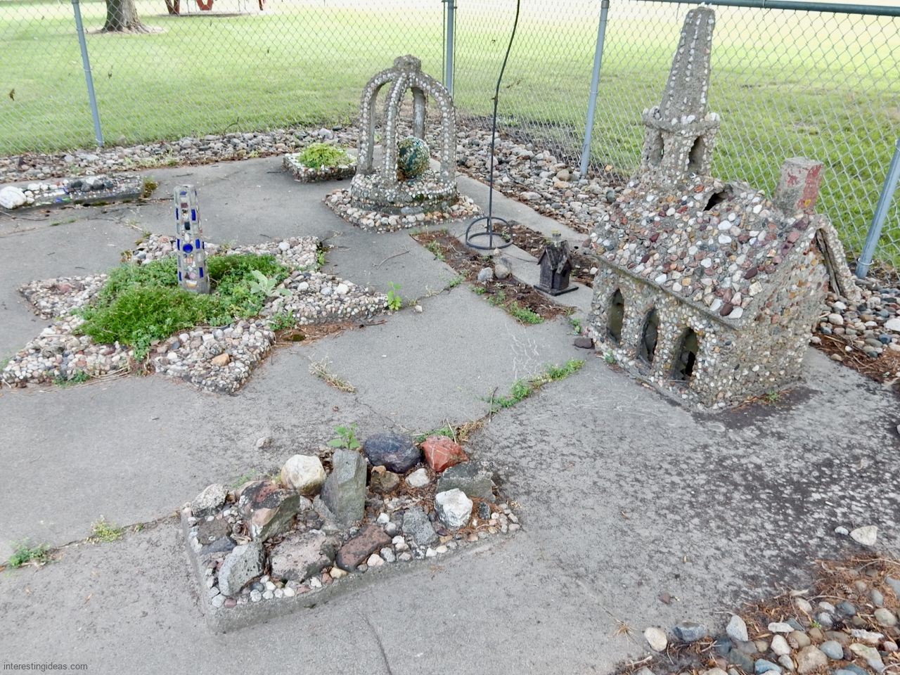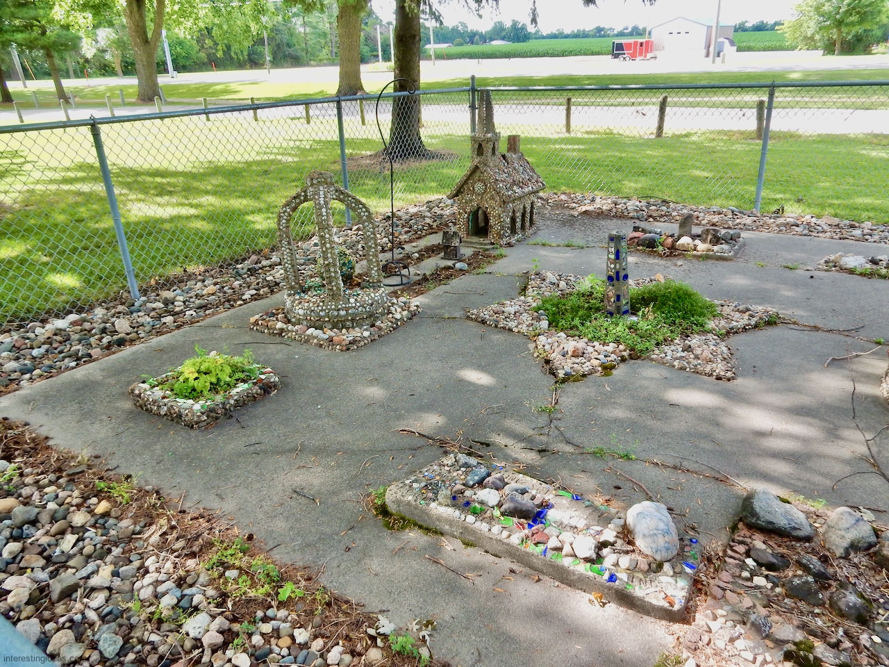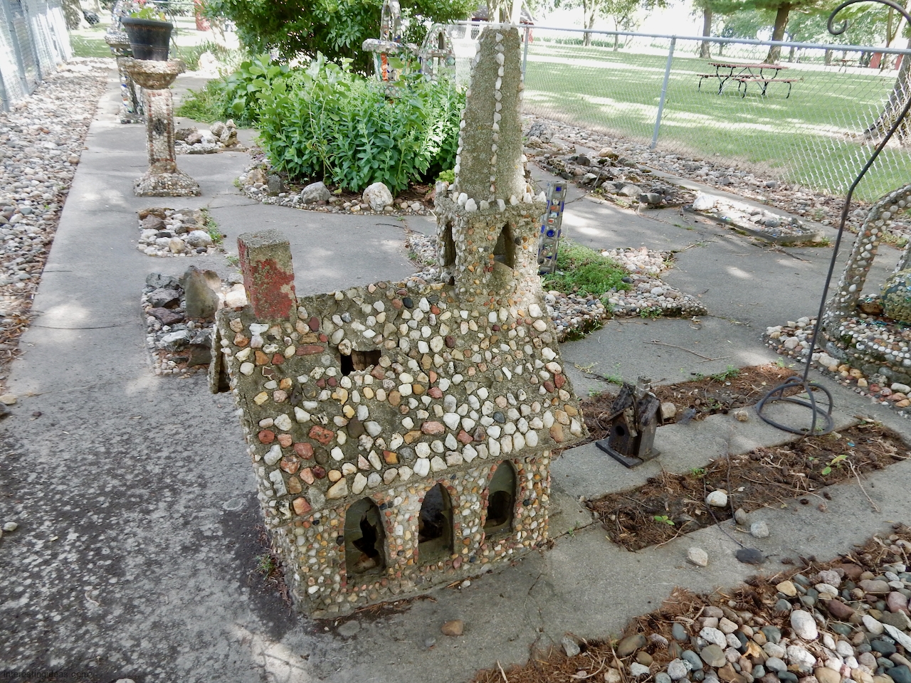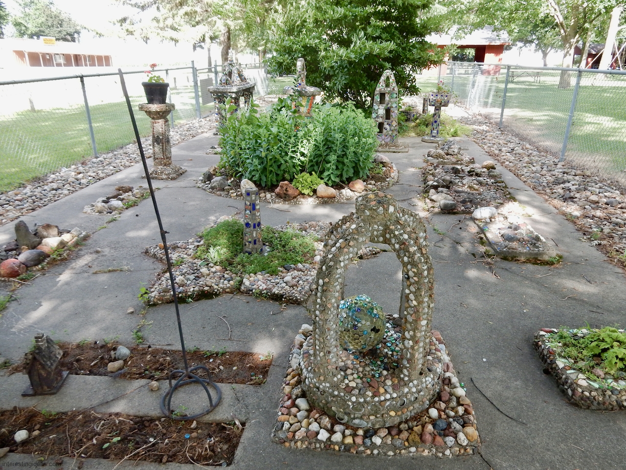 The Martha Timm Rock Garden is fenced off in New Hampton, Iowa’s Mikkelson Park, making photography a challenge but visiting easy. You can just walk up any time and look.