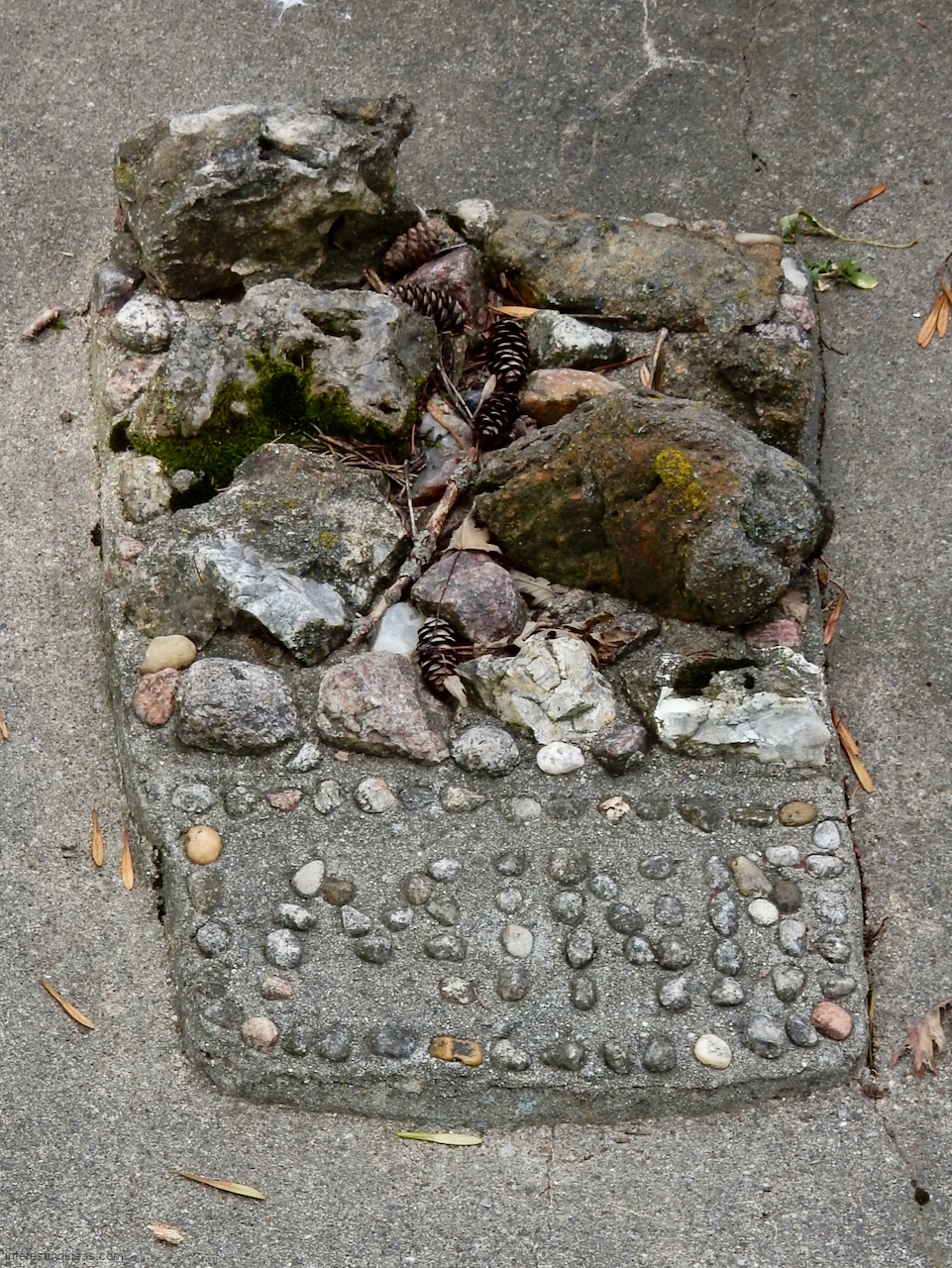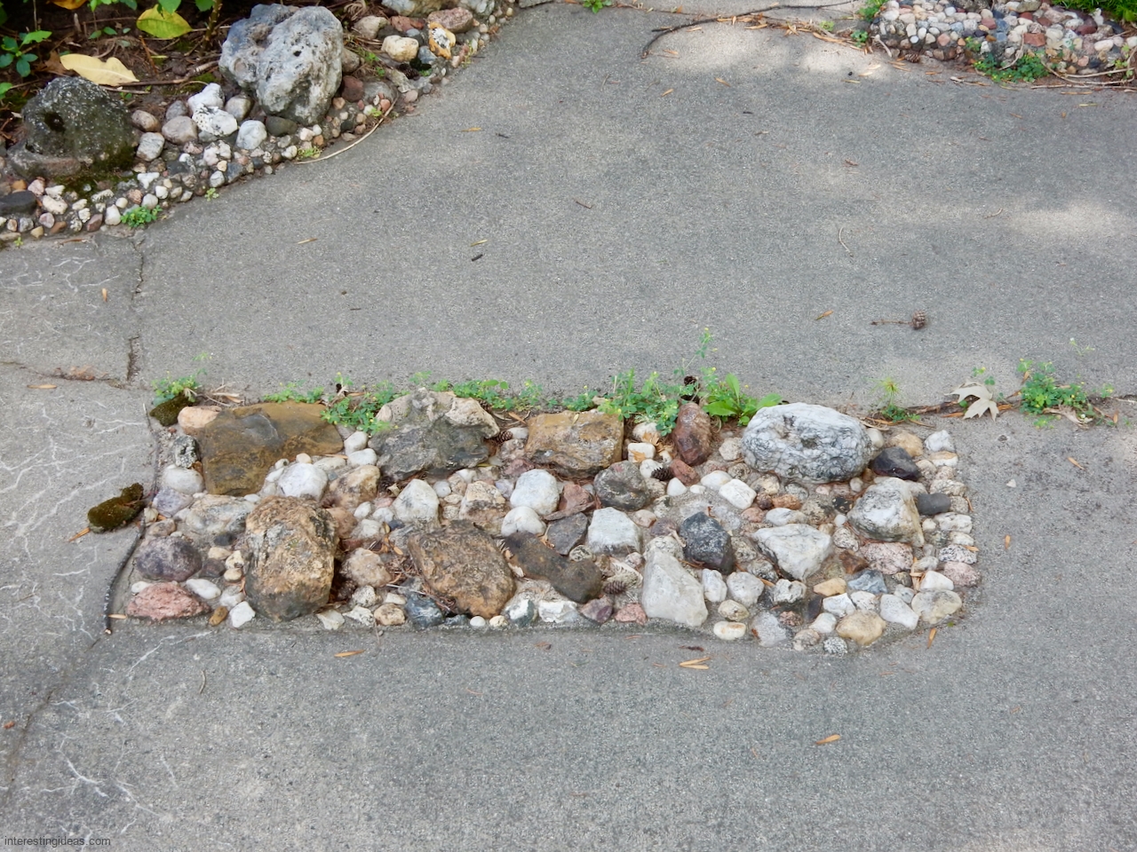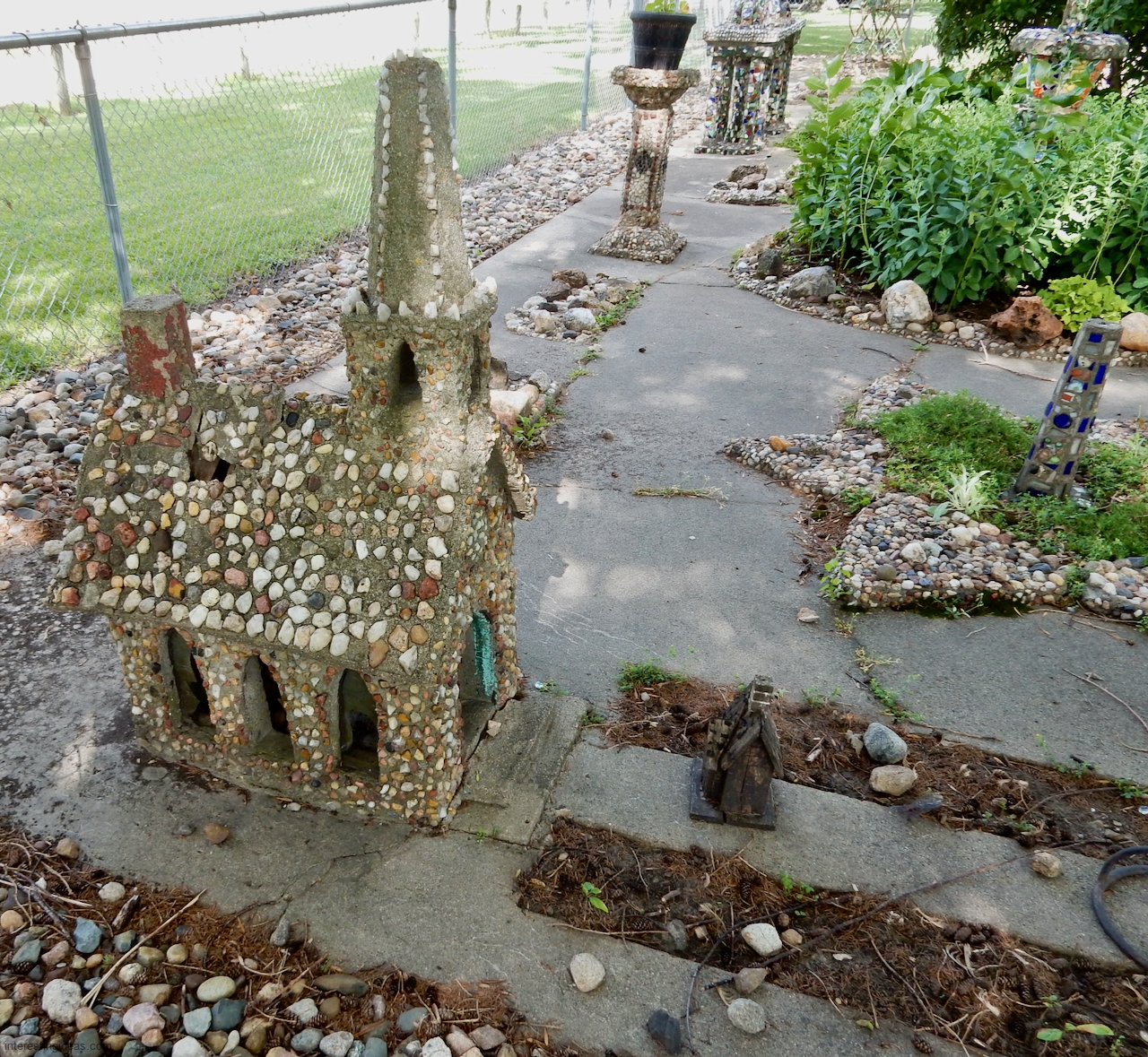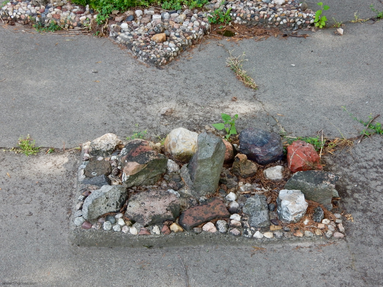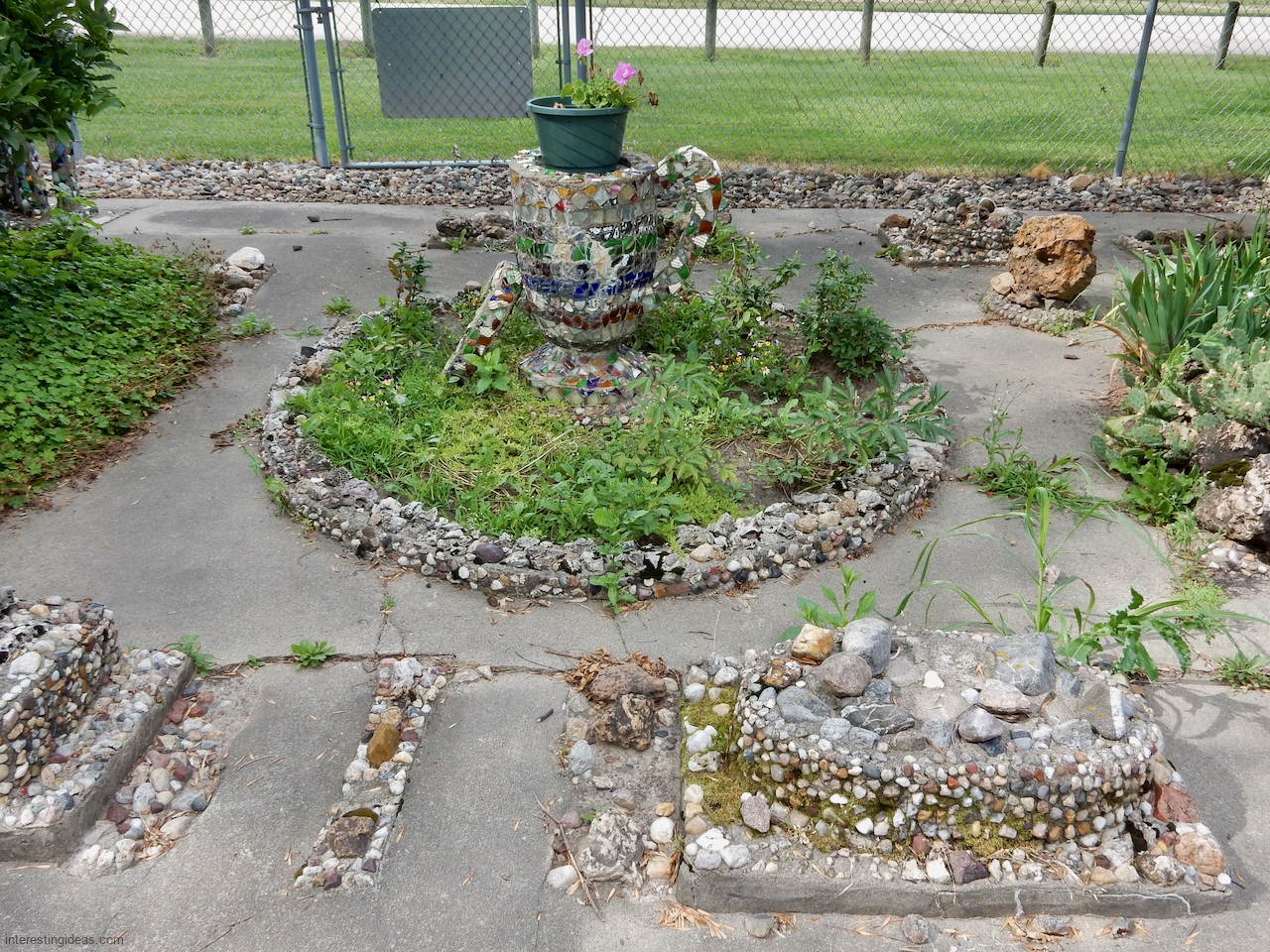 The Martha Timm Rock Garden is fenced off in New Hampton, Iowa’s Mikkelson Park, making photography a challenge but visiting easy. You can just walk up any time and look.
