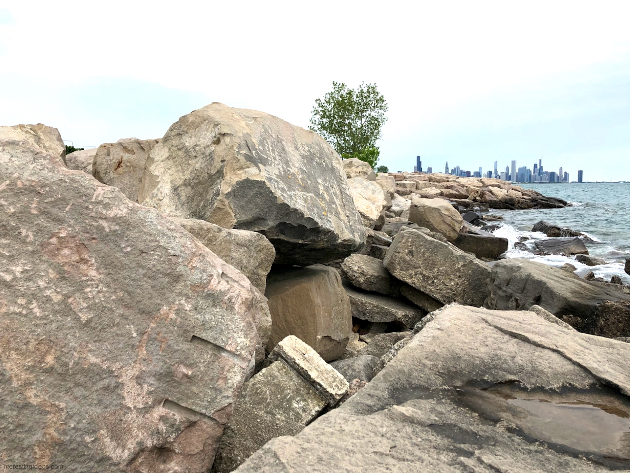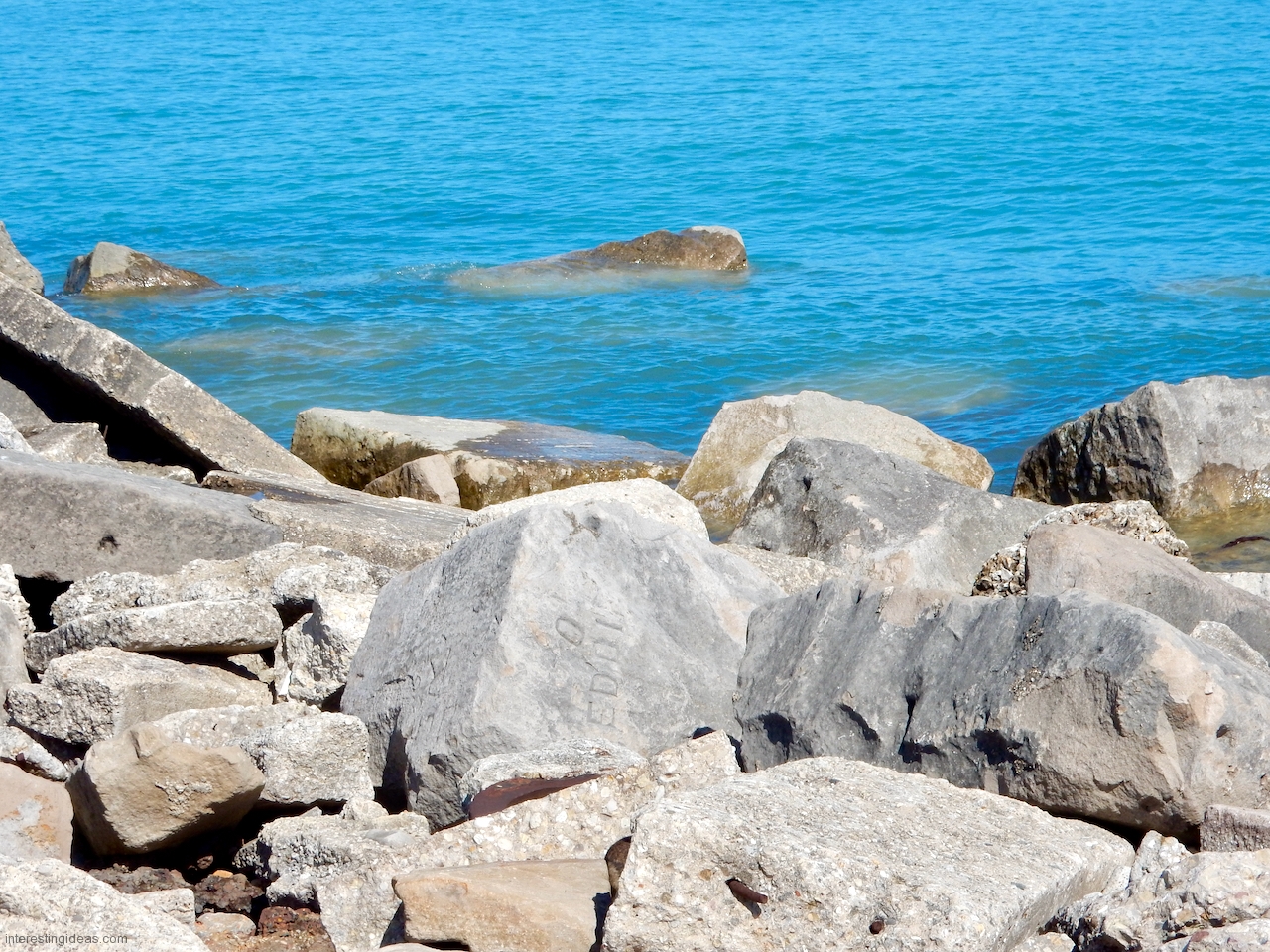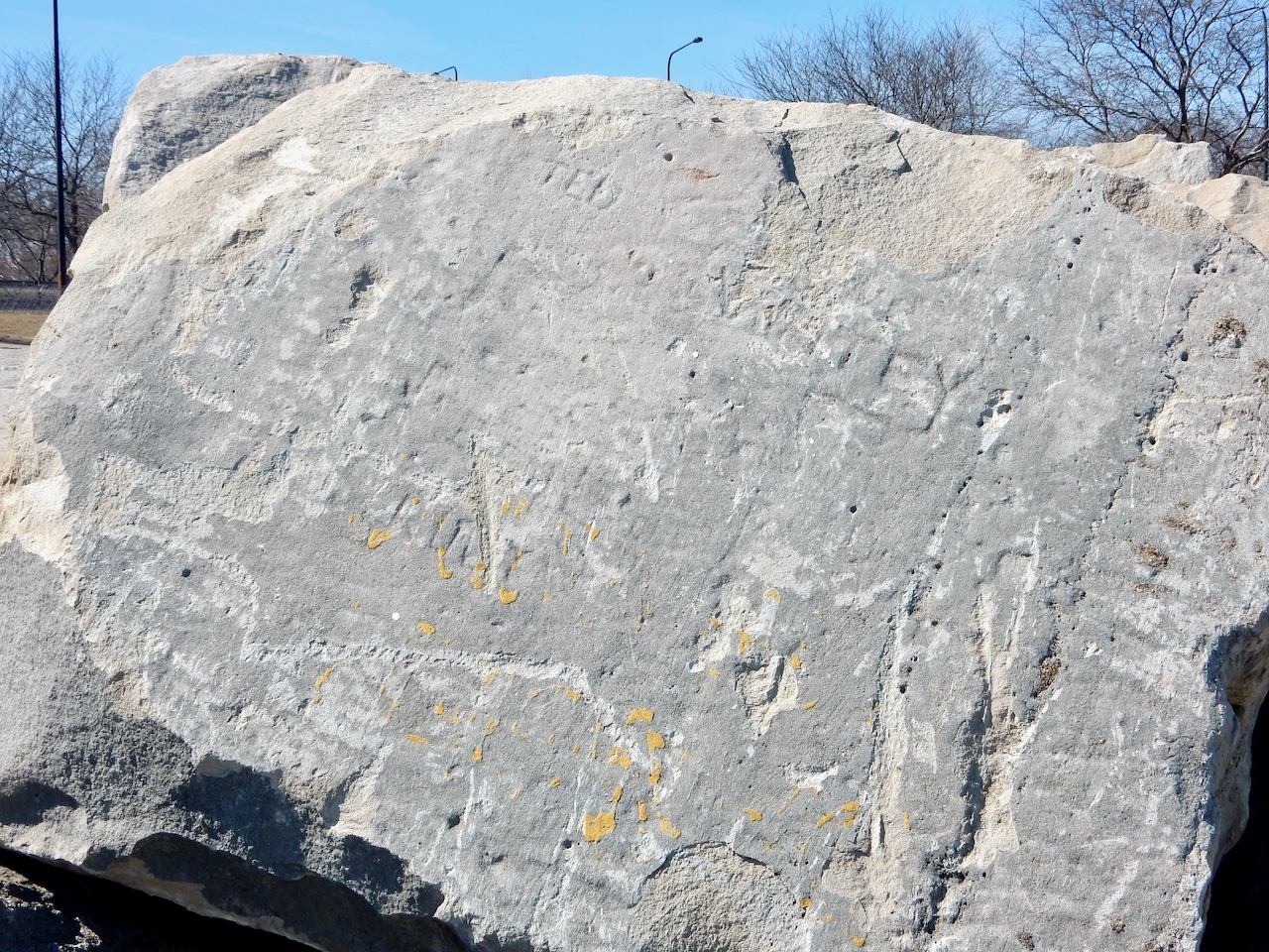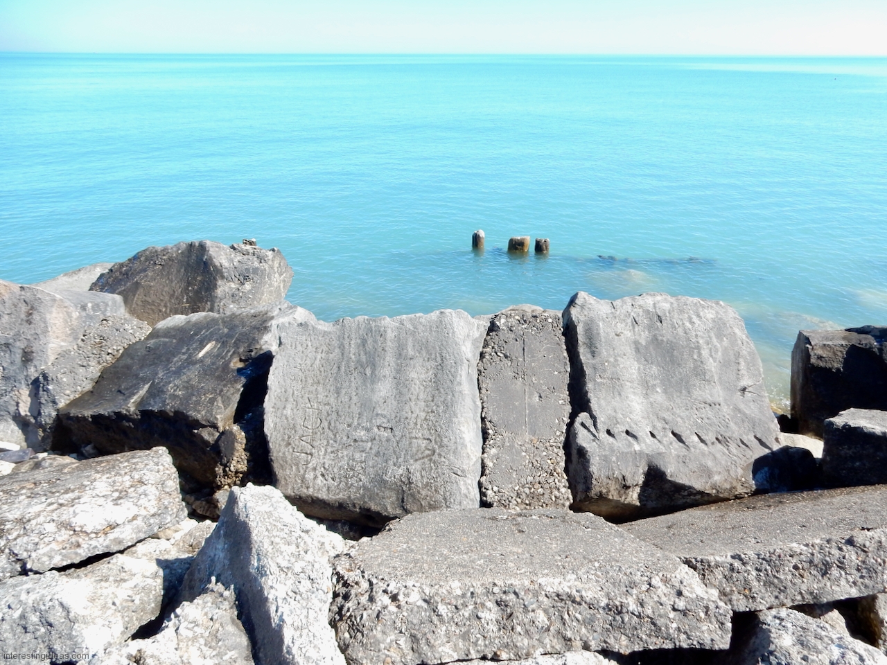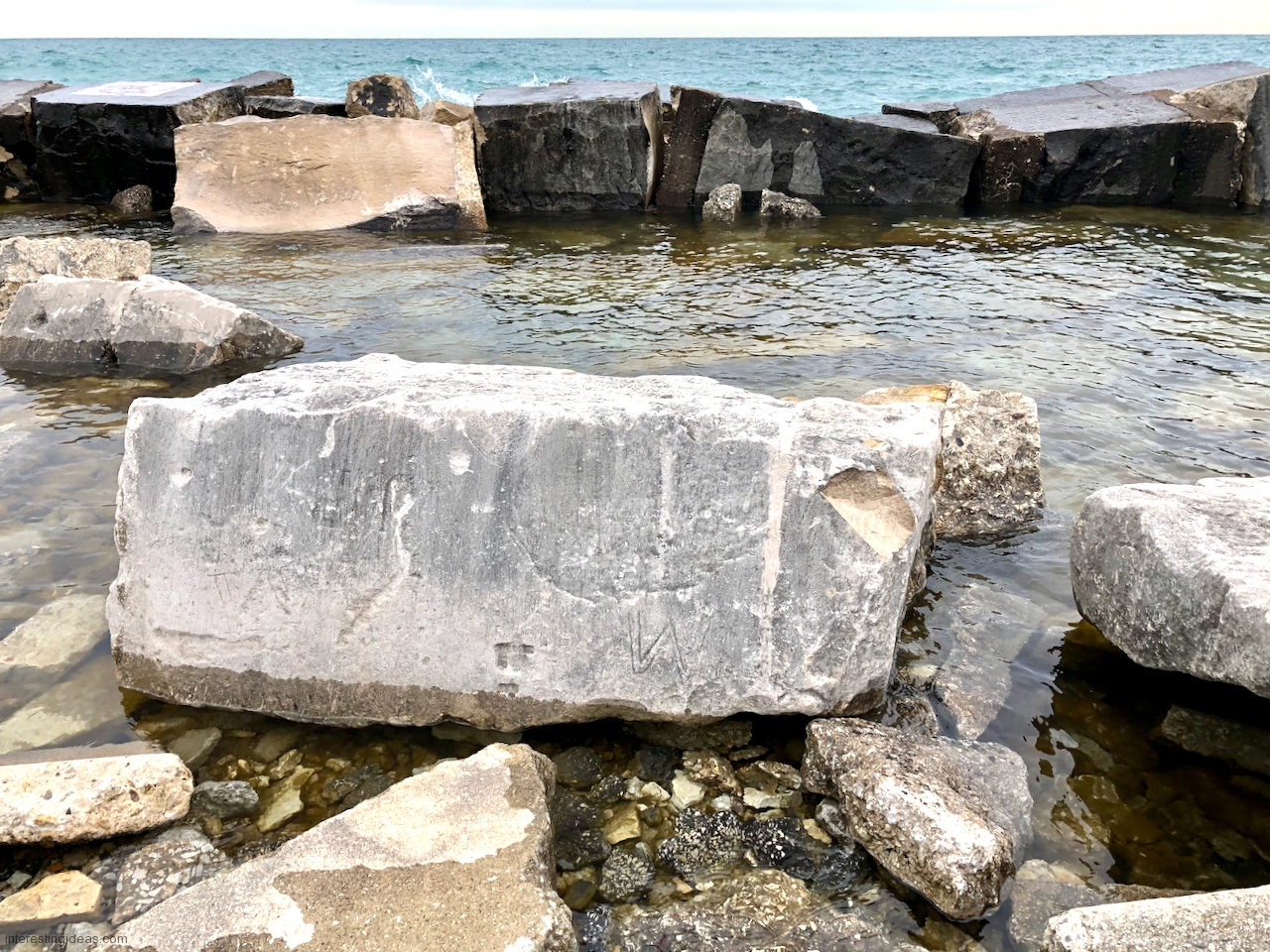 The hundreds of stone carvings at Morgan Shoal, between 45th and 50th Street in Chicago’s Hyde Park neighborhood, are in imminent danger of being lost. This section of lakefront is in terrible condition, with the many of the old rocks topsy turvy and falling into the lake.