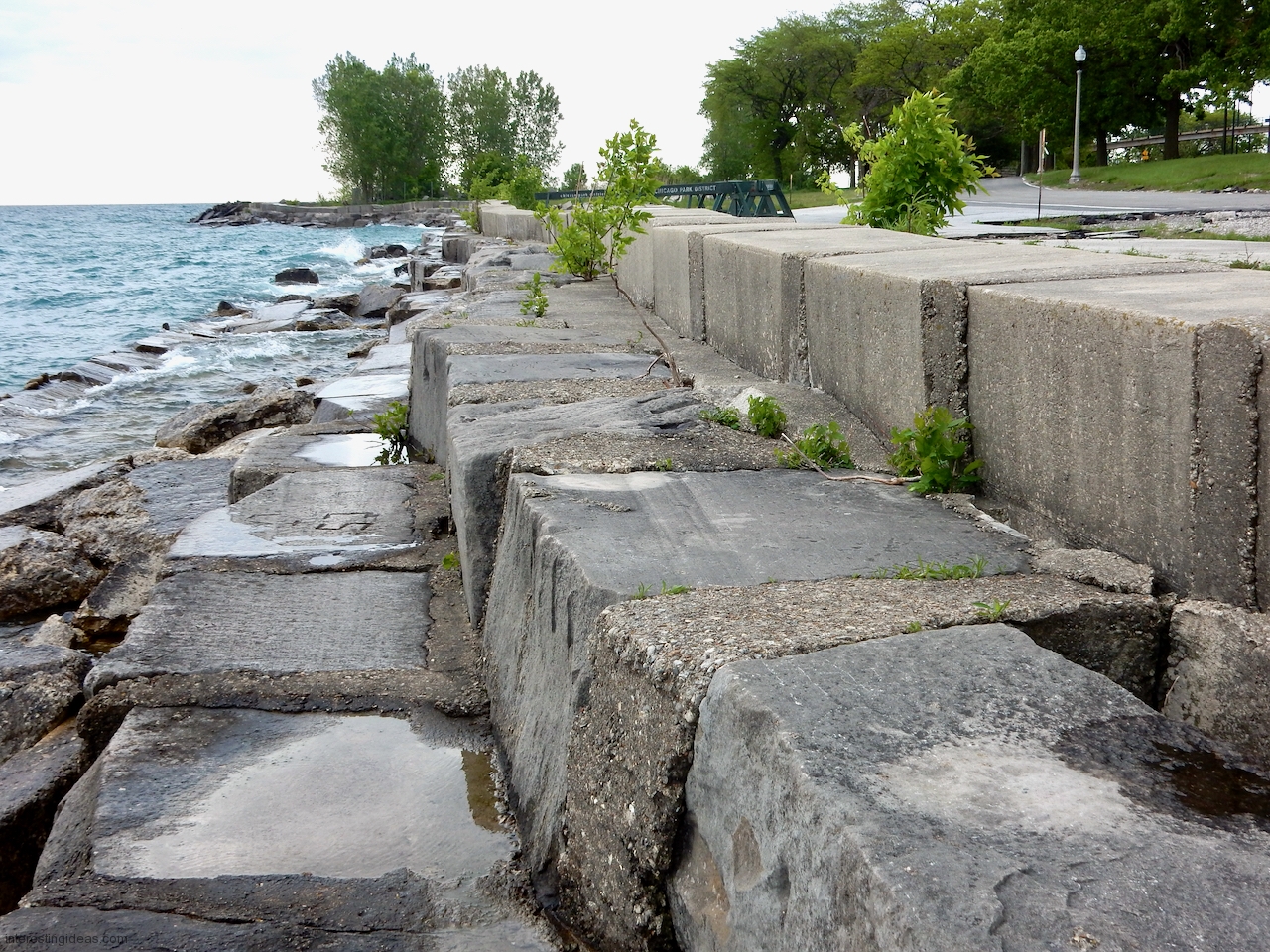 It’s worth noting a second issue with the prospective project: Other than a modest “pebble beach,” the framework plan calls for sloped stone revetments to be installed along most of the Morgan Shoal waterfront. In practice, “sloped stone revetment” means an impassible and unusable strip of rubble that lies between the park and the lake.