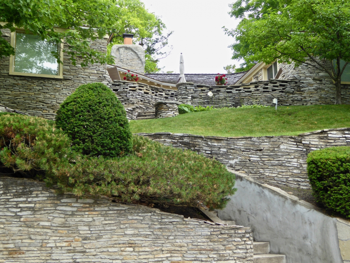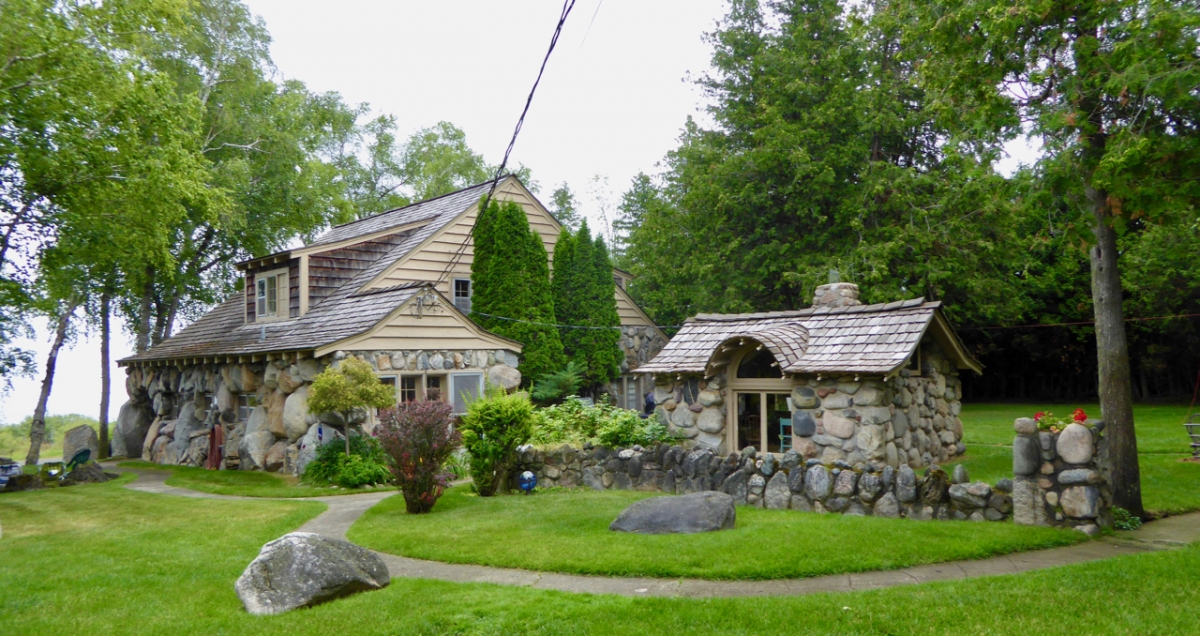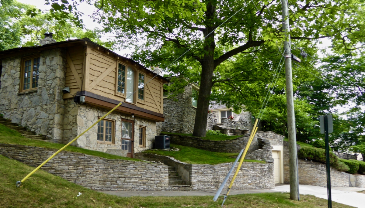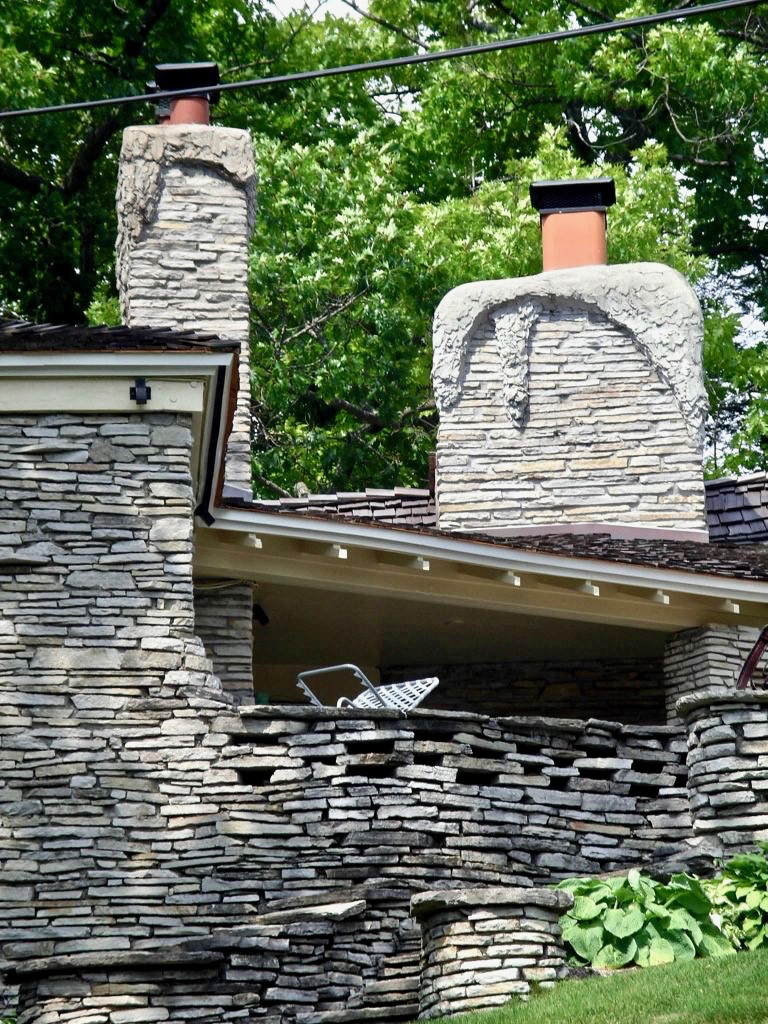 Charlevoix, Michigan, developer Earl Young’s constructions showed a personal vision almost from the first house he built, starting in 1918, but fortunately the vision had several decades in which to fully flower. Even without their wacky appearance, the “mushroom houses” he went on to plant in Charlevoix would be interesting as examples of progressive residential architecture ahead of the post-war building boom. But their oddity makes them a unique case of one man successfully expressing a highly idiosyncratic vision across a whole swath of city.