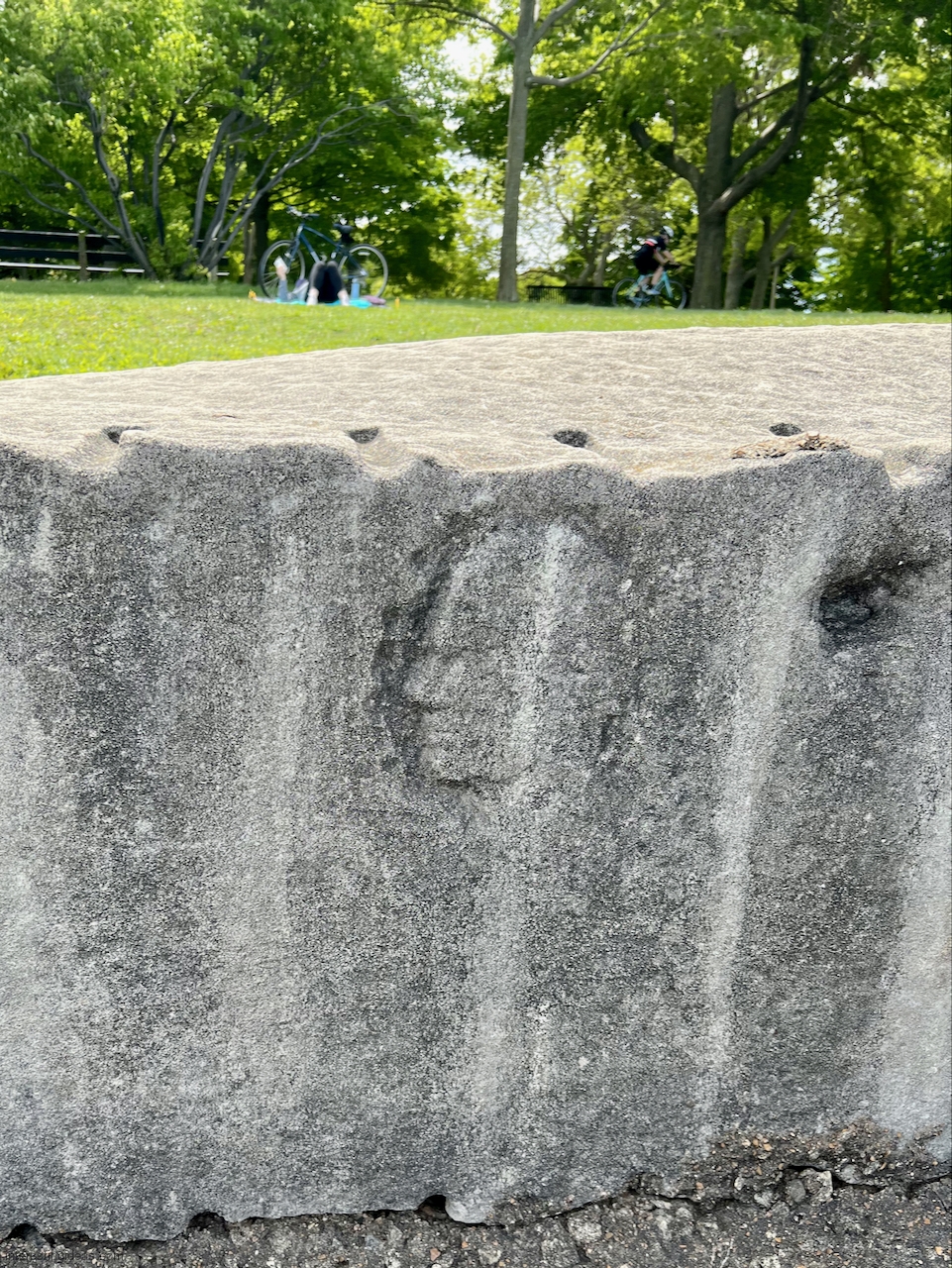 The limestone perimeter of Chicago’s historic Promontory Point is lined with more than 500 rock carvings, made starting in the 1930s immediately after its completion by the FDR-era Works Progress Administration. The carvings — historically significant, nearly all anonymous, and often artistically compelling — embellish the step-stone revetments that line the Point and protect it from the lake.