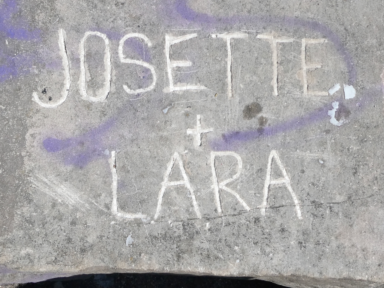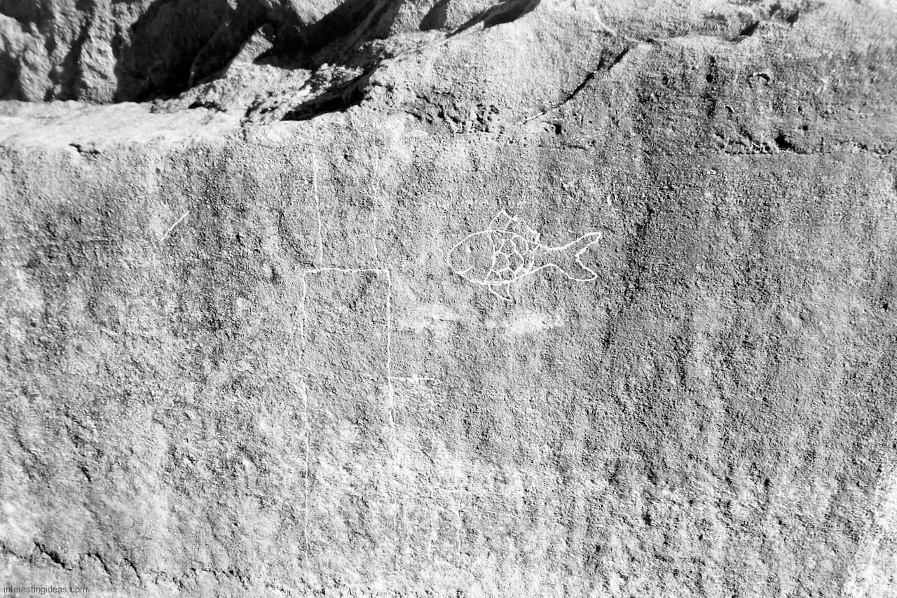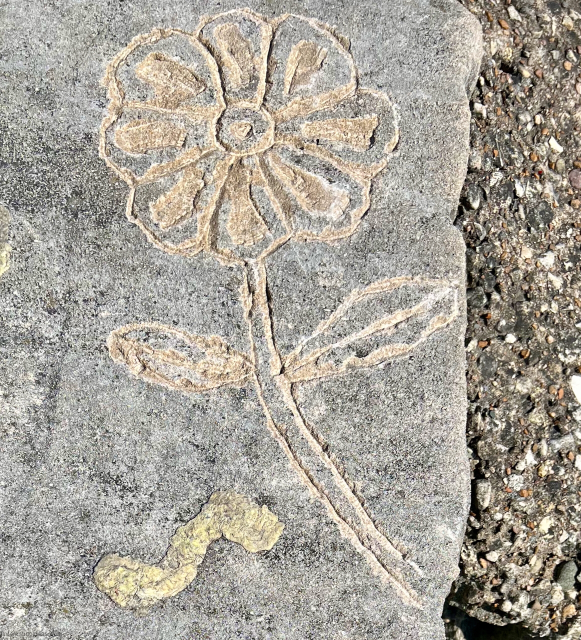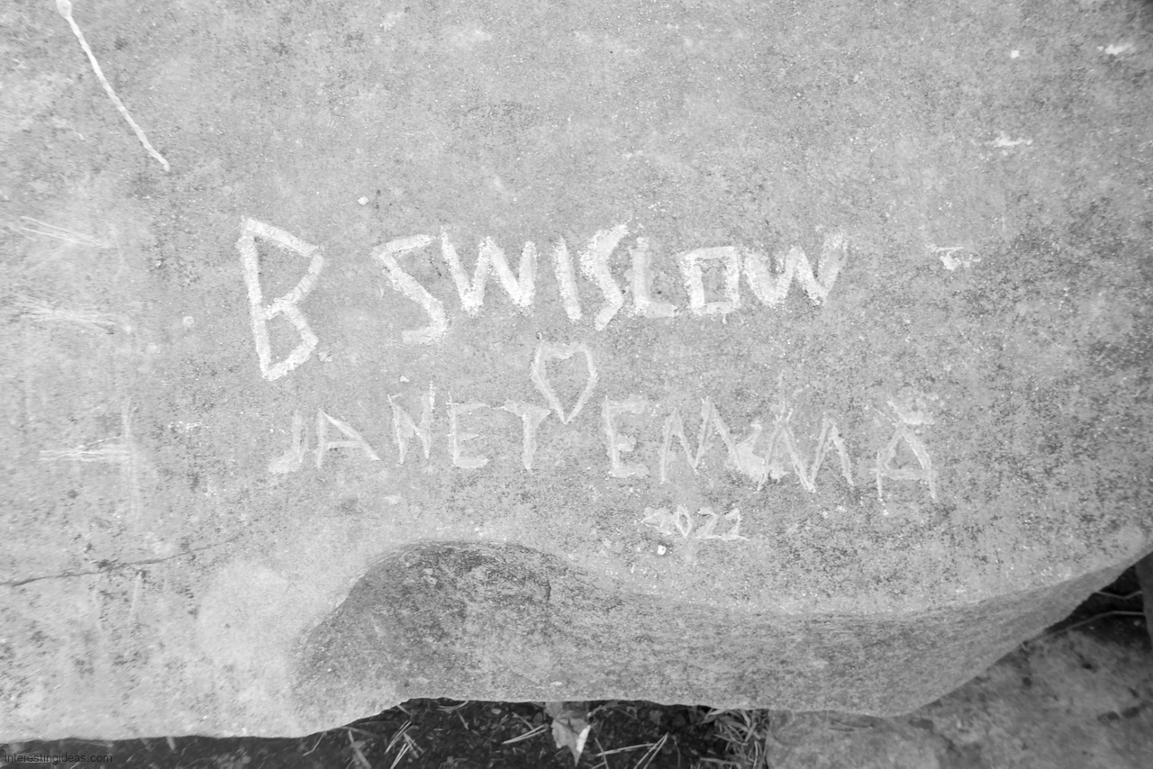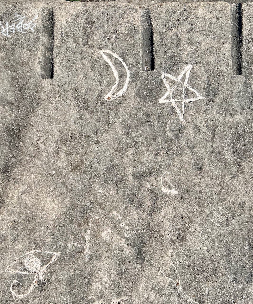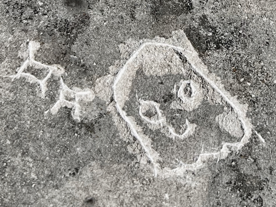 This PDF contains maps to help you find the most interesting carvings. If you do go on the hunt, please proceed with caution. There are many gaps, holes, even chasms in the old revetments; keep your eyes open. There also are many more carvings than the maps show, so be sure to keep eyes open for them as well.