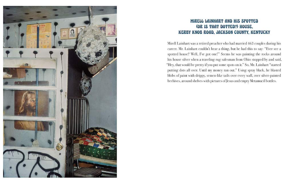 The ever-accessible stalwarts of the 1980s-90s southern folk-art tourism circuit are here—R. A. Miller, Howard Finster, Mose Tolliver and Jim Sudduth, among others. But there are also less commonly known artists and sites, such as the fully dotted house of Mirell Lainhart in Jackson County, Kentucky; James Butt’s Dreamhouse near Moyock, North Carolina, and sculptor Jeff Williams in Sampson County, North Carolina.