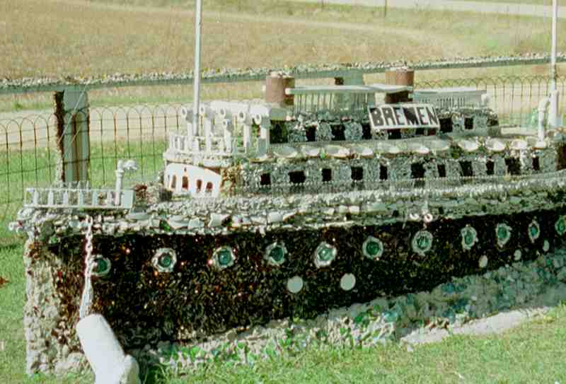 Paul and Matilda Wegner visited the Holy Ghost Park in Dickeyville in 1929, not long after they retired. Among the first fruits of that visit: this concrete, crockery and glass model of the Bremen, the ship on which they emigrated to the U.S. from Germany in 1885.