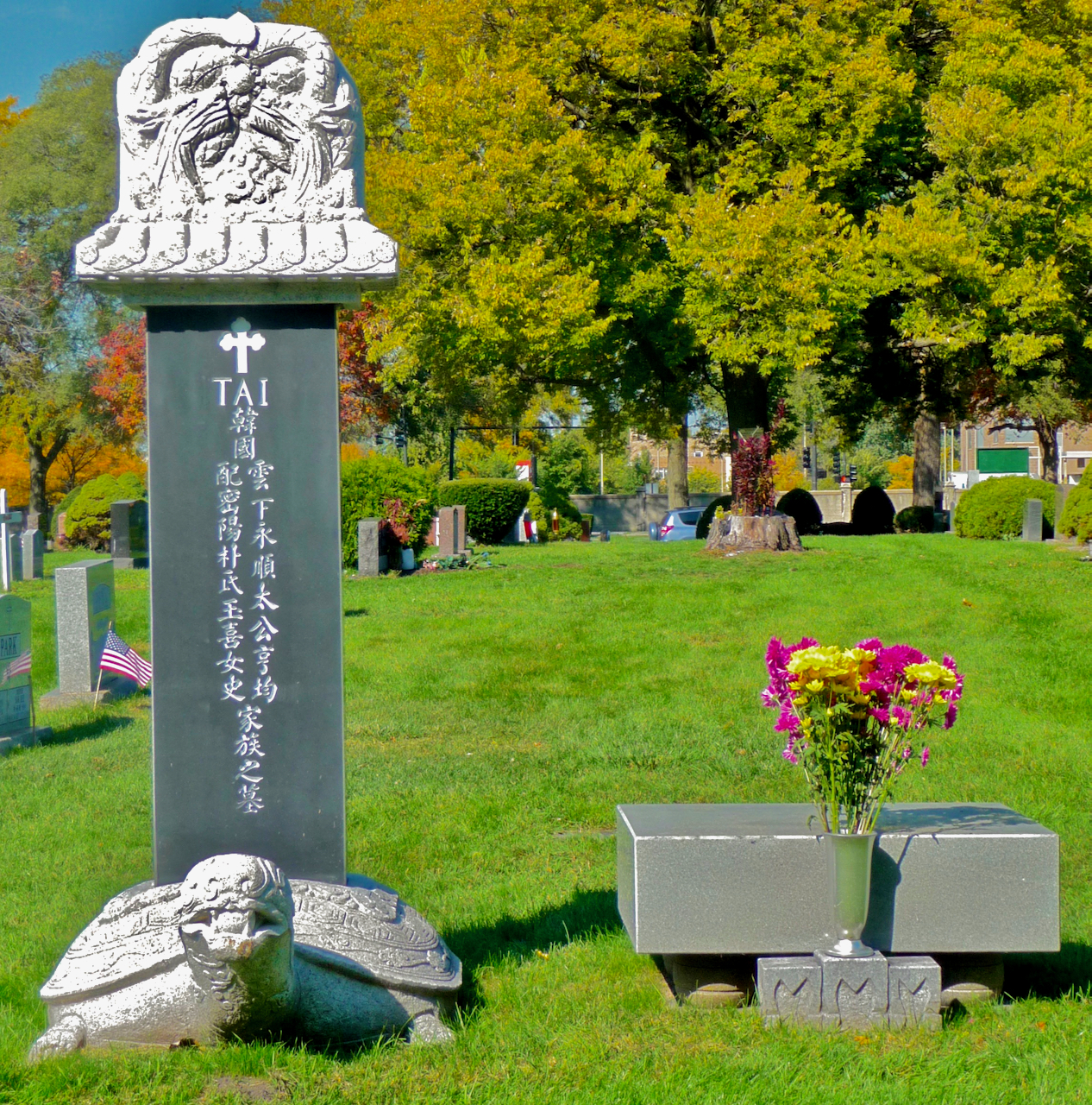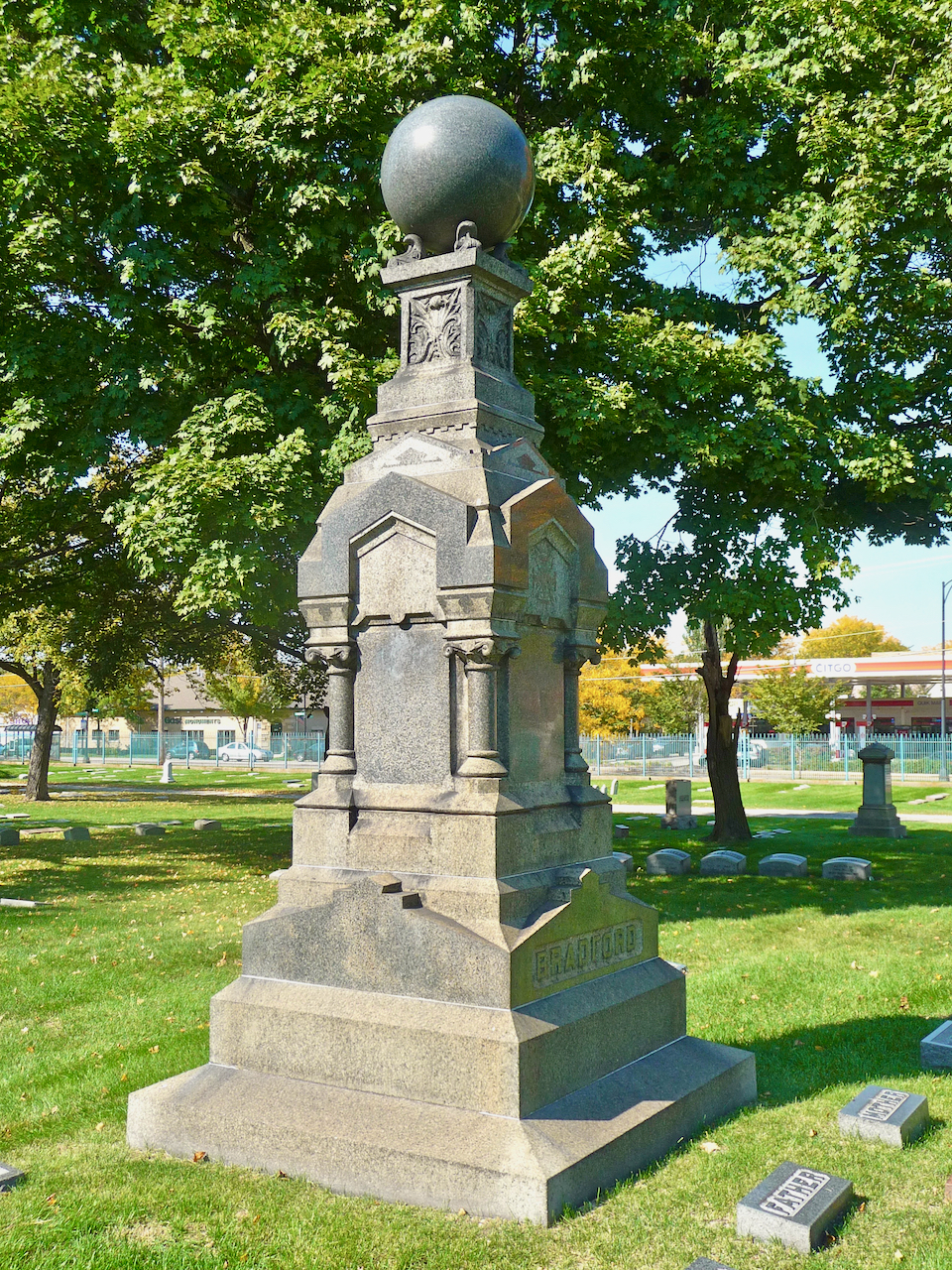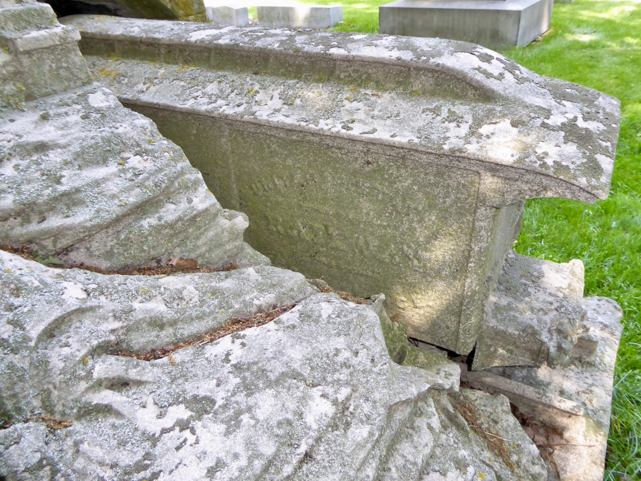 Grave markers can take many interesting forms, from a couch (or really a loveseat in this case) to one of my favorites, the large ball.