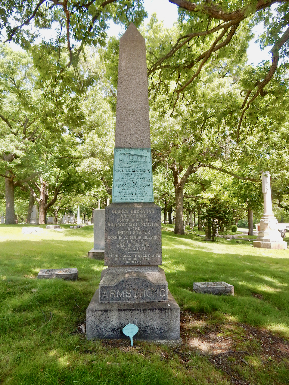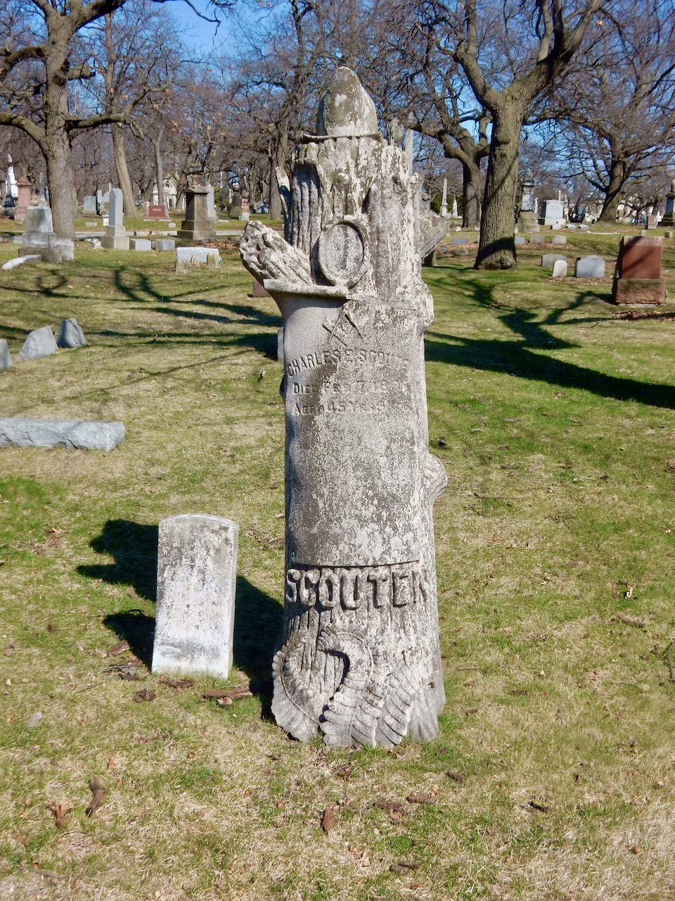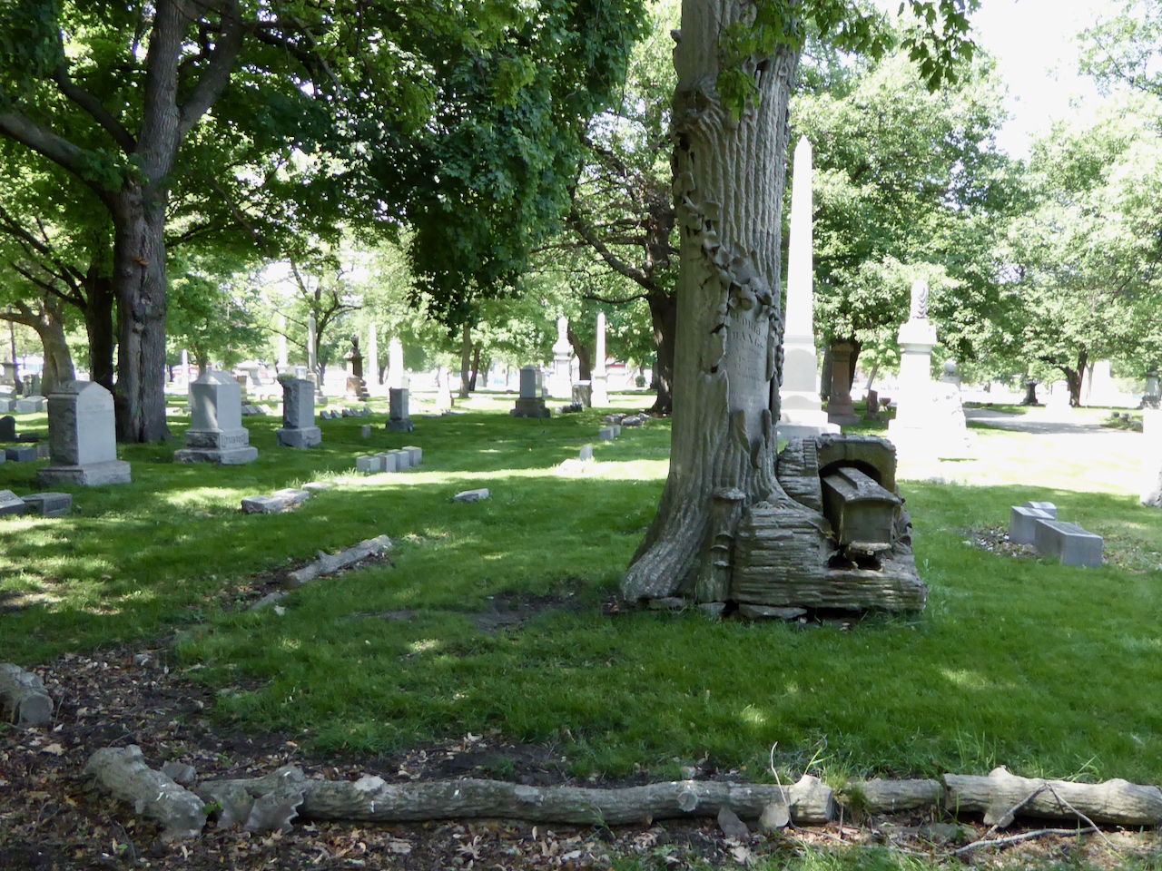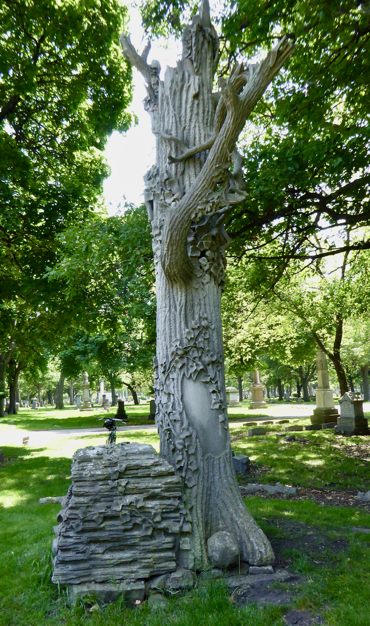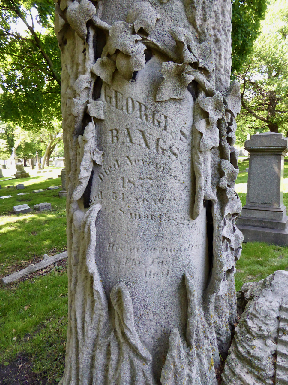 Professional identity is another theme that characterizes some of Rosehill’s best memorials. The most famous of these honors George Bangs — “His crowning effort The Fast Mail.” But there are other good ones.