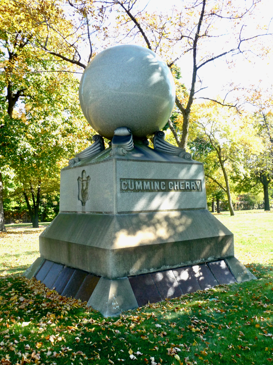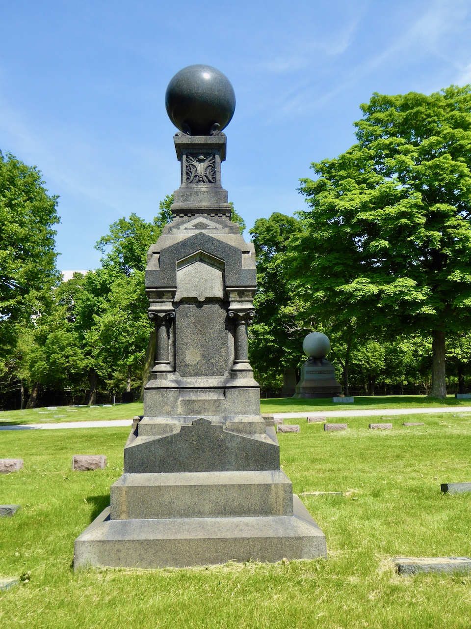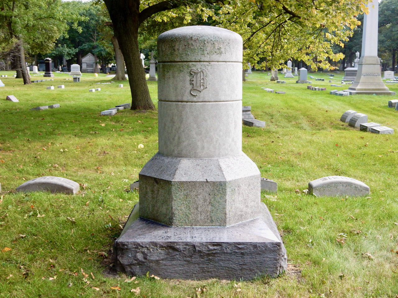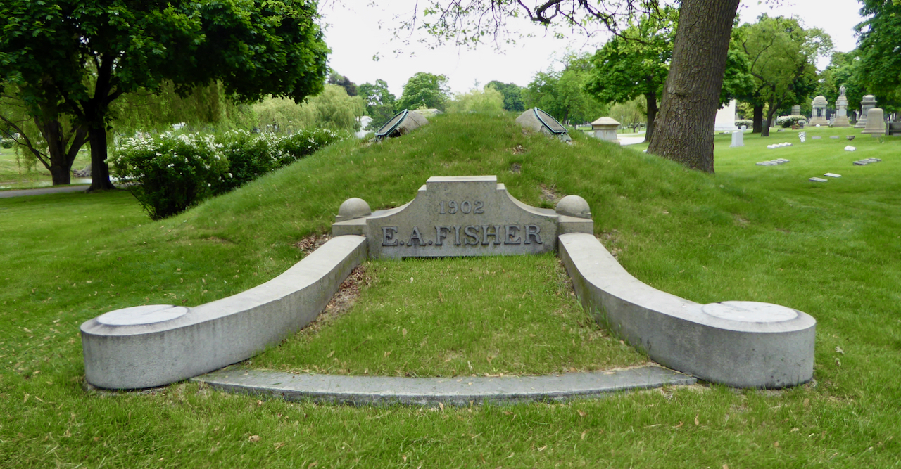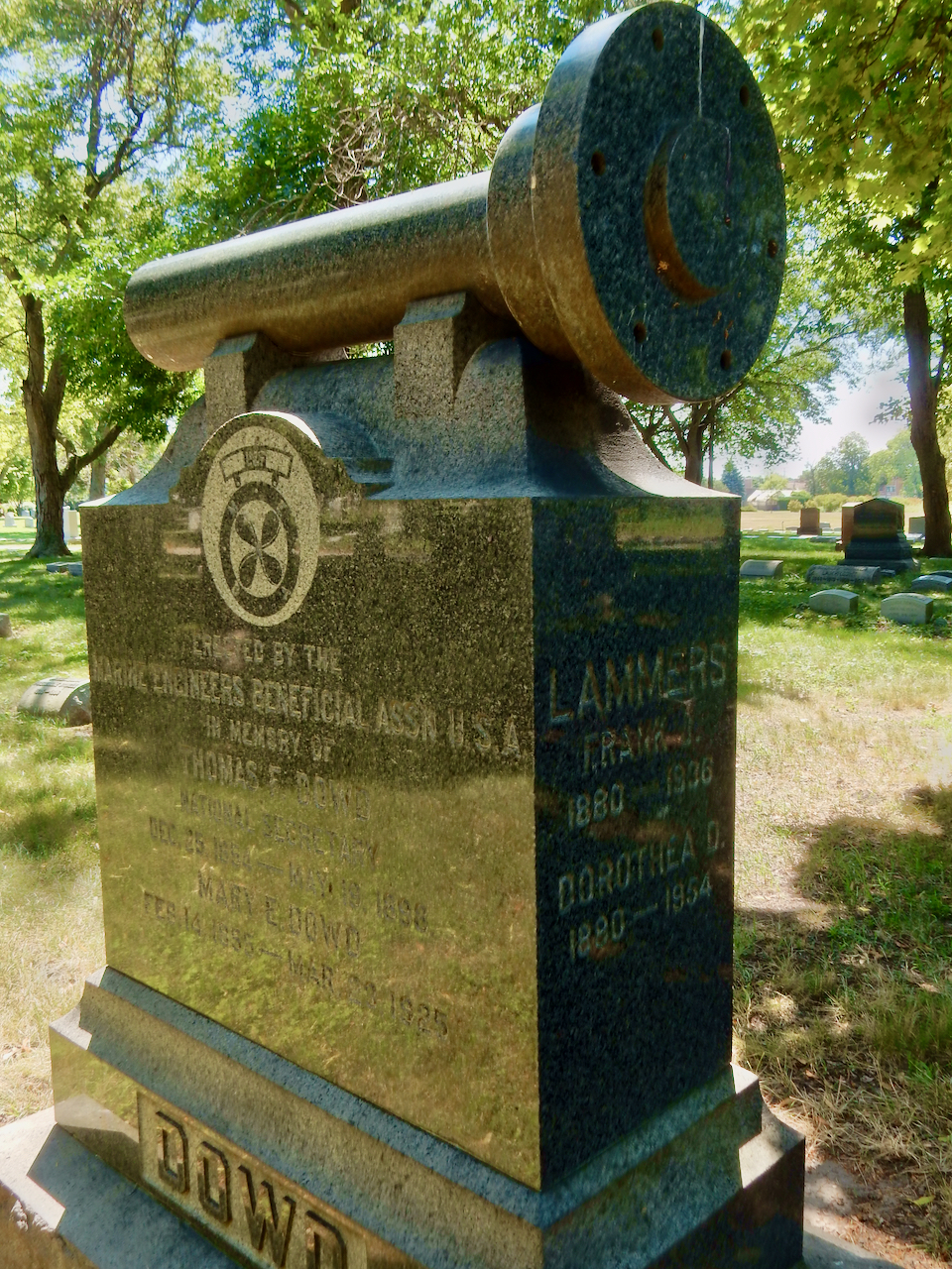 Professional identity is another theme that characterizes some of Rosehill’s best memorials. The most famous of these honors George Bangs — “His crowning effort The Fast Mail.” But there are other good ones.