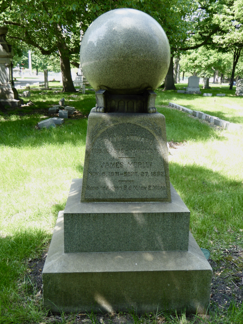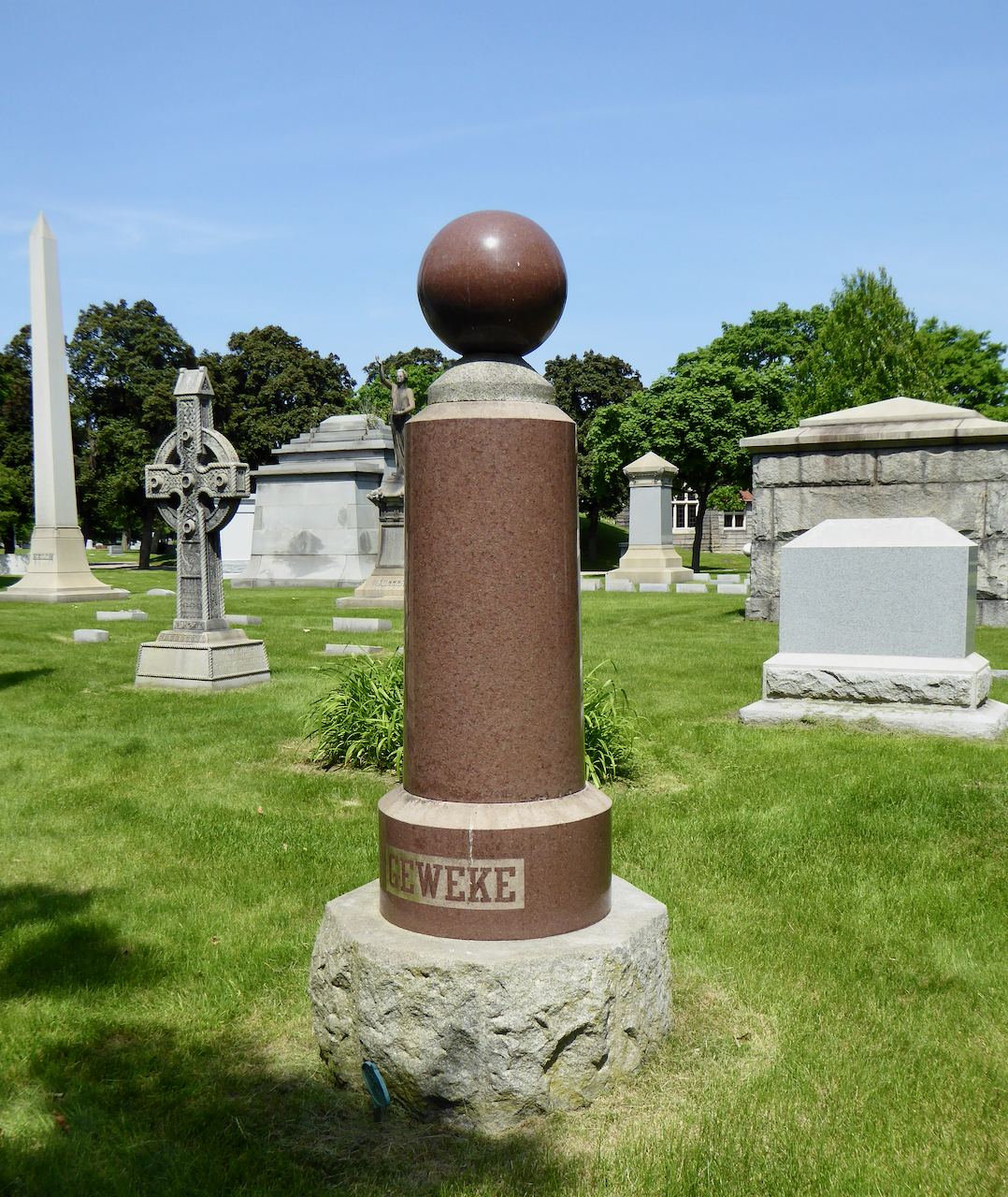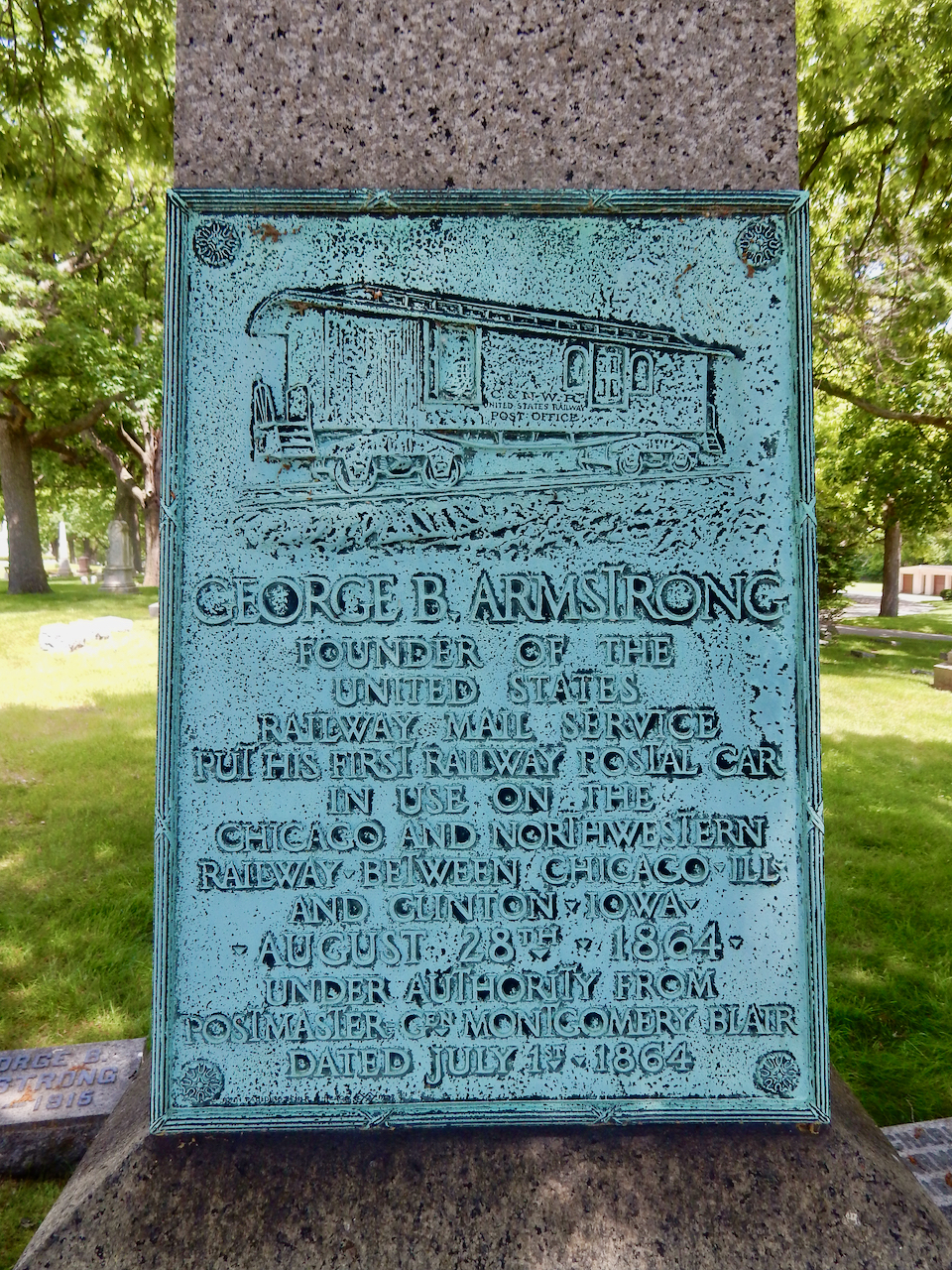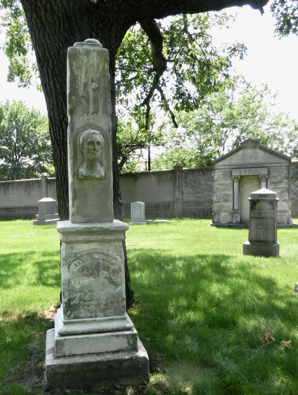 Professional identity is another theme that characterizes some of Rosehill’s best memorials. The most famous of these honors George Bangs — “His crowning effort The Fast Mail.” But there are other good ones.