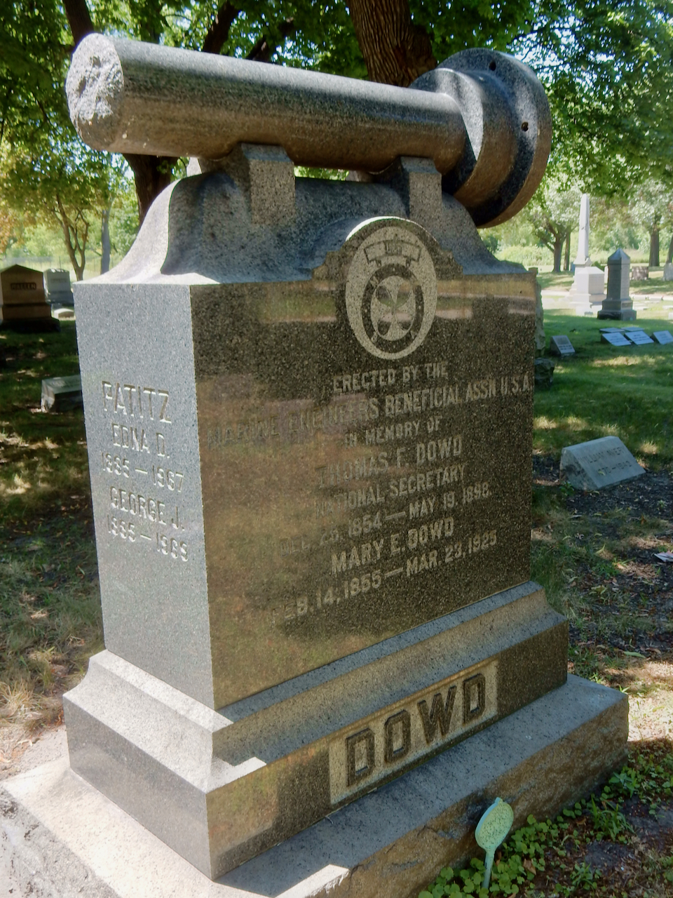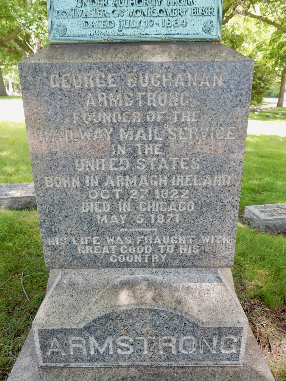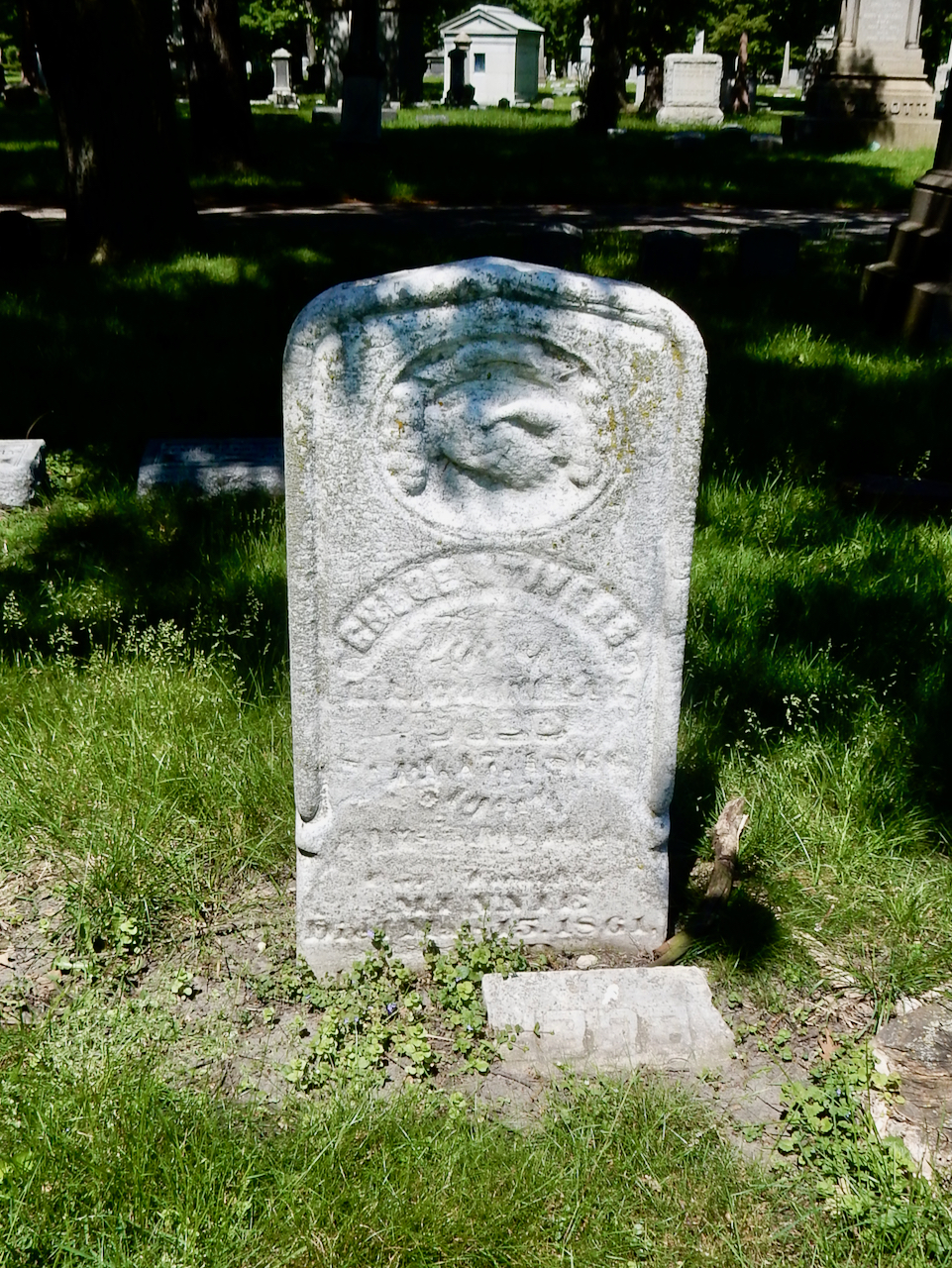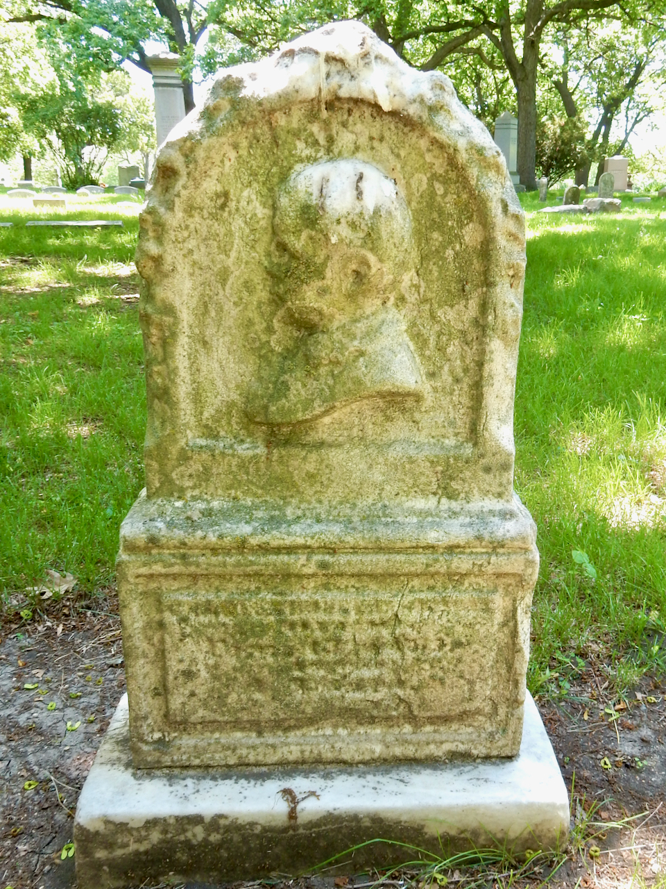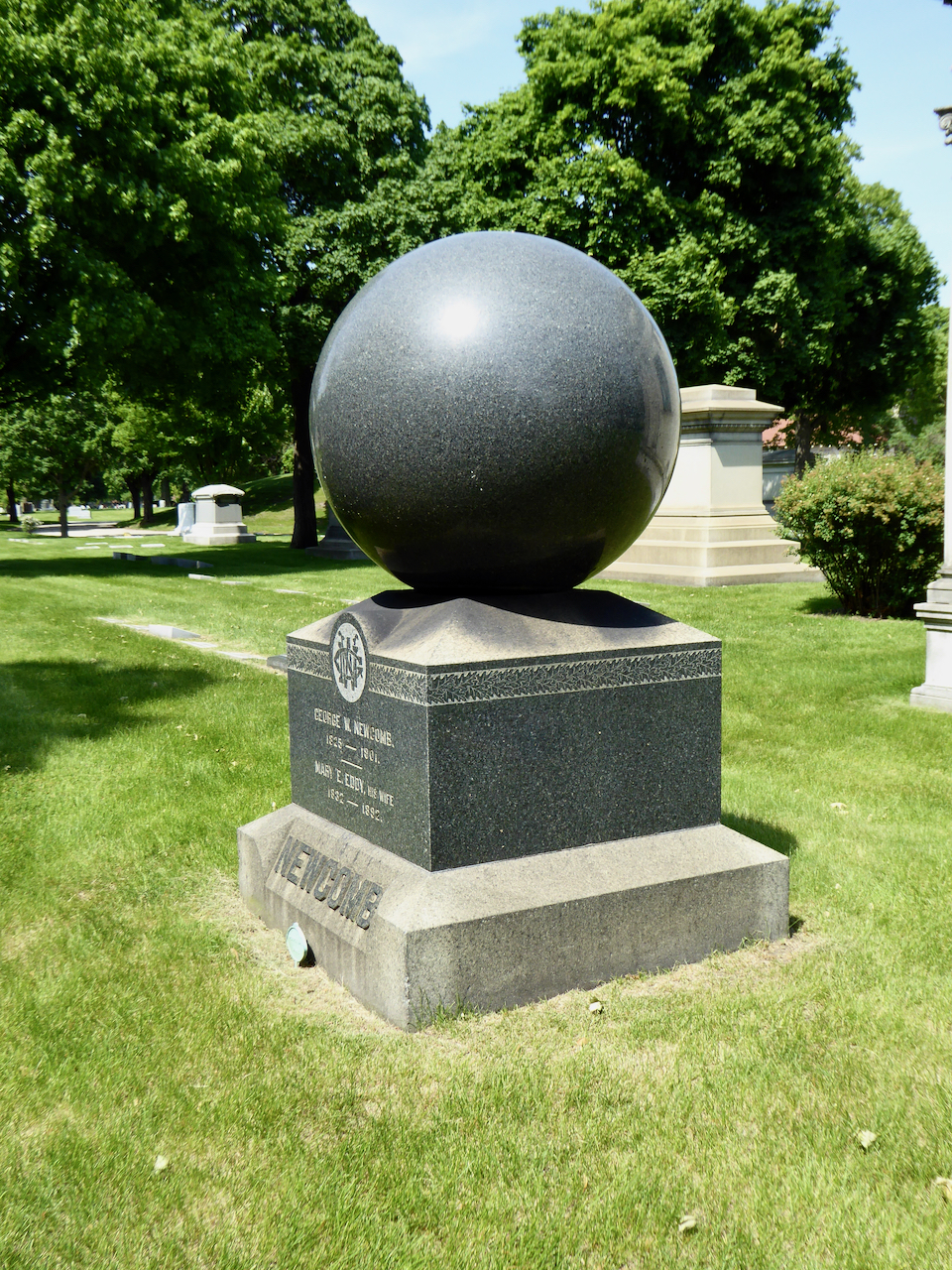 Professional identity is another theme that characterizes some of Rosehill’s best memorials. The most famous of these honors George Bangs — “His crowning effort The Fast Mail.” But there are other good ones.